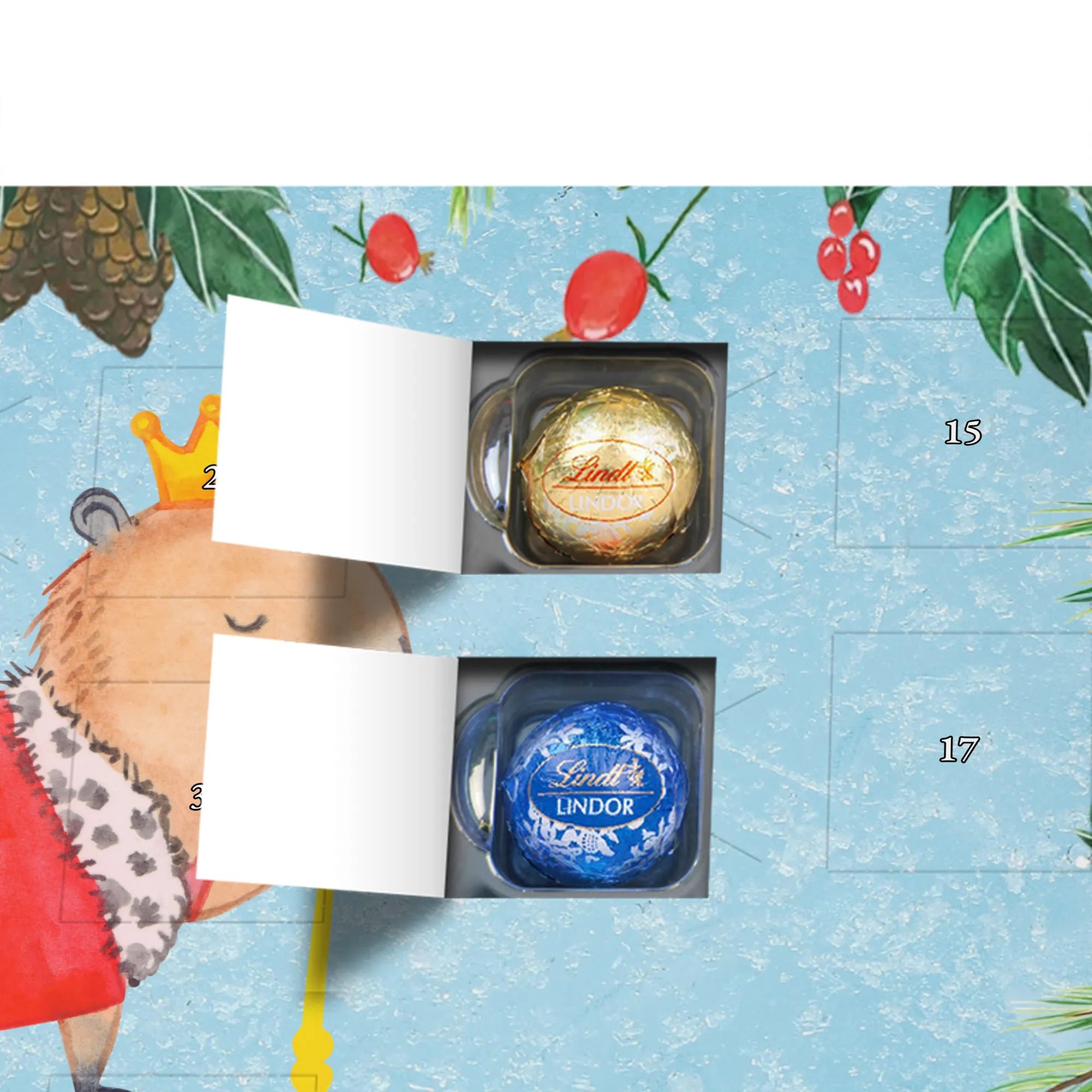 Der Adventskalender mit Schokolade von Mr. & Mrs. Panda ist ein echter Blickfang und eine köstliche Überraschung für die Vorweihnachtszeit. Er ist bedruckt mit wunderschönen Motiven & Sprüchen von Mr. & Mrs. Panda und nicht personalisierbar – deshalb perfekt als unkompliziertes Geschenk. Die brillante Druckqualität und die seidenmatte Oberflächenveredelung sorgen für eine hochwertige Optik, ergänzt durch bedruckte Seitenflächen. Maße: 233 mm x 178 mm x 24 mm. Besonderheit: kann aufgehängt oder aufgestellt werden, ganz wie es dir gefällt. Gefüllt mit Lindt Lindor: 24 einzeln verpackte Markenschokoladen Kugeln in den Sorten Vollmilch, Feinherb und Weiße Schokolade bieten täglich neue Geschmackserlebnisse. Zutaten: Zucker, pflanzliches Fett (Kokosnuss, Palmkern), Kakaobutter, Vollmilchpulver, Kakaomasse, Milchzucker, Magermilchpulver, Butterreinfett, Emulgator (Sojalecithin), Gerstenmalzextrakt, Aromen. Besondere Hinweise: Kann Haselnüsse und Mandeln enthalten. Ob als Mitbringsel, Geschenk oder zum Selbstverwöhnen – dieser Adventskalender vereint schönes Design mit zarter Markenschokolade.
