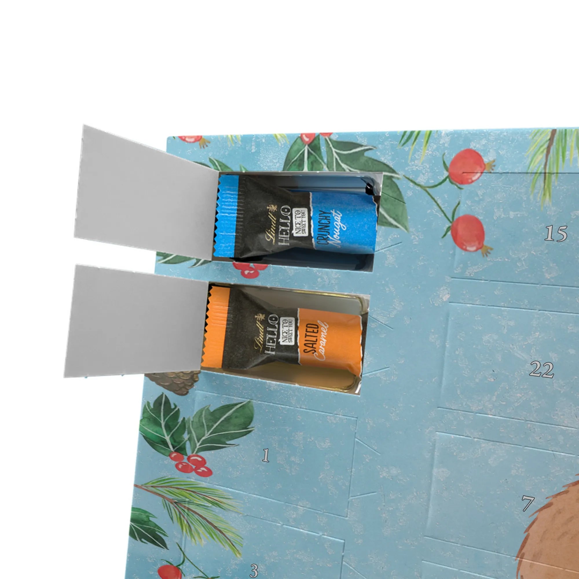 🐼 LINDT HELLO ADVENTSKALENDER: Liebevoll bedruckt, seidenmatte Veredelung, 325×225×27 mm.