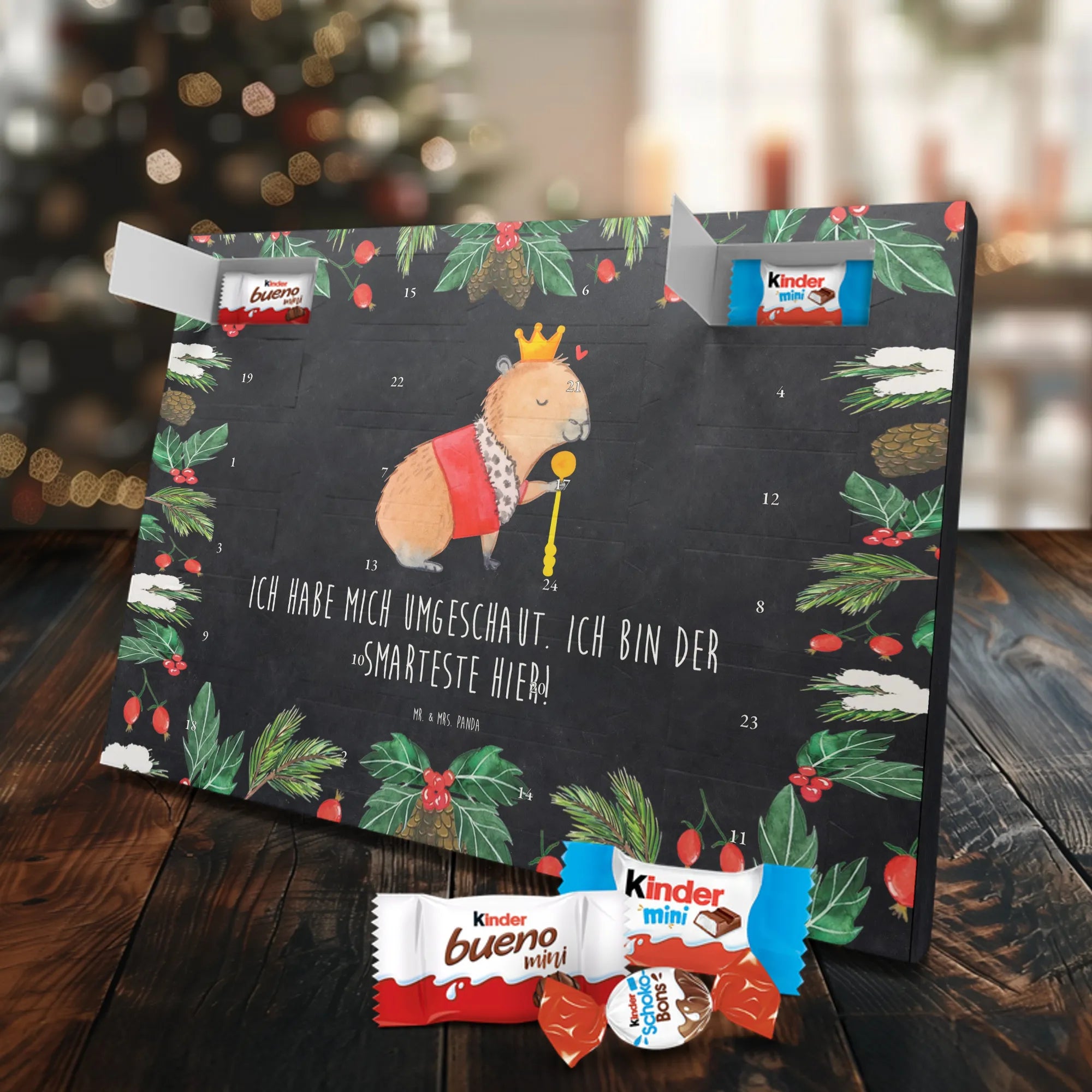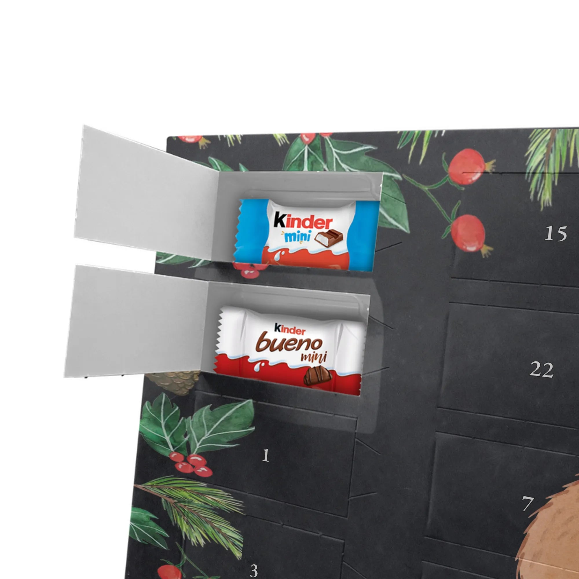 Schoko Adventskalender von Mr. & Mrs. Panda – die charmante Art, sich oder anderen die Adventszeit zu versüßen. Der Kalender ist bedruckt mit wunderschönen Motiven & Sprüchen von Mr. & Mrs. Panda und nicht personalisierbar. Wir legen Wert auf brillante Druckqualität mit seidenmatter Oberflächenveredelung sowie auf bedruckte Seitenflächen für ein stimmiges Gesamtbild. Maße: 355 mm x 245 mm x 11 mm. Besonders praktisch: kann aufgehängt oder aufgestellt werden und passt so in jede Wohnung. Gefüllt mit Markenname Schokolade: Adventskalender gefüllt mit kinder® Schokolade. Inhalt: kinder® Schoko-Bons, kinder® Bueno mini und kinder® Schokolade mini. Die 24 Türchen sind mit kleinen Schoko-Überraschungen bestückt und schaffen jeden Tag Vorfreude. Ob als Geschenk für Kinder, Partner oder als nette Aufmerksamkeit für Kolleginnen und Kollegen – dieser Kalender macht Freude. Robust, schön gestaltet und sofort einsatzbereit für die süßeste Zeit des Jahres!