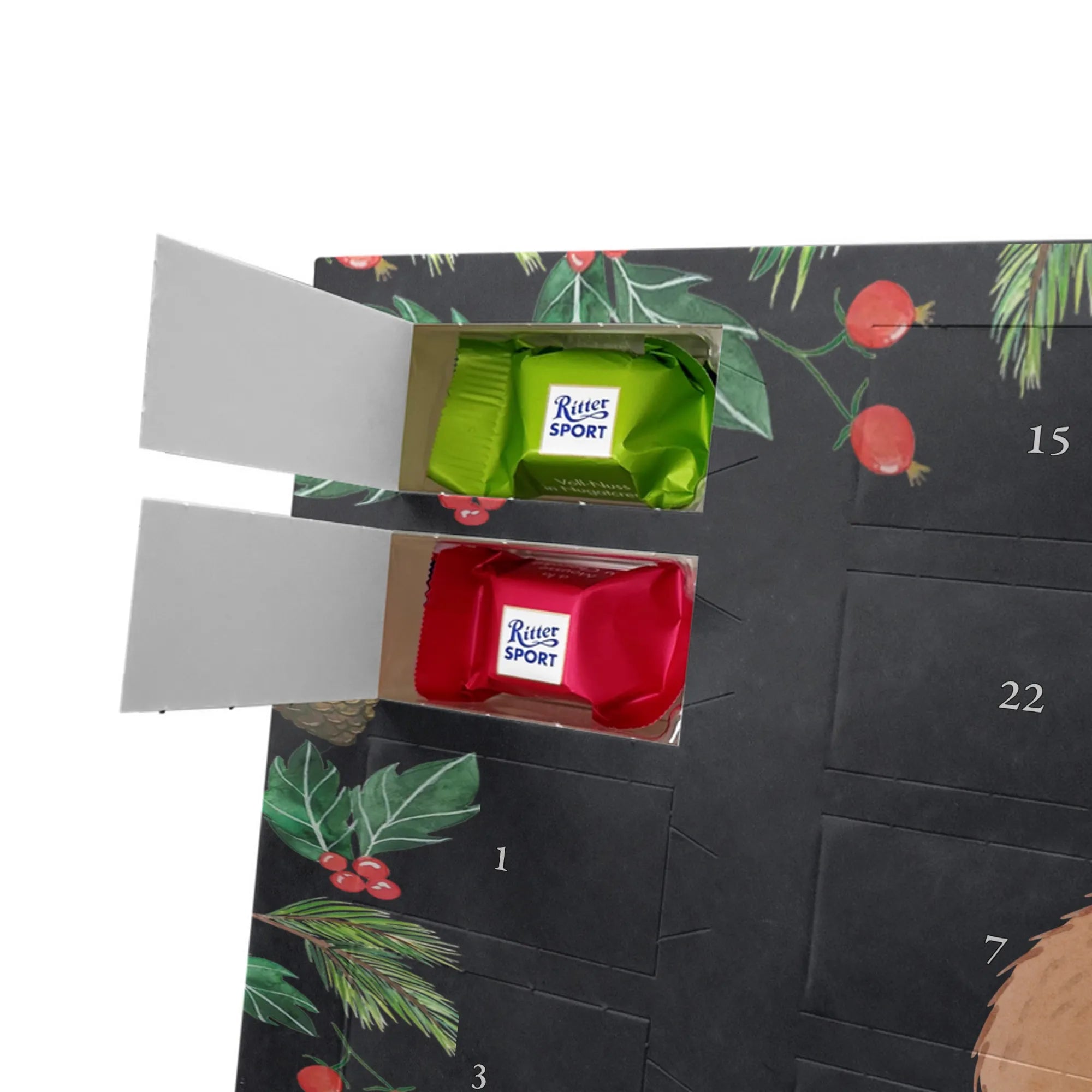Schon unser Schoko-Adventskalender von Mr. & Mrs. Panda gesehen? Ein liebevoll gestalteter Kalender, bedruckt mit wunderschönen Motiven & Sprüchen, der deine Adventszeit versüßt. Der Kalender ist nicht personalisierbar, überzeugt aber durch brillante Druckqualität mit seidenmatter Oberflächenveredelung und bedruckte Seitenflächen für ein rundum schönes Erscheinungsbild. Maße: 325 mm x 225 mm x 27 mm. Du kannst ihn aufhängen oder aufstellen – ganz wie es dir gefällt. Gefüllt mit Ritter Sport Schokowürfeln in köstlichen Sorten: Mousse au Chocolat, Schoko Crisp, Voll-Nuss in Nougatcreme, Karamell Duo, Joghurt und Erdbeer-Joghurt. Bitte beachten: Es handelt sich um einen Kalender gefüllt mit Ritter Sport Schokolade, nicht um einen Kalender der Marke Ritter Sport. Ob als Geschenk oder für dich selbst – dieser Schoko-Adventskalender bringt täglich kleine Glücksmomente und süße Überraschungen.