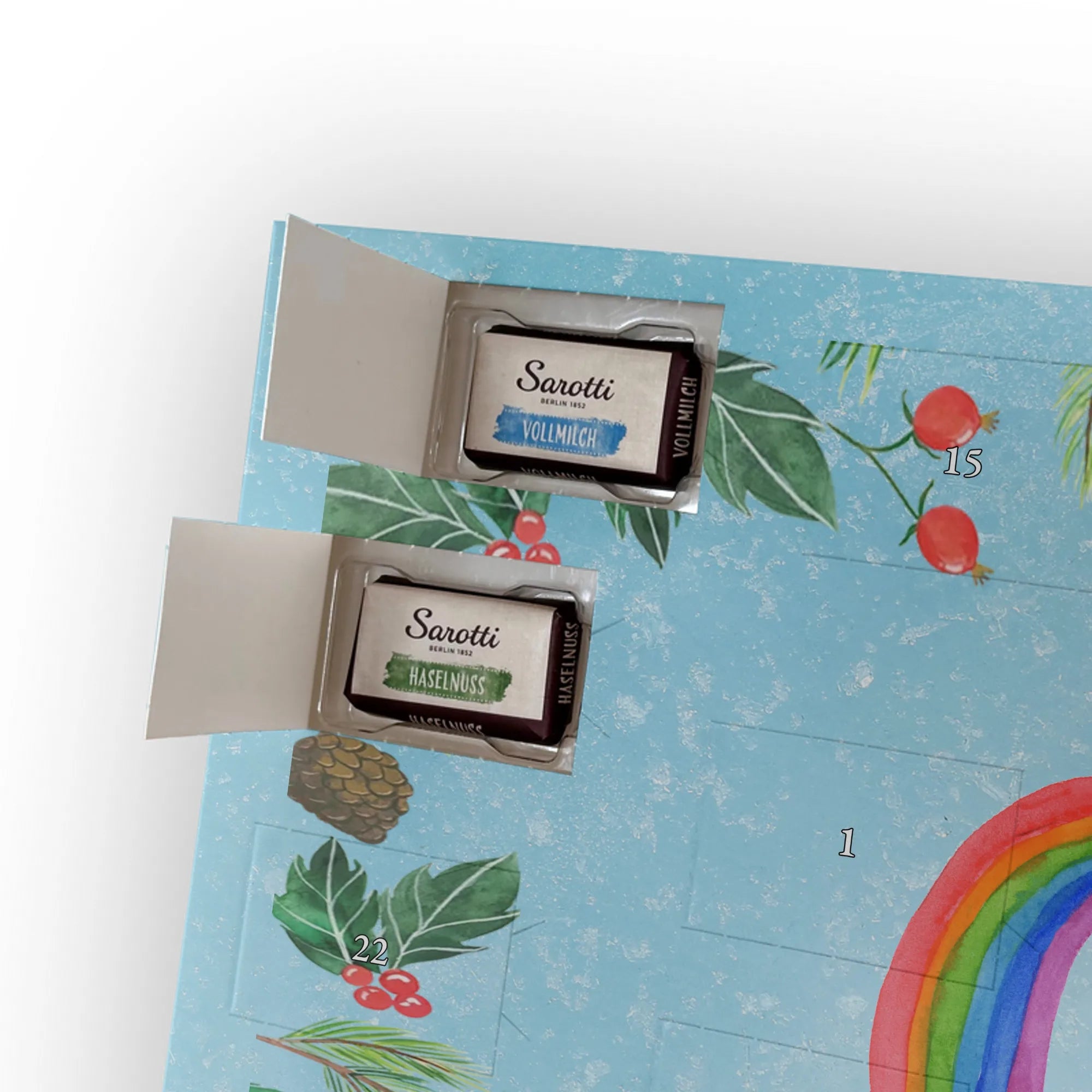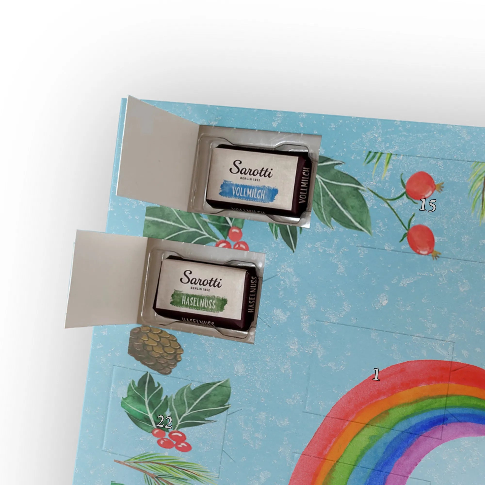 Mach die Adventszeit süßer: Entdecke unseren bedruckten Schokoladen Adventskalender von Mr. & Mrs. Panda und verschenke täglich Freude!