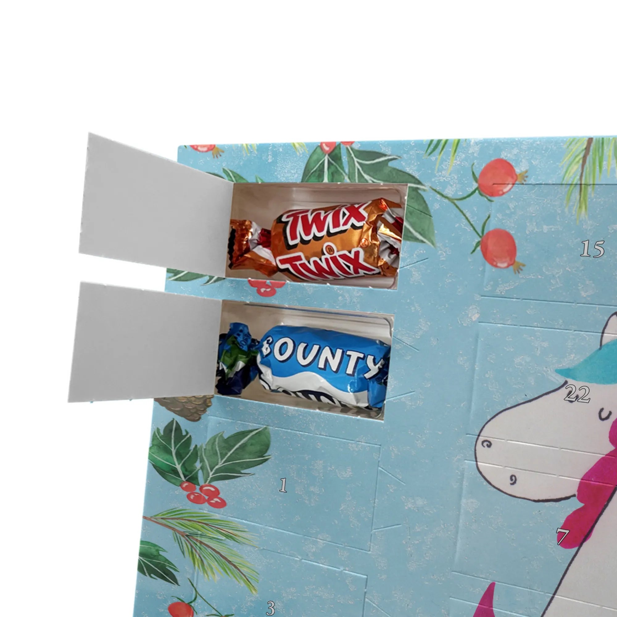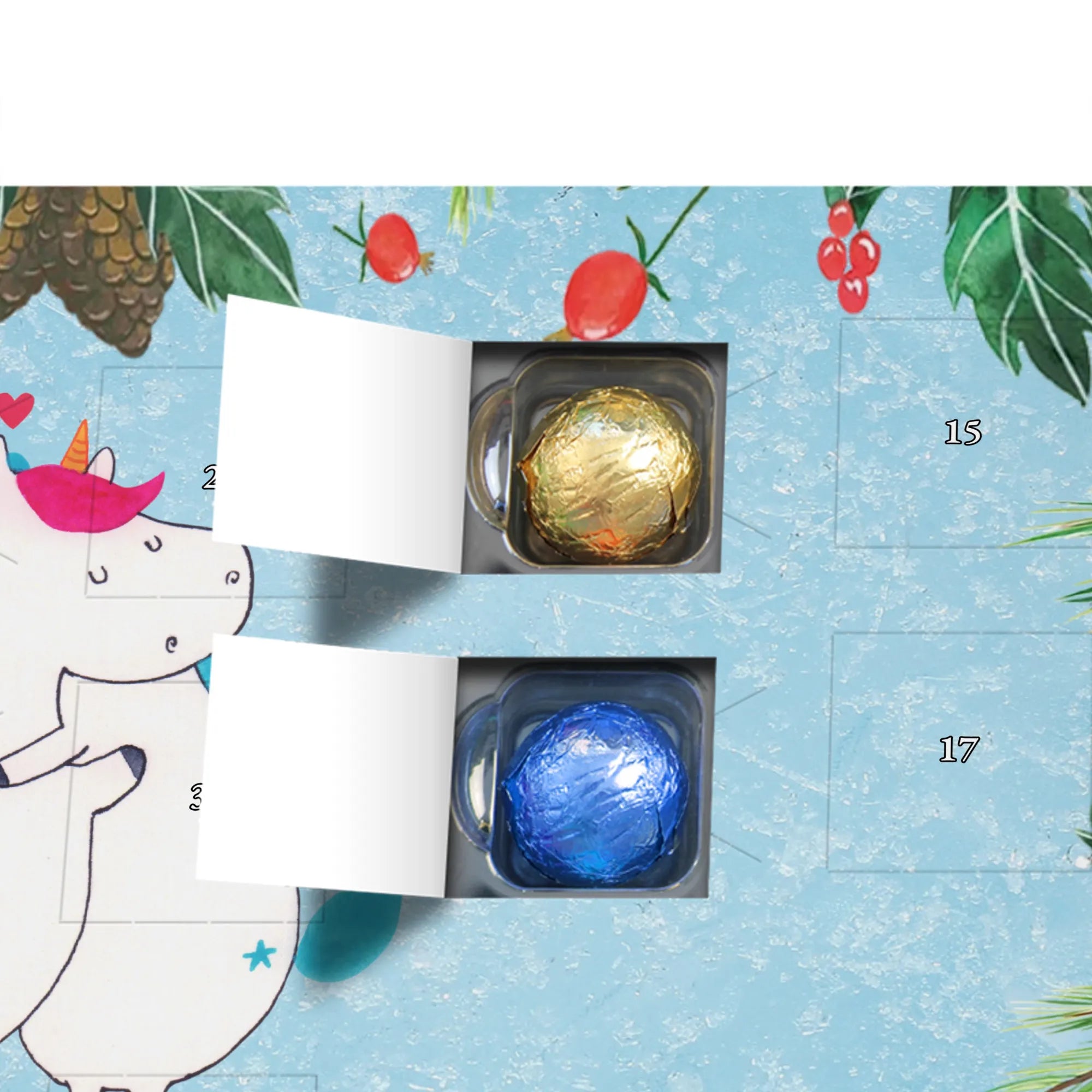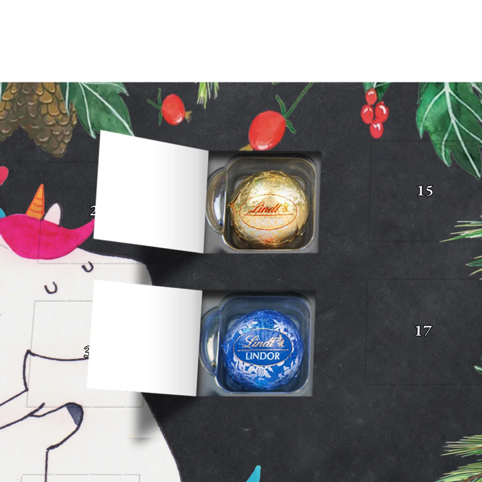 Verschenke mit unserem Schoko Adventskalender Einhorn Mitteilung aus der Einhorn - Kollektion ein Lächeln, tägliche Vorfreude und die liebevolle Botschaft: Du bist wundervoll! 🦄✨