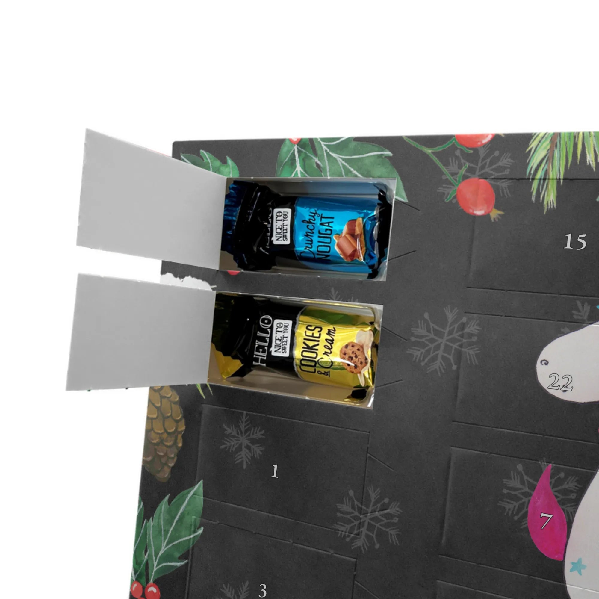 Schenk Vorfreude: Bestelle jetzt den Adventskalender Schokolade von Mr. & Mrs. Panda und genieße jeden Tag eine kleine Überraschung.