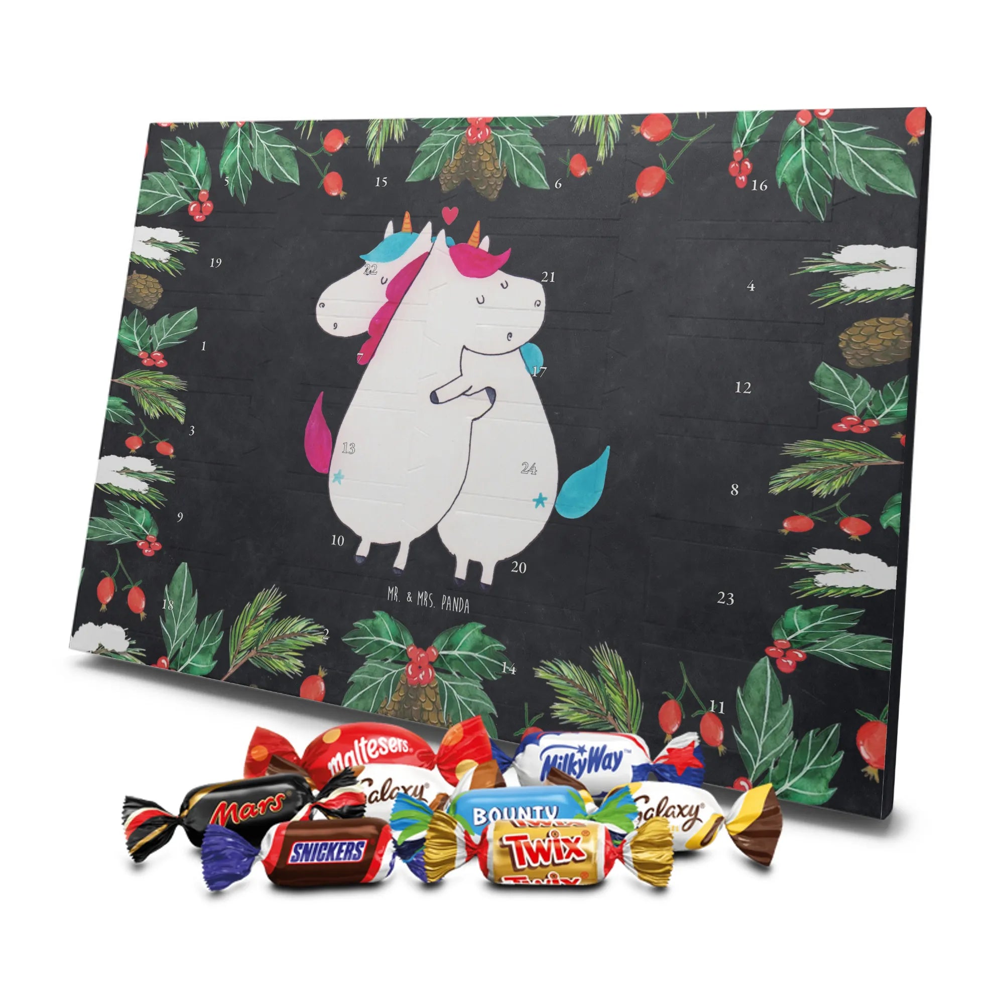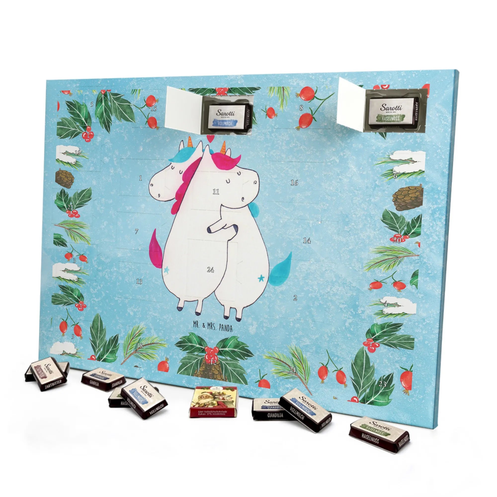 🐼 Schoko Adventskalender mit Mr. & Mrs. Panda Motiven, brillante Druckqualität, nicht personalisierbar.