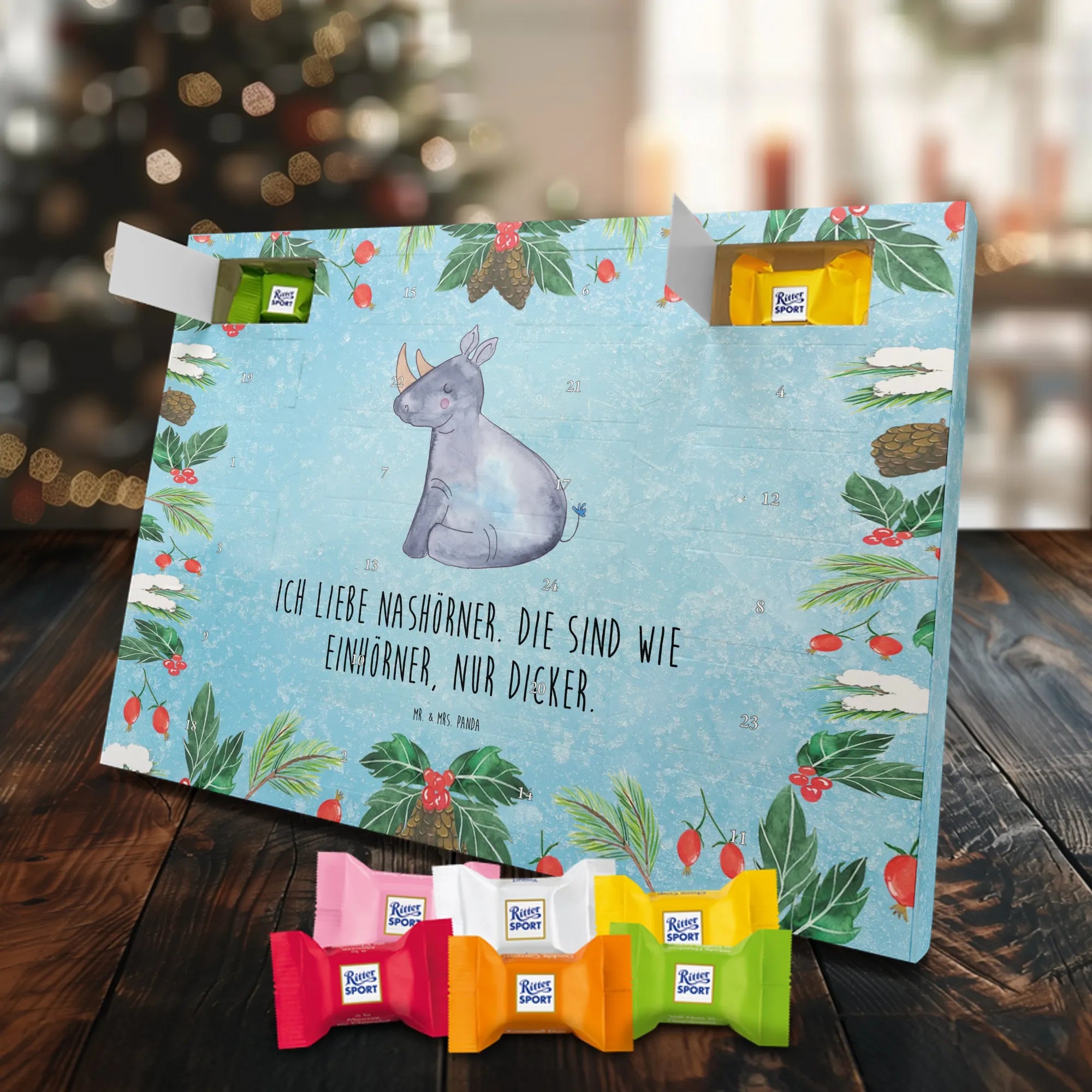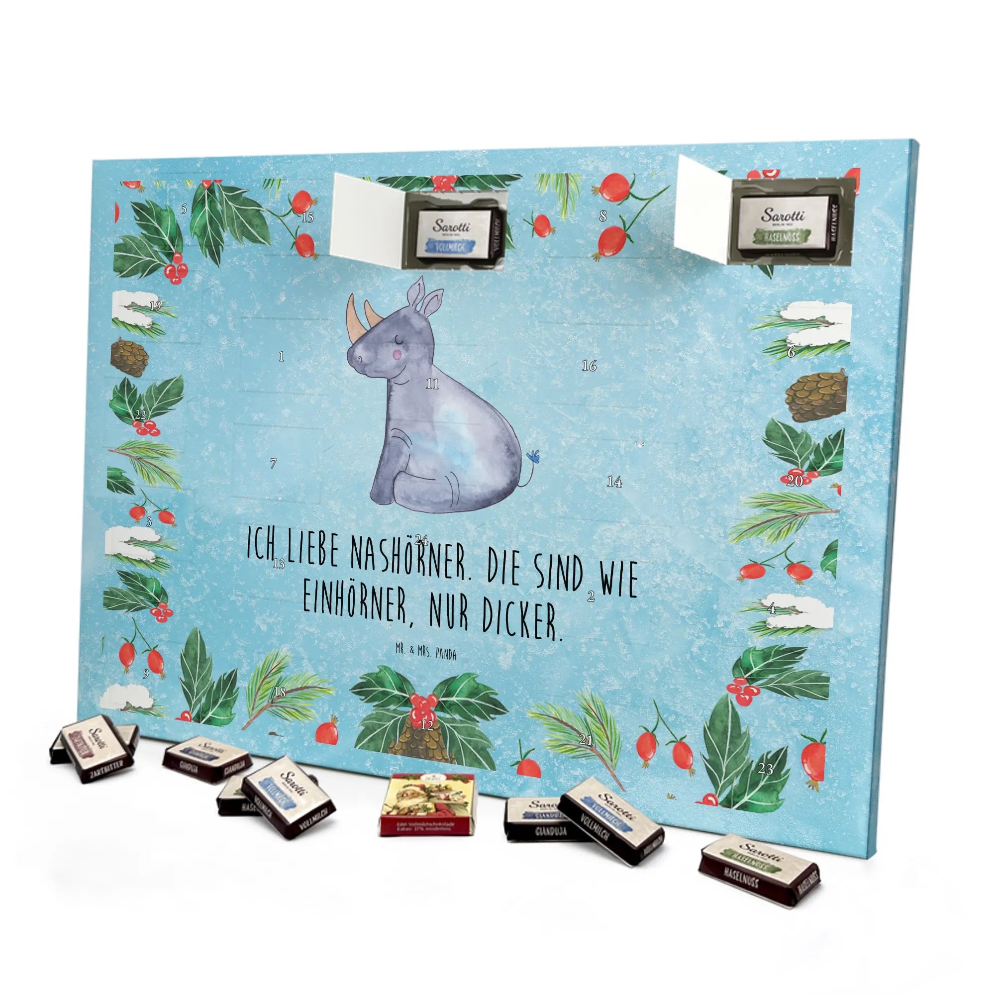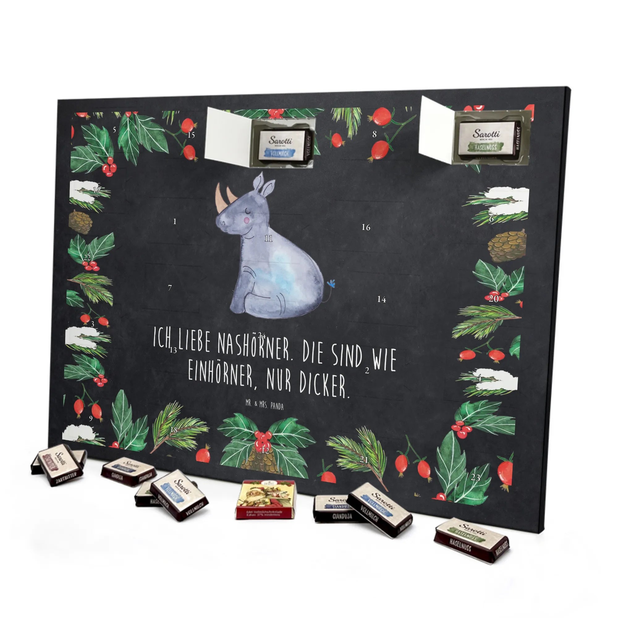 Mach die Adventszeit süßer: Entdecke unseren bedruckten Schokoladen Adventskalender von Mr. & Mrs. Panda und verschenke täglich Freude!