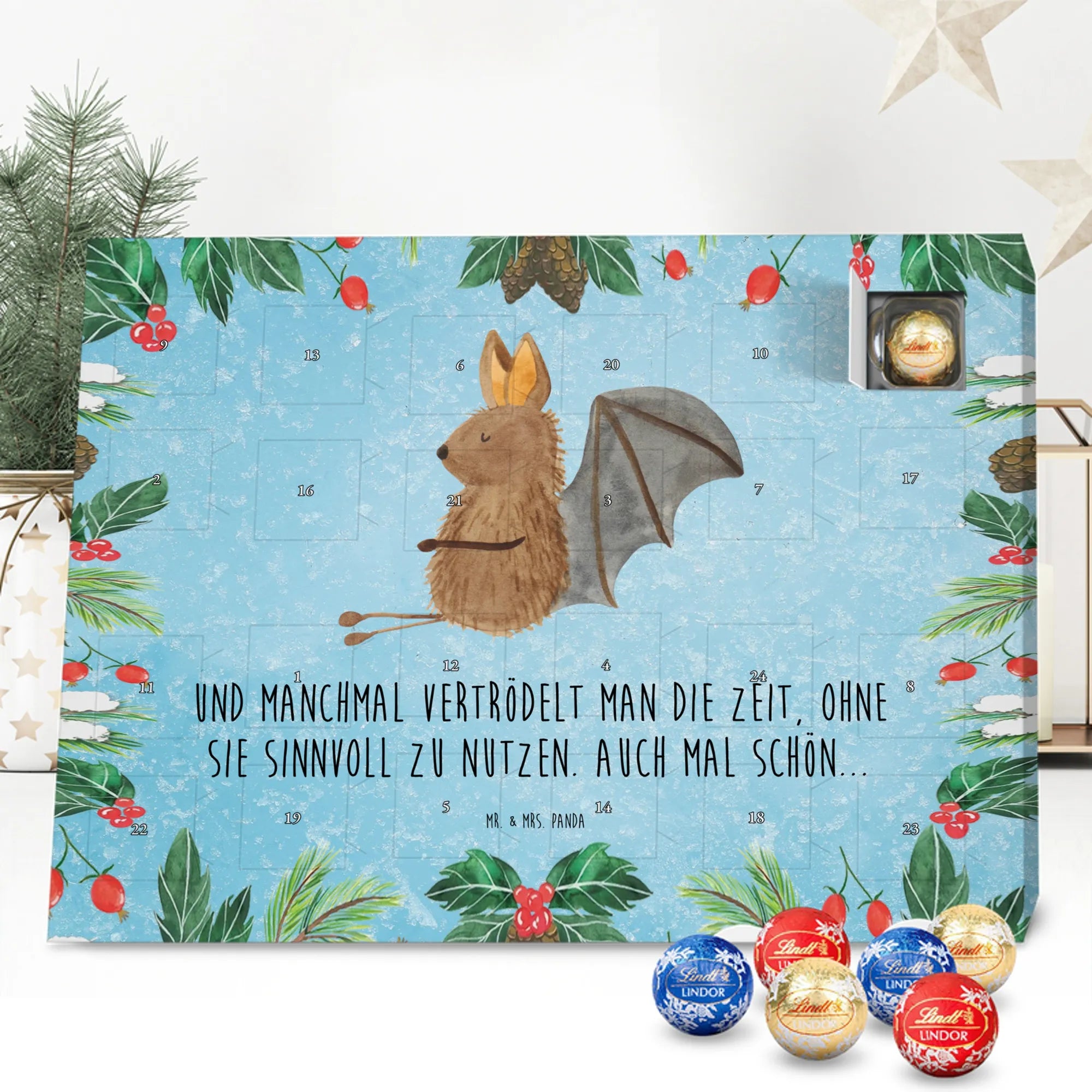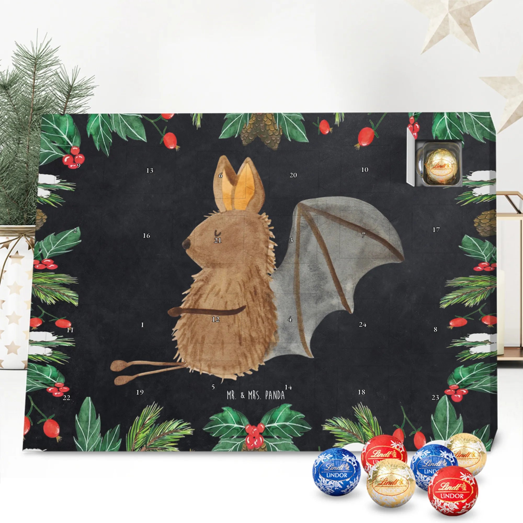 🐼 Gefüllter Schoko Adventskalender mit 24 Lindt Lindor Kugeln, hochwertige Optik.