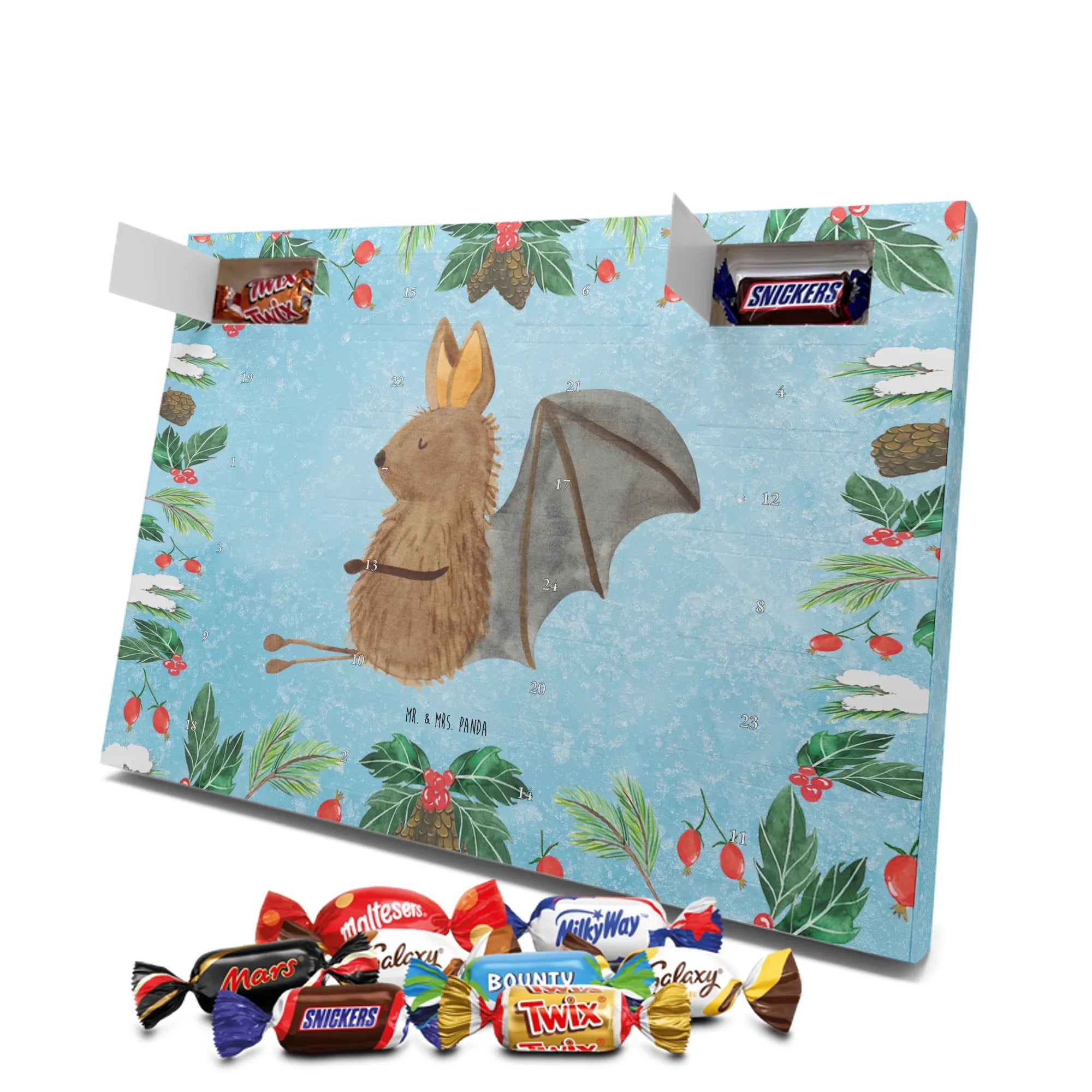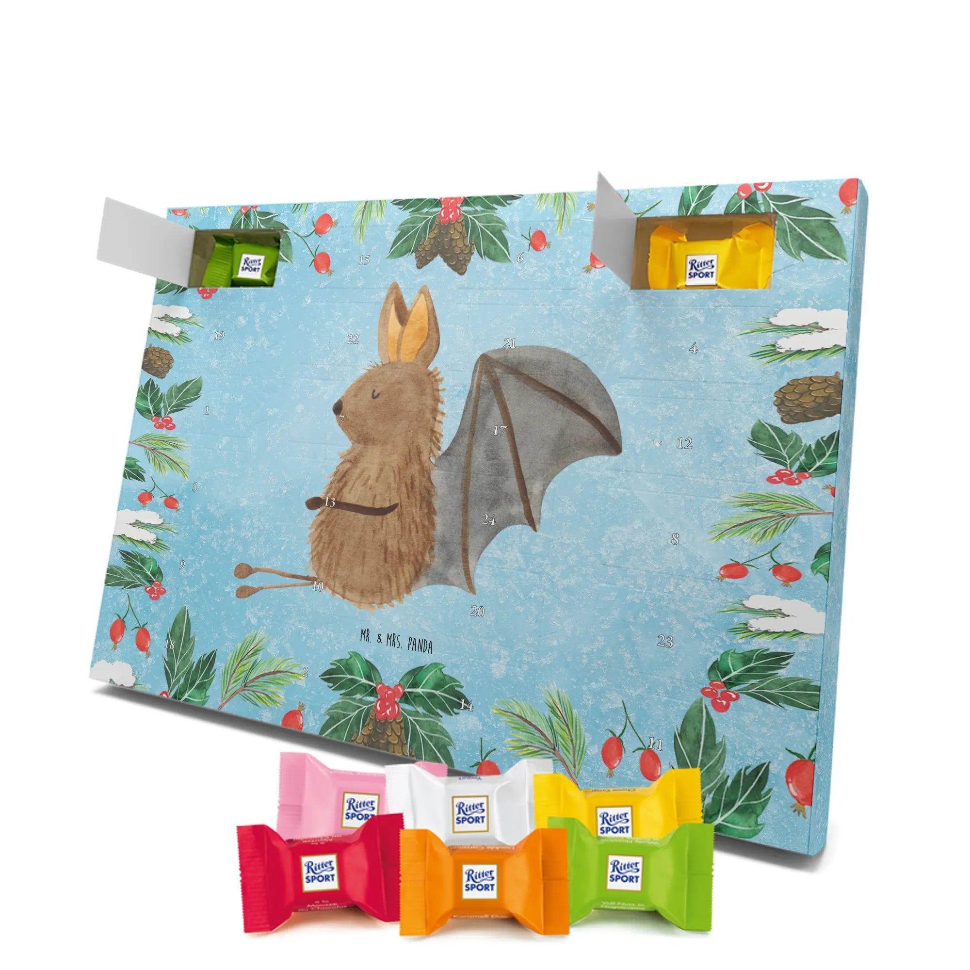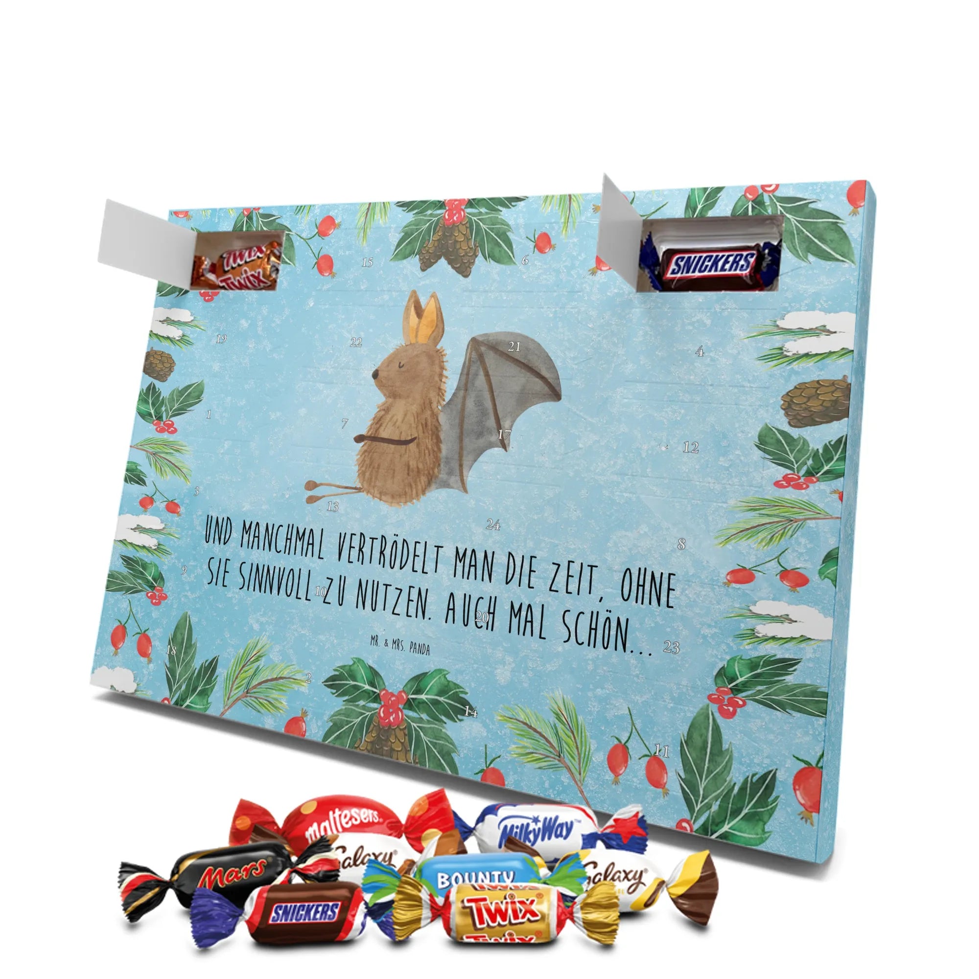 Schokoladen-Adventskalender Fledermaus Sitzen - Classic - mit Spruch - Eisblau