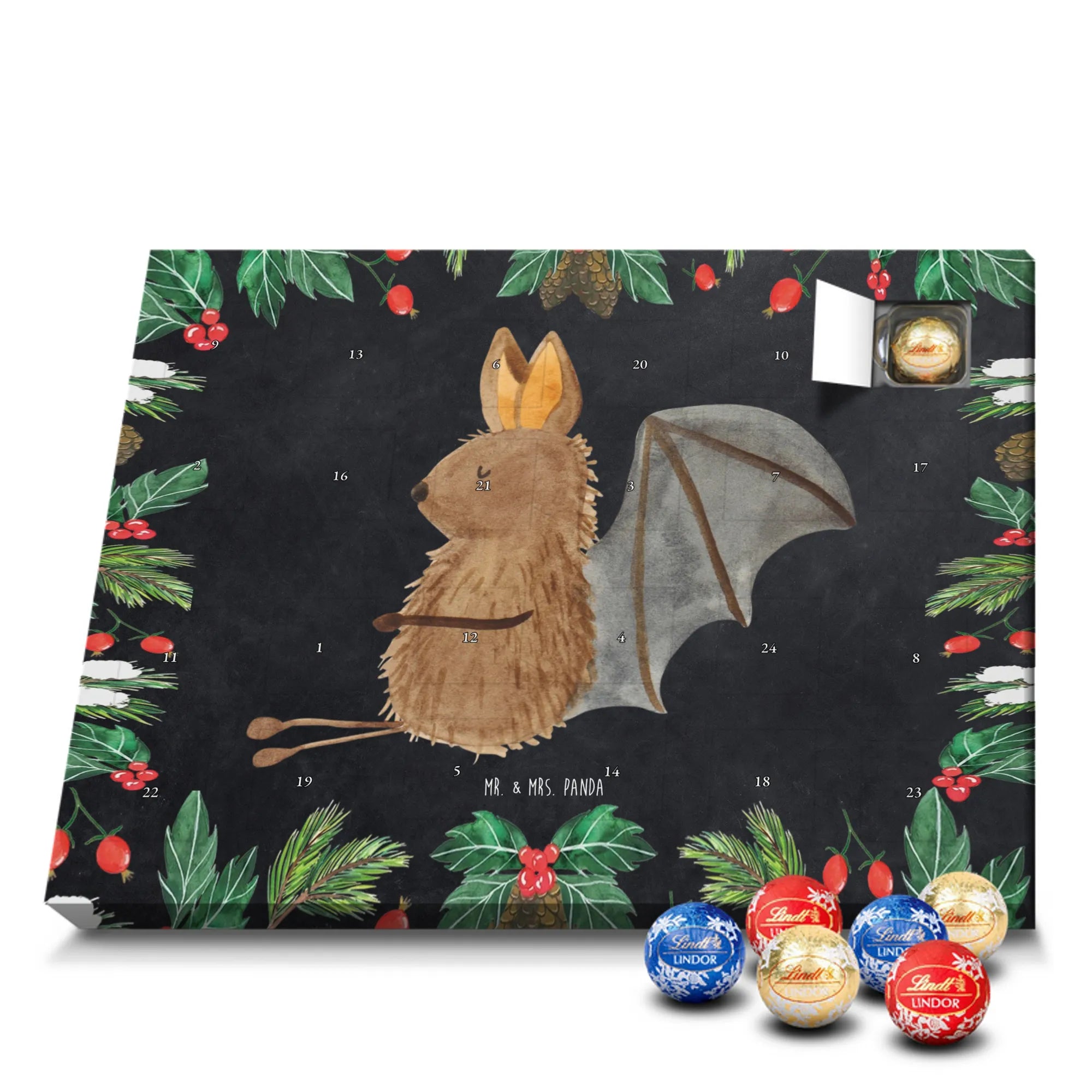 🐼 Schoko Adventskalender mit Lindt Lindor, 24 Kugeln, seidenmatter Druck, nicht personalisierbar.