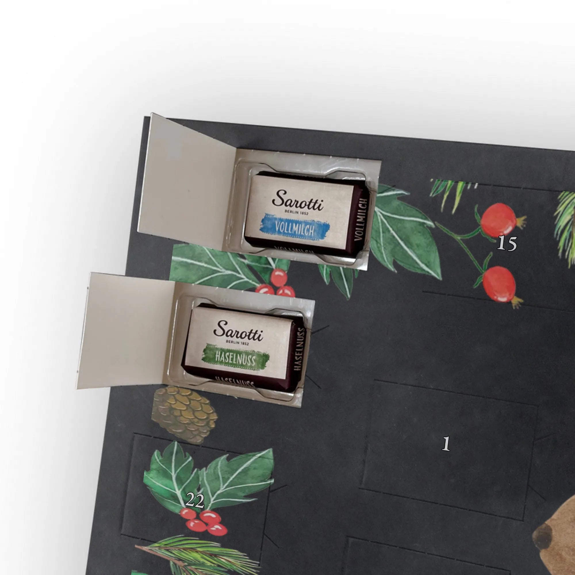 🐼 Adventskalender mit Schokolade, liebevoll bedruckt, seidenmatt veredelt.