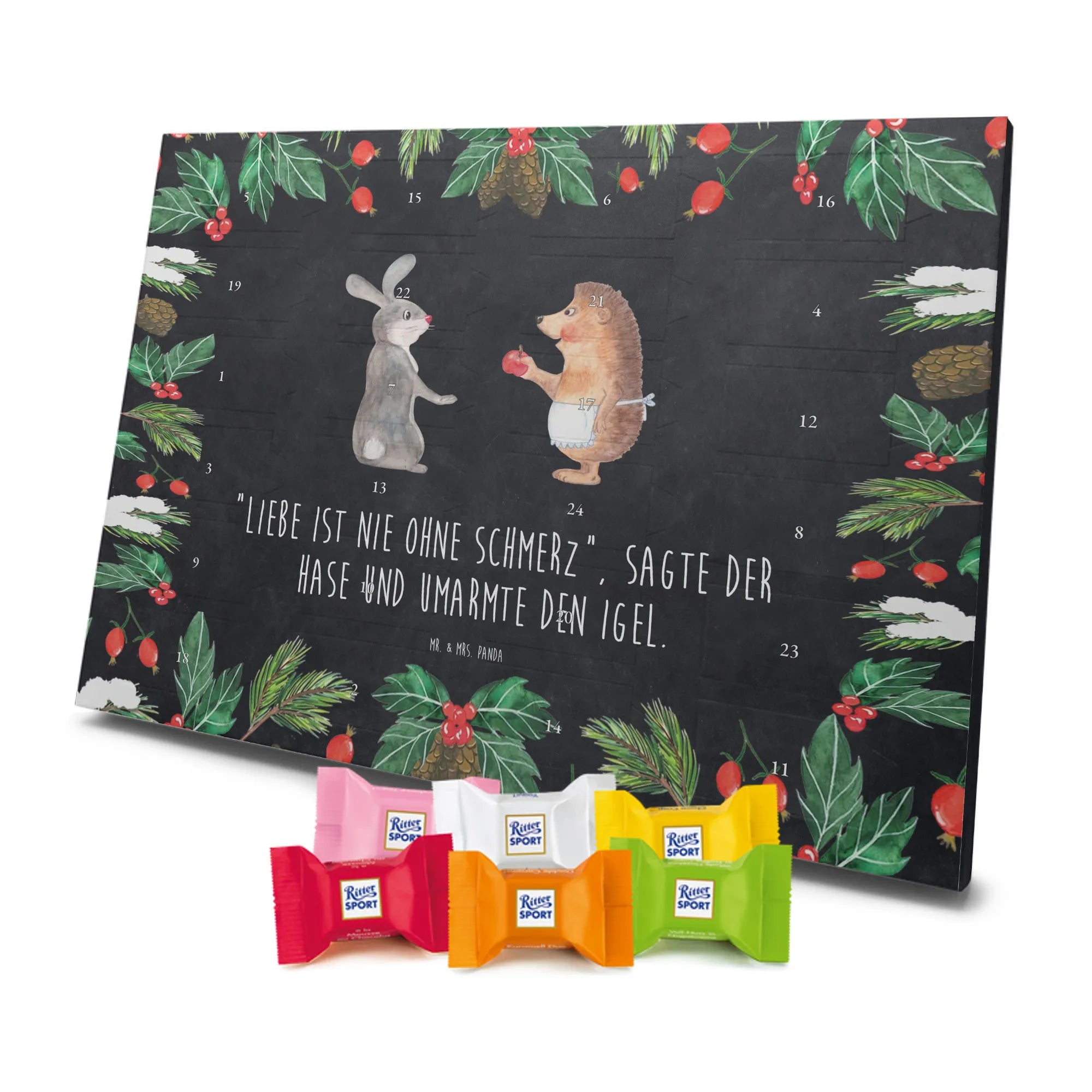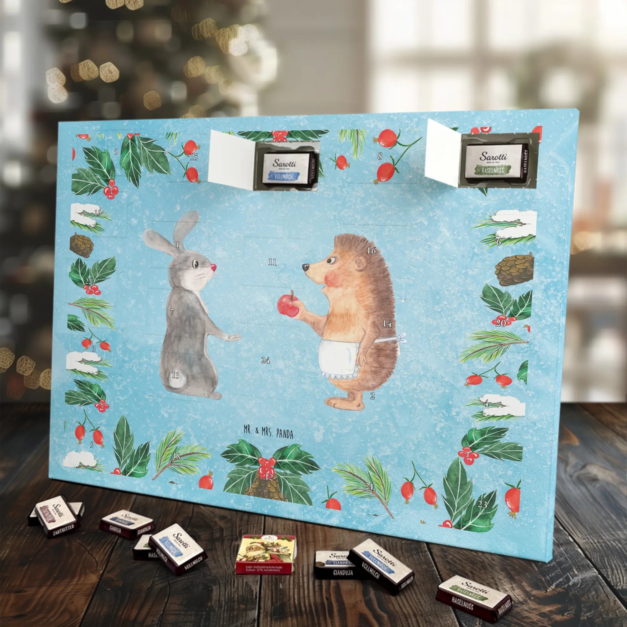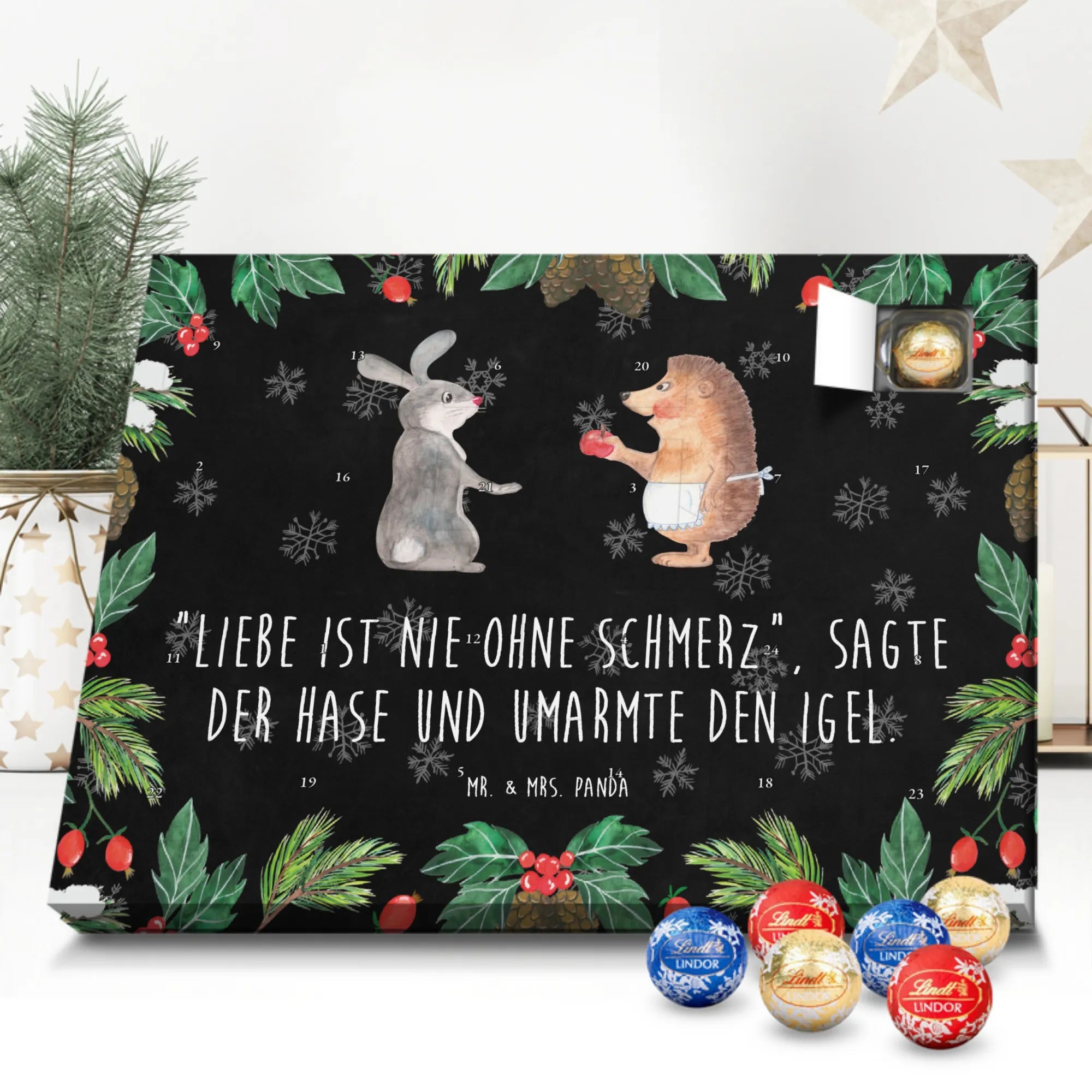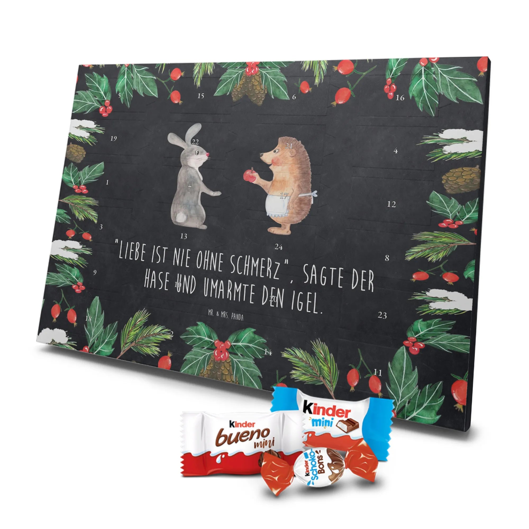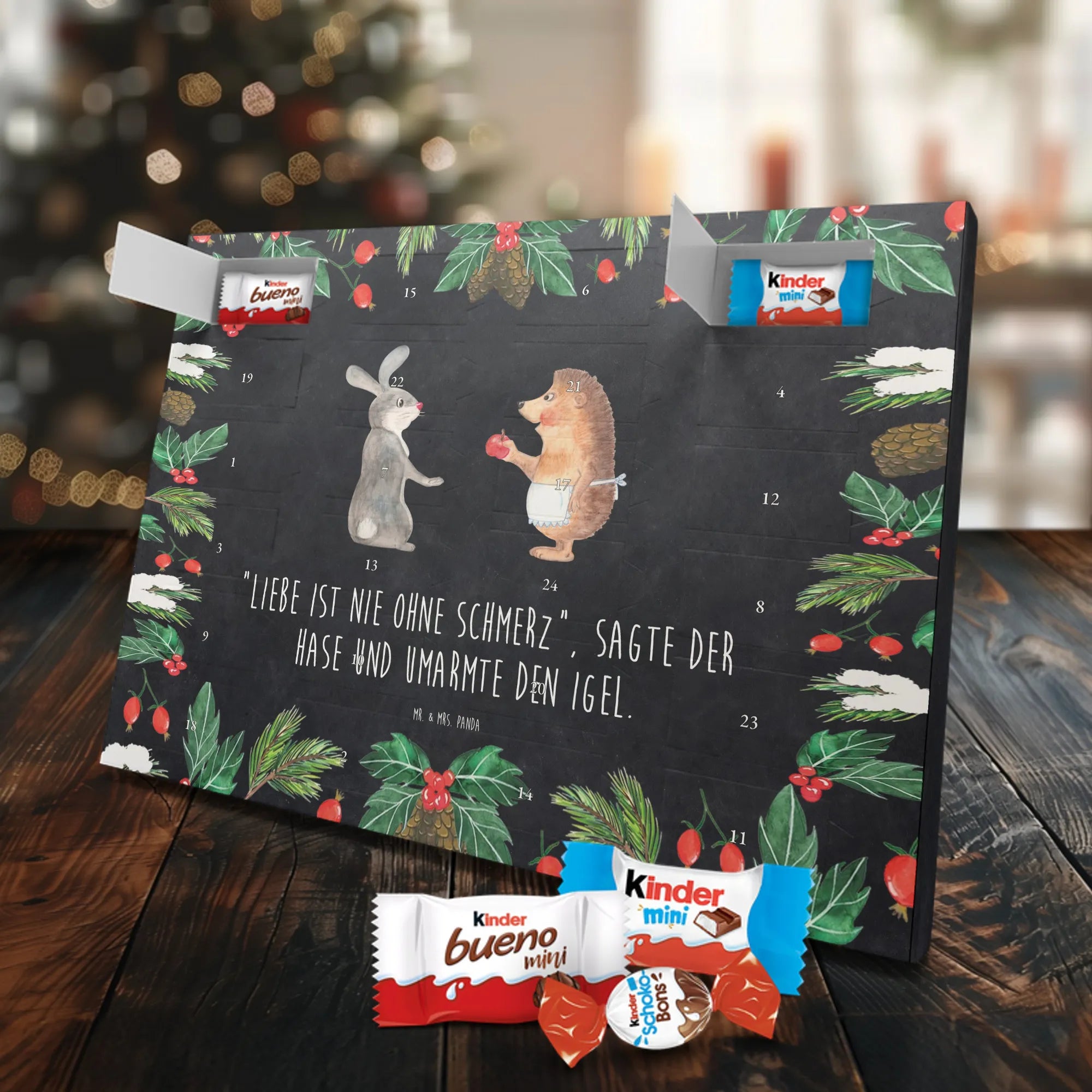 Mr. & Mrs. Panda Schoko Adventskalender „Liebe ist nie ohne Schmerz“ – ein zärtliches Geschenk aus der Small World Kollektion. Das liebevoll illustrierte Motiv mit dem Hasen und dem Igel trägt den versöhnlichen Spruch „Liebe ist nie ohne Schmerz“, sagte der Hase und umarmte den Igel. und erinnert daran, dass Liebe trotz Schmerz schön und tröstlich sein kann.