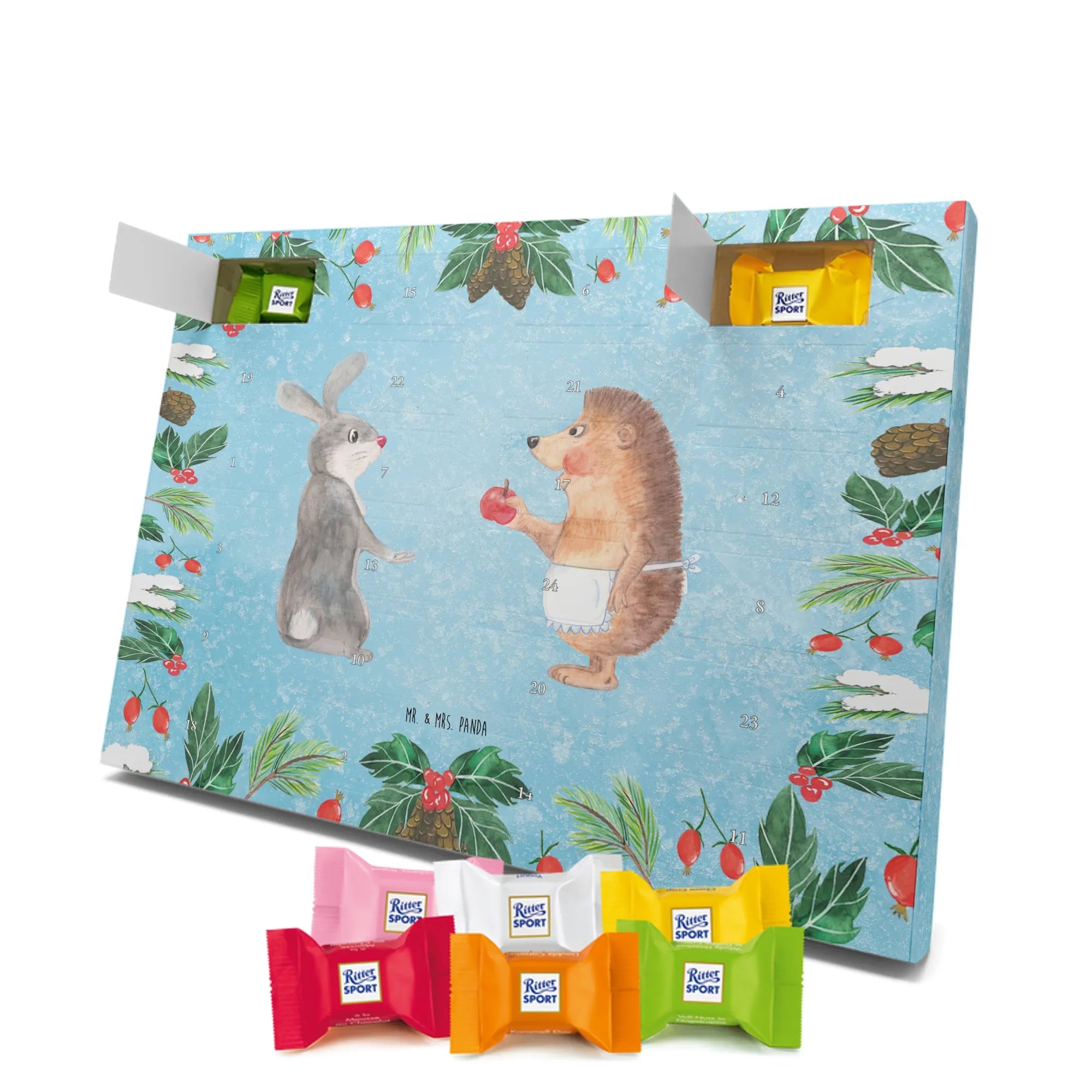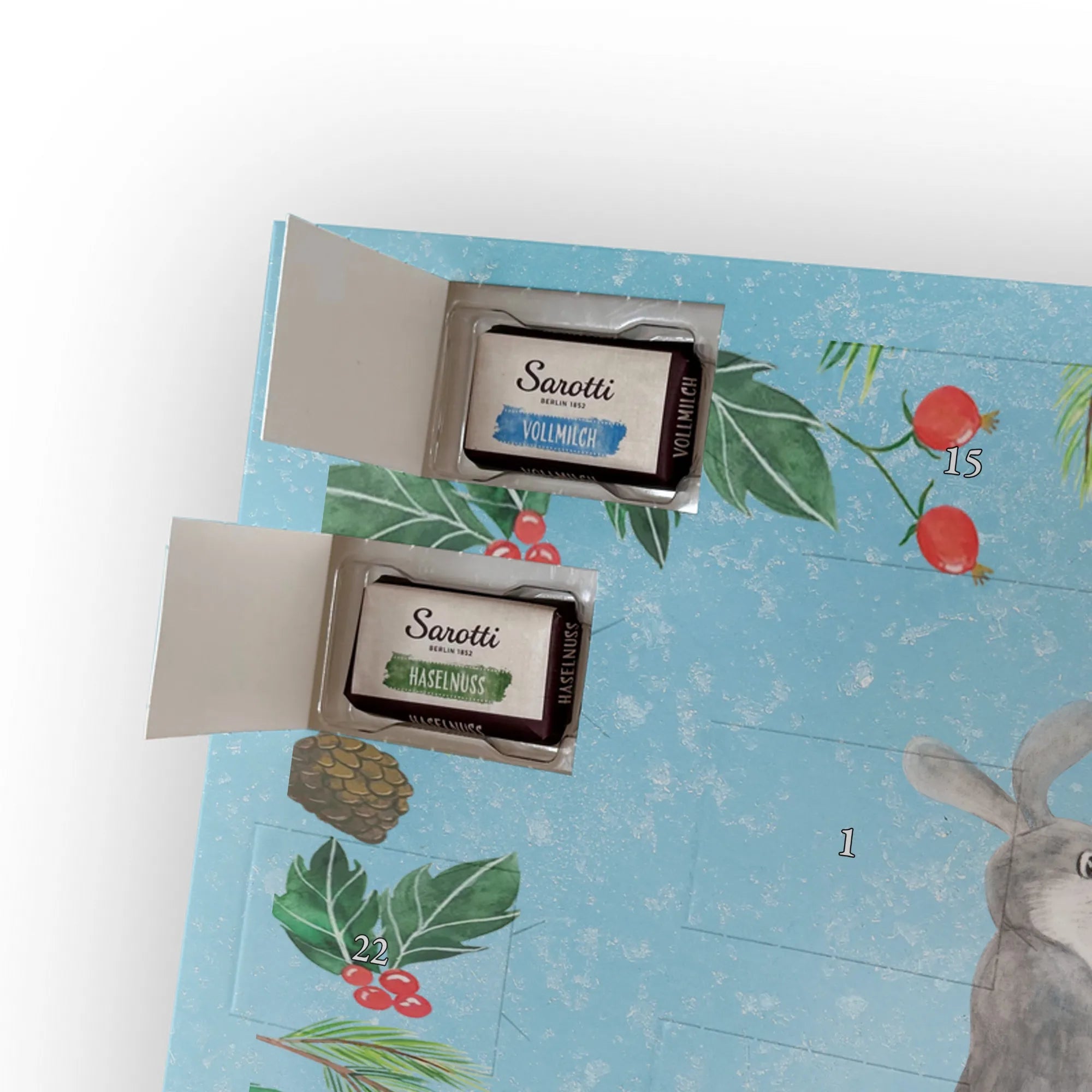 Weihnachts Kalender Hase Igel - Classic - mit Spruch - Eisblau