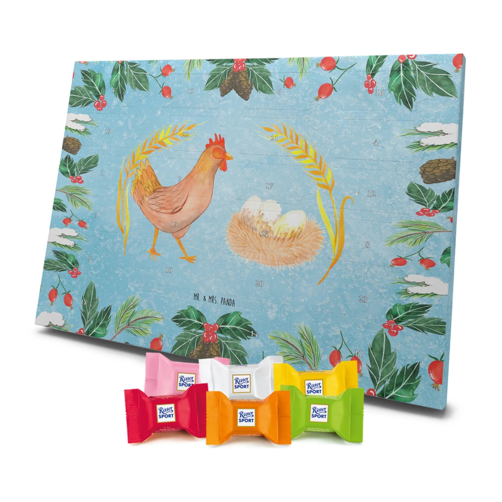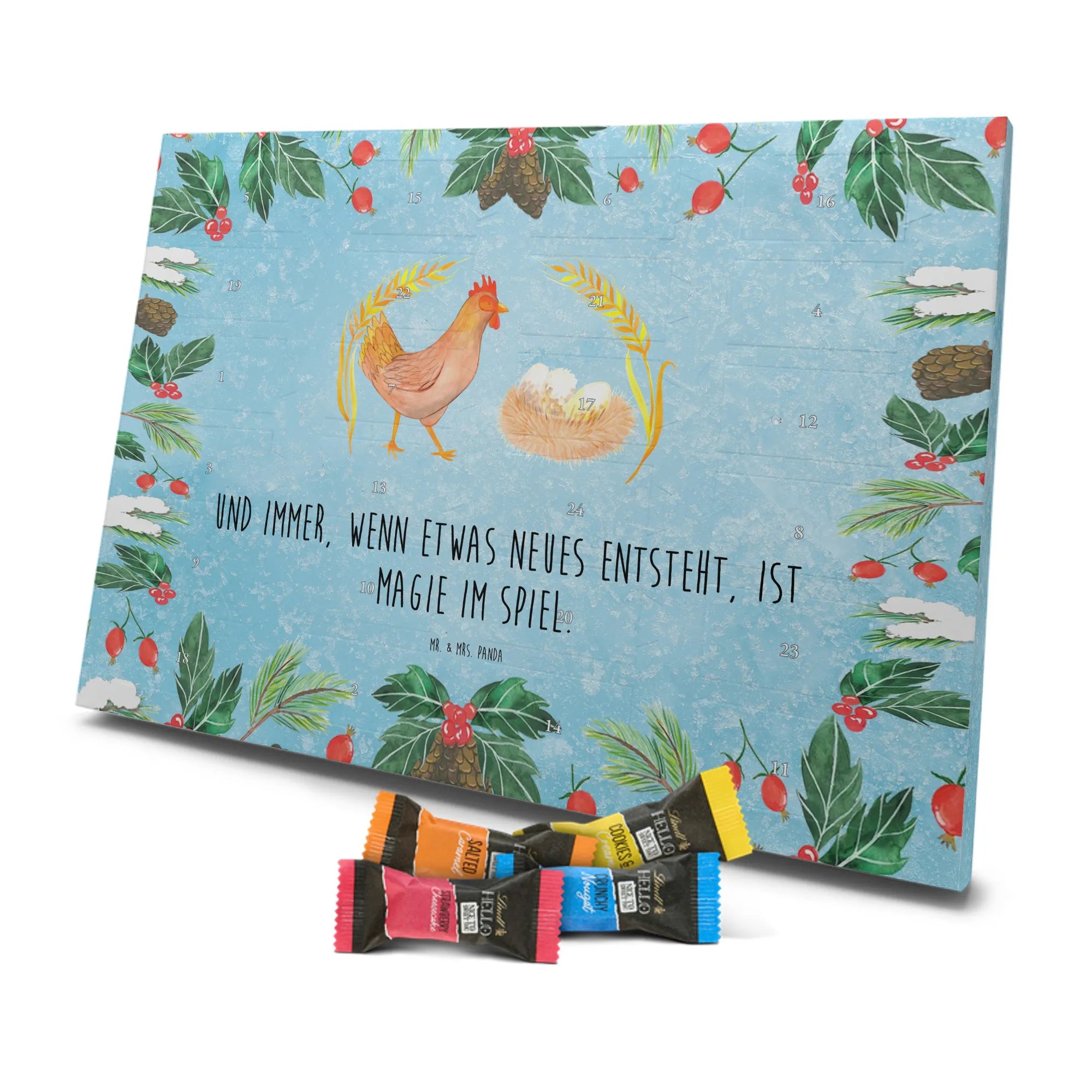 Schoko Adventskalender Huhn Stolz - Classic - mit Spruch - Eisblau