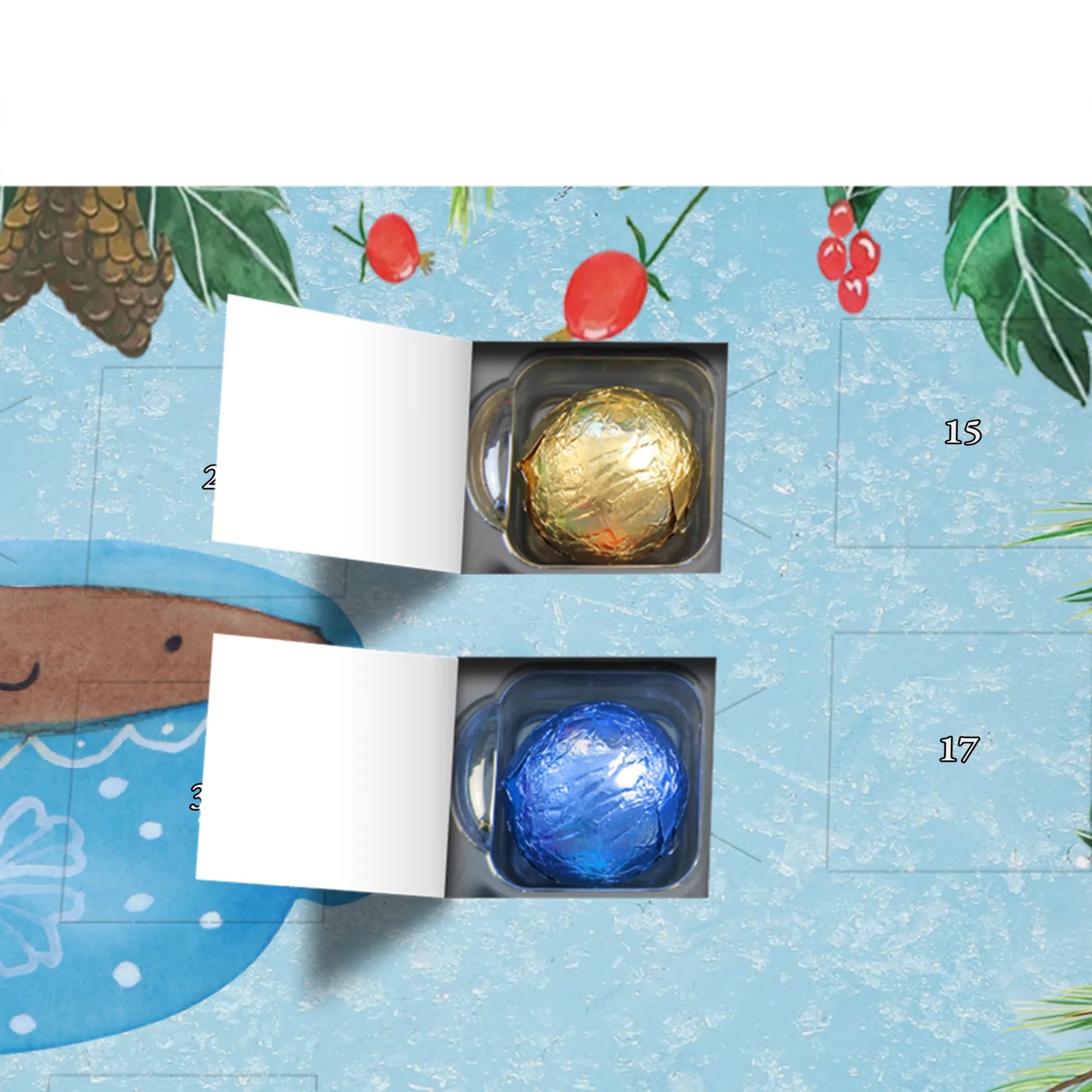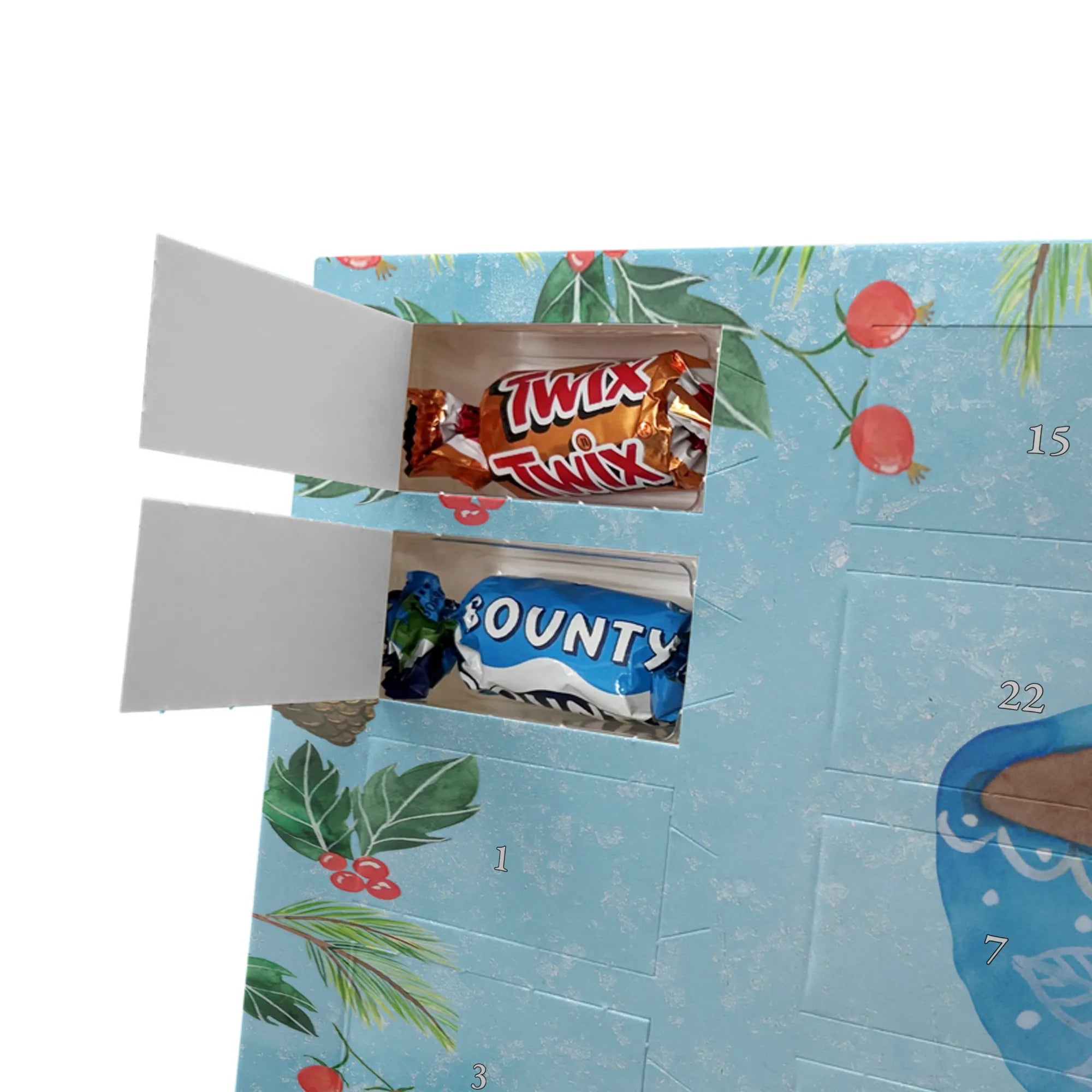 Hinweis: Der Kalender ist nicht personalisierbar, liefert aber durch Motiv, Spruch und leckere Füllung unvergessliche Momente in der Adventszeit.