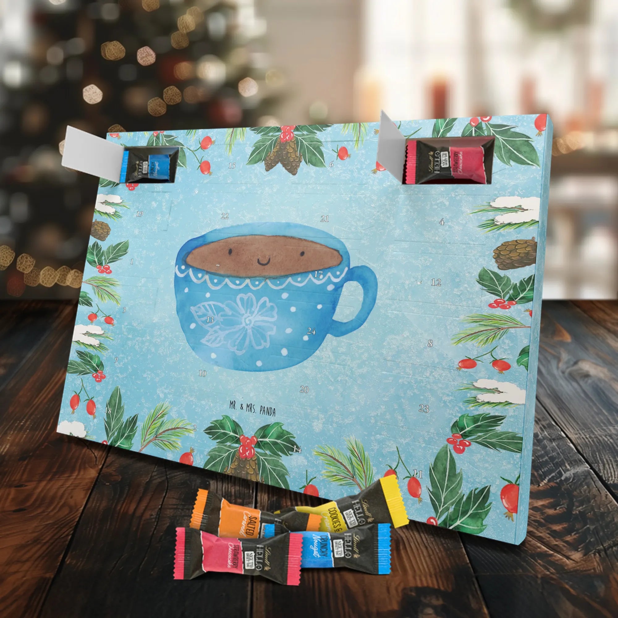 Verschenke Vorfreude und Genuss mit diesem liebevoll gestalteten Schoko Adventskalender von Mr. & Mrs. Panda. Eine kleine Tasse Glück für jeden Adventstag.