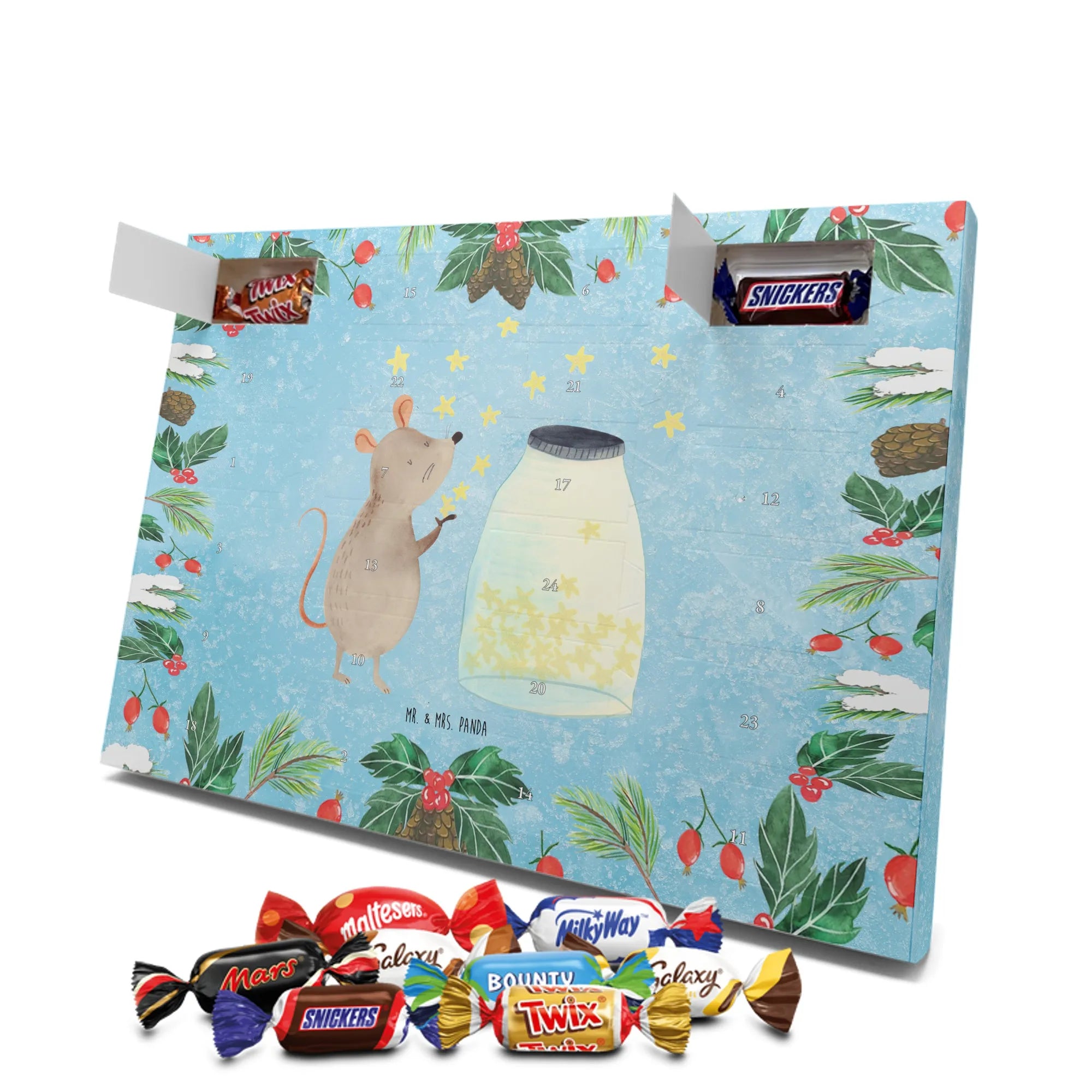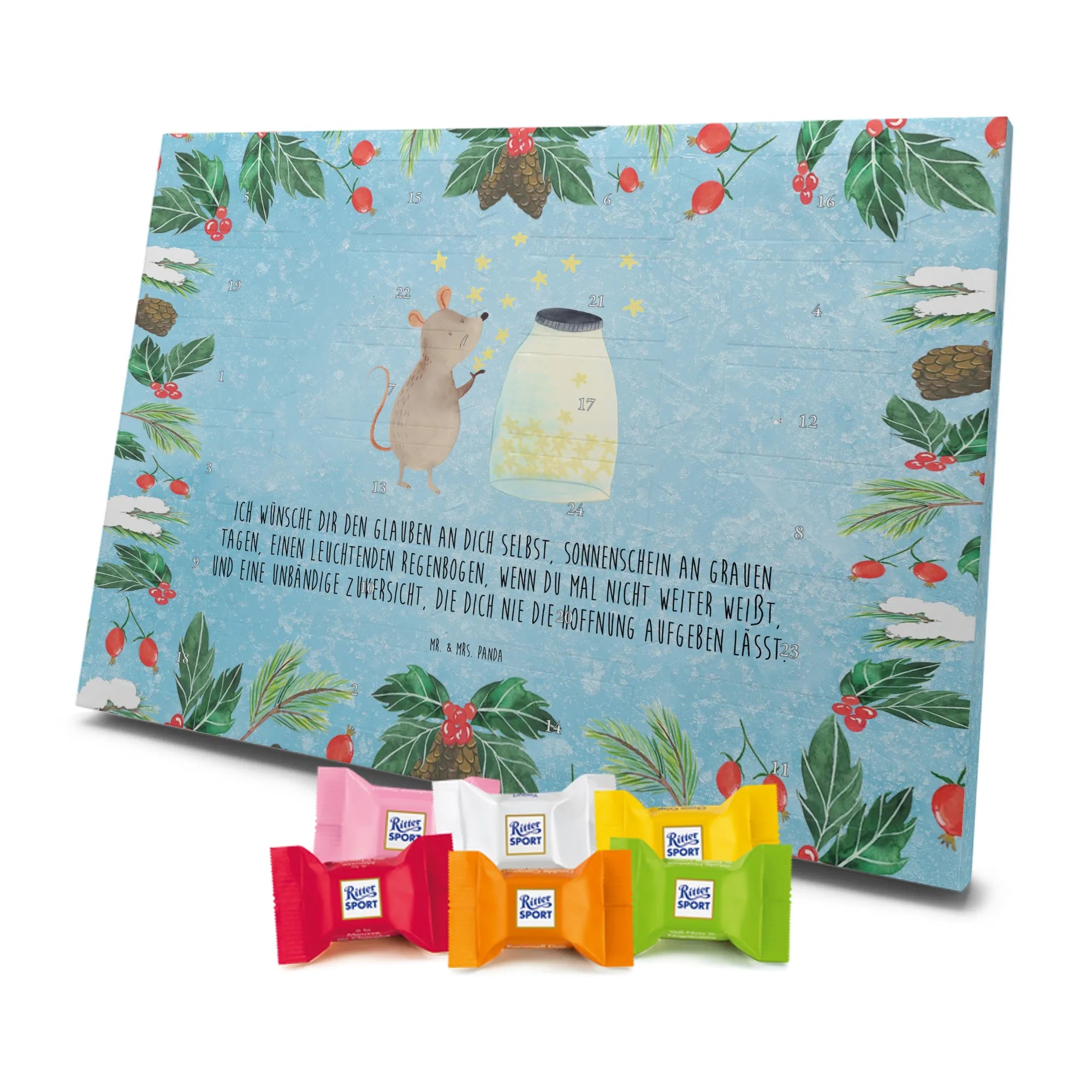 adventskalender pralinen Maus Sterne - Classic - mit Spruch - Eisblau