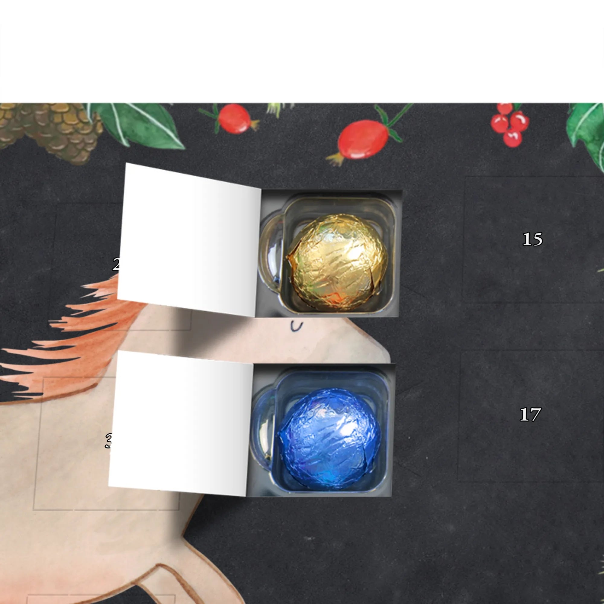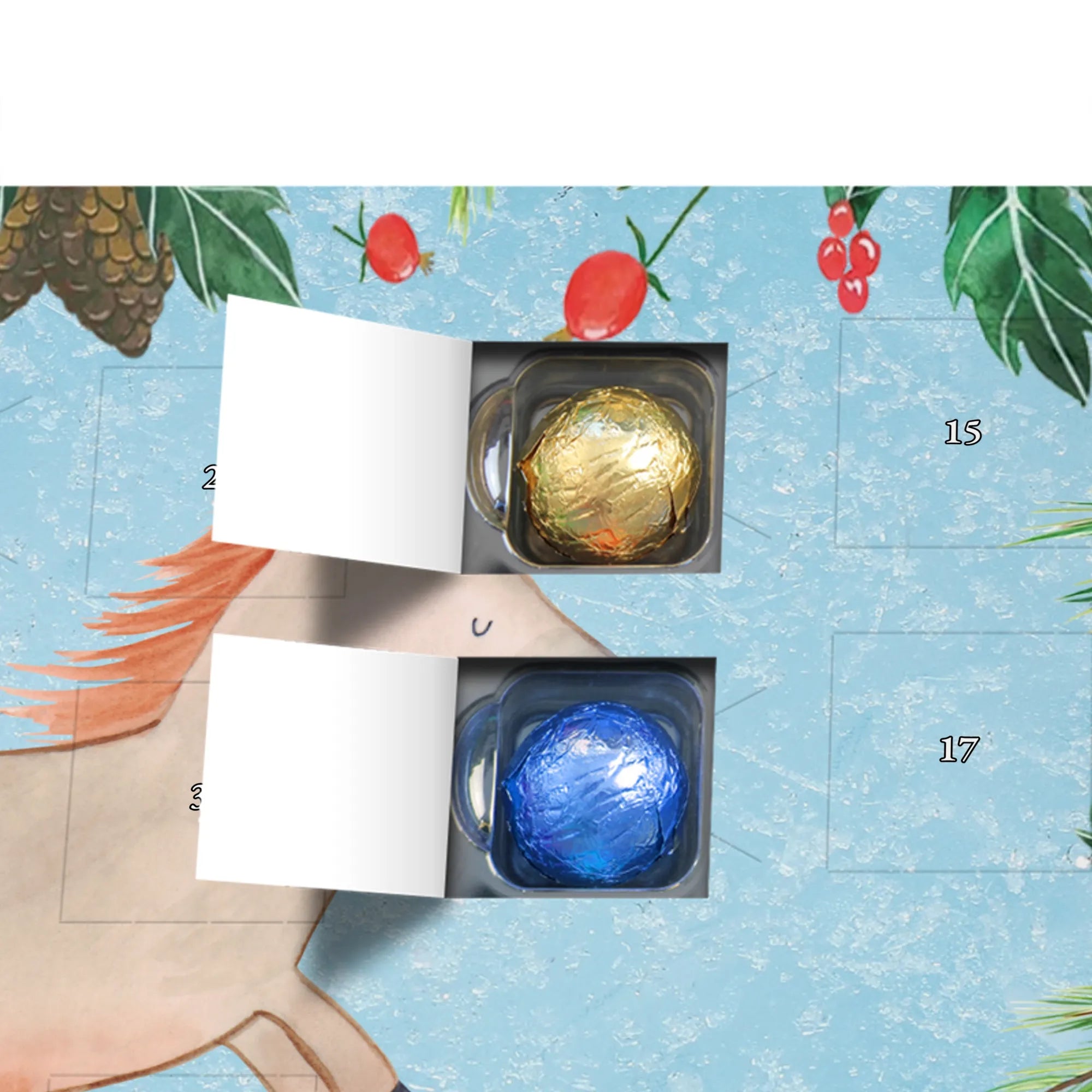 Mach die Adventszeit süßer: Entdecke unseren bedruckten Schokoladen Adventskalender von Mr. & Mrs. Panda und verschenke täglich Freude!