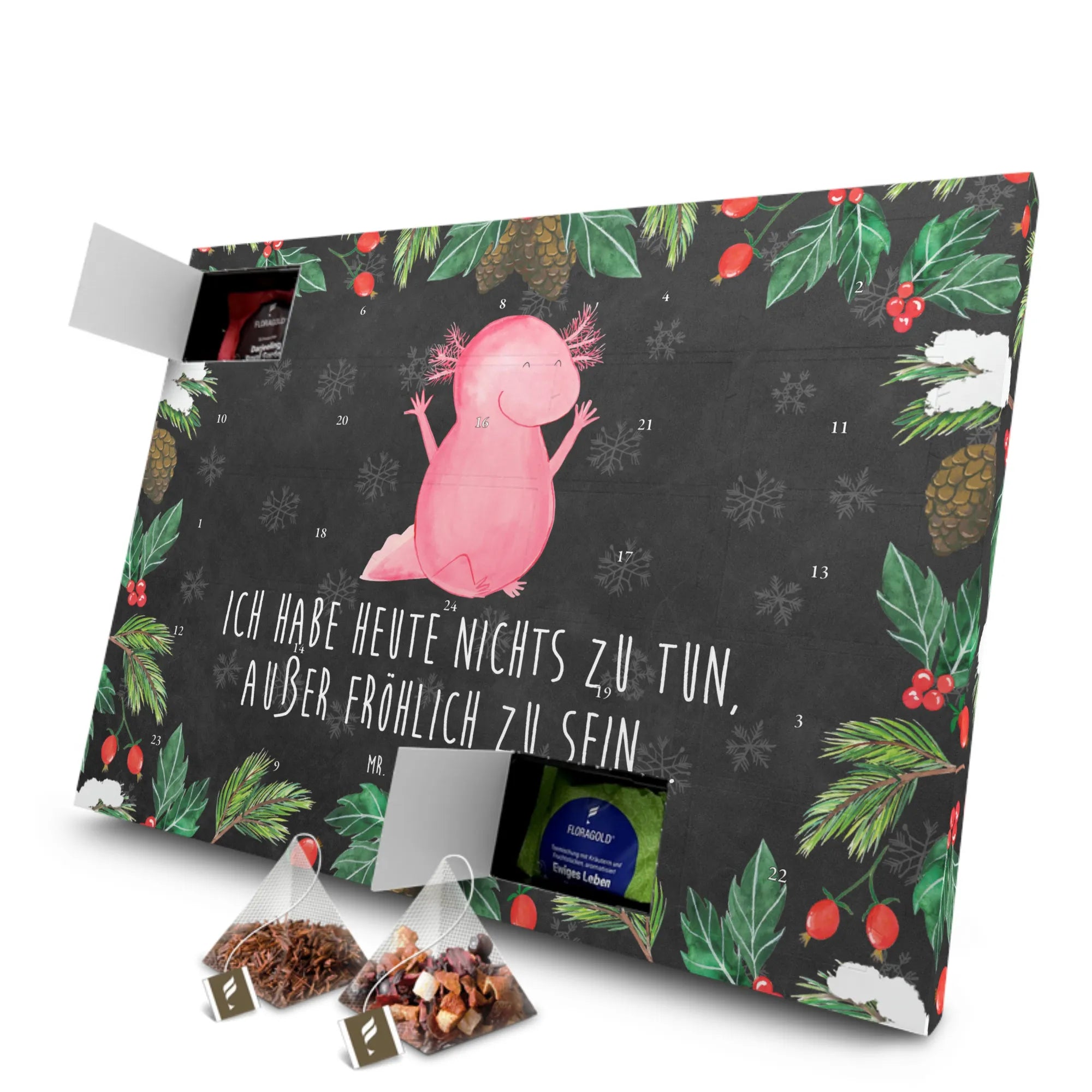 Dieser einzigartige Adventskalender ist nicht nur ein Spaß für die Augen, sondern bringt auch Freude in jeden Tag der Vorweihnachtszeit. Mit der liebevoll gestalteten Illustration eines jubelnden Axolotls und dem fröhlichen Slogan „Ich habe heute nichts zu tun, außer fröhlich zu sein...“ sorgt dieser Kalender für gute Laune und Motivation. Perfekt für Teeliebhaber und alle, die die besonderen Momente der Adventszeit zu schätzen wissen!