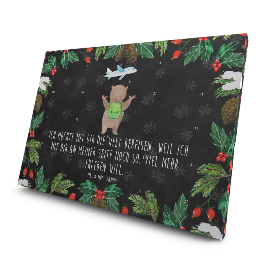 Mit dem liebevollen Motiv eines Bären, der im Flugzeug fliegt und seinen großen Traum von Reisen träumt, bringst Du ein Stück Abenteuer und Freude in die kalte Jahreszeit. Dieser Adventskalender ist nicht nur ein schönes Geschenk für Deine Freundin oder Deinen Partner, sondern auch eine wunderbare Überraschung für Deinen Ehemann oder Deine Ehefrau. Die Botschaft "Ich möchte mit dir die Welt bereisen, weil ich mit dir an meiner Seite noch so viel mehr erleben will" spricht dabei direkt aus dem Herzen und macht den Kalender zu einem liebevollen Liebesbeweis.