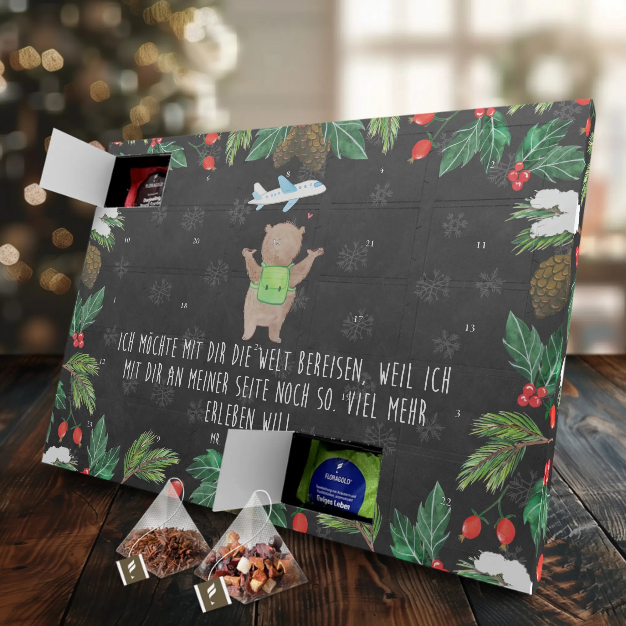 Der Tee-Adventskalender mit dem süßen Motiv "Bär Flugzeug" aus der Liebe-Kollektion von Mr. & Mrs. Panda ist das perfekte Geschenk für all jene, die das Besondere lieben. Ganz gleich, ob für den Valentinstag, den Jahrestag oder als liebevolles Mitbringsel zum Hochzeitstag – dieser Adventskalender begeistert nicht nur mit köstlichen Tees, sondern auch mit einer herzlichen Botschaft. "Ich möchte mit dir die Welt bereisen, weil ich mit dir an meiner Seite noch so viel mehr erleben will." Diese liebevollen Worte laden dazu ein, unvergessliche Momente zu teilen und Abenteuer zu erleben.