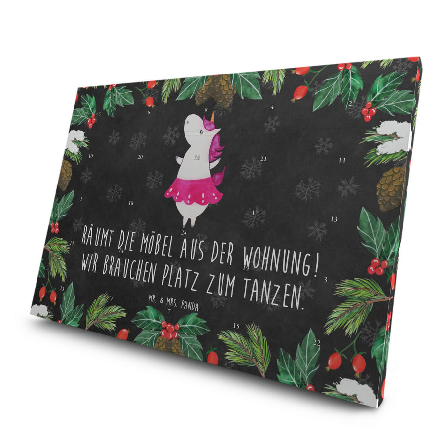 Der Kalender, bedruckt mit dem bezaubernden Motiv eines tanzenden Einhorns, bringt Lebensfreude und macht das Warten auf Weihnachten so viel schöner. Als besonderer Hingucker dient er gleichzeitig als Deko-Element und passt perfekt in jede Wohnung oder an jeden Feiertagstisch.