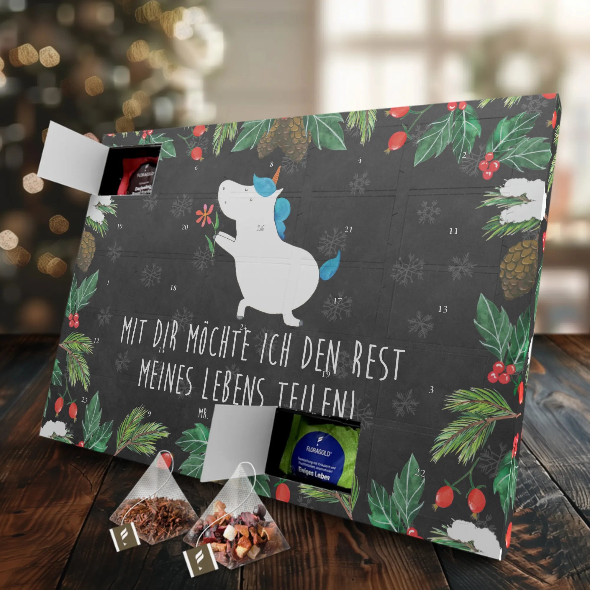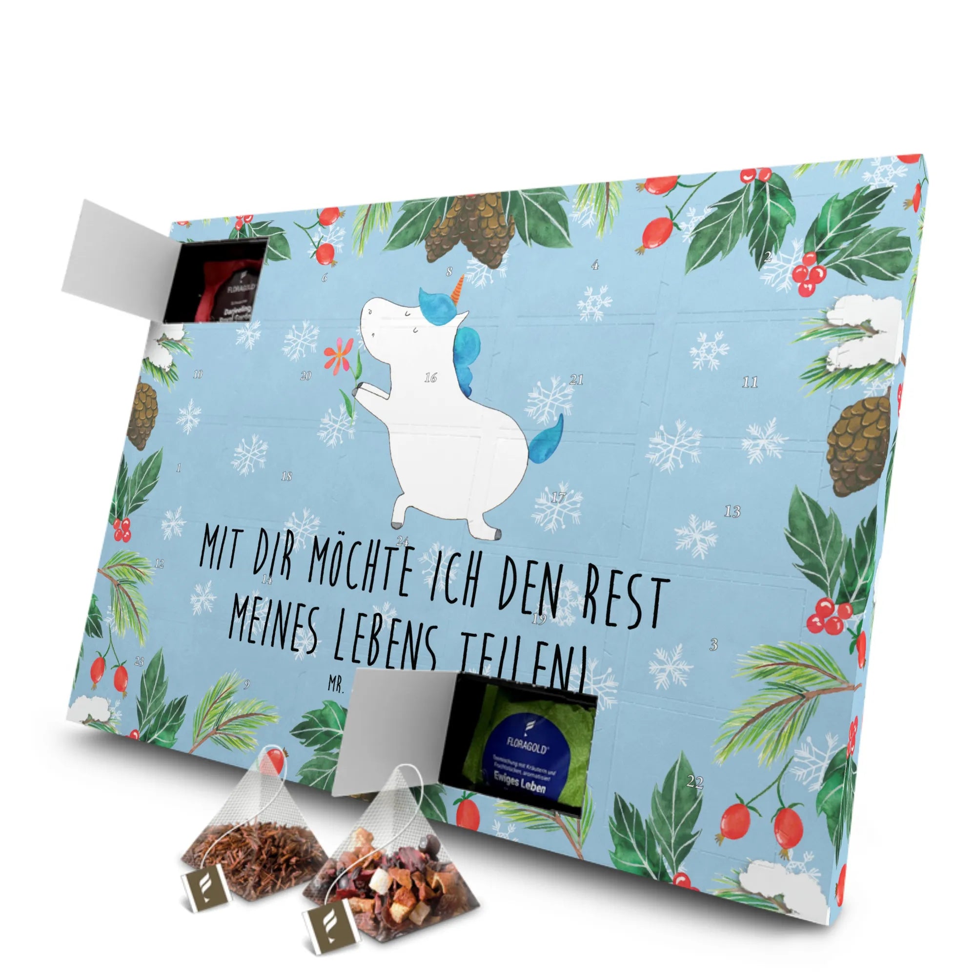 Der Tee Adventskalender Einhorn Blume aus der bezaubernden Einhorn-Kollektion von Mr. & Mrs. Panda ist das perfekte Geschenk für alle Einhorn-Liebhaber!