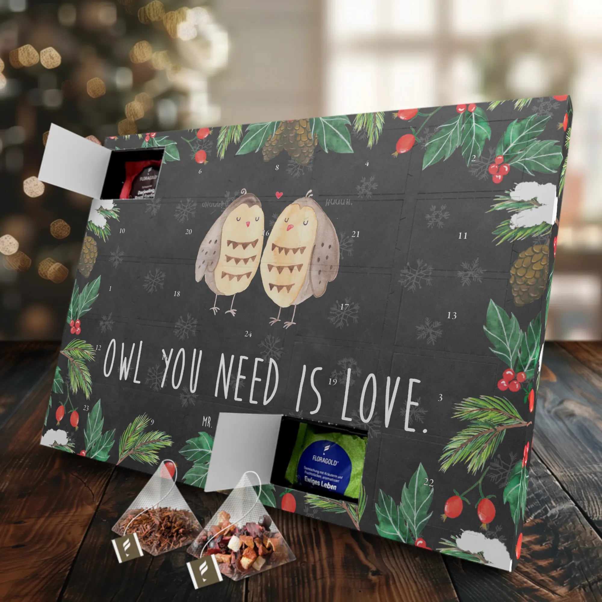 Tee Adventskalender Eulen Liebe - Kreidetafel