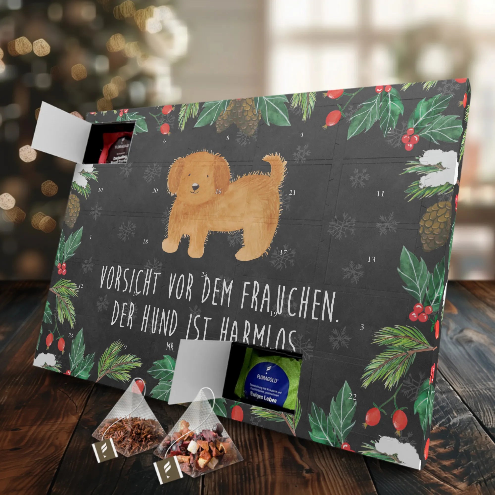 Der Tee Adventskalender "Hund flauschig" von Mr. & Mrs. Panda ist das perfekte Geschenk für alle Hundeliebhaber und Hundebesitzer! Mit diesem wundervollen Adventskalender kannst Du die Vorweihnachtszeit besonders genießen und gleichzeitig Deine Liebe zu Hunden feiern.