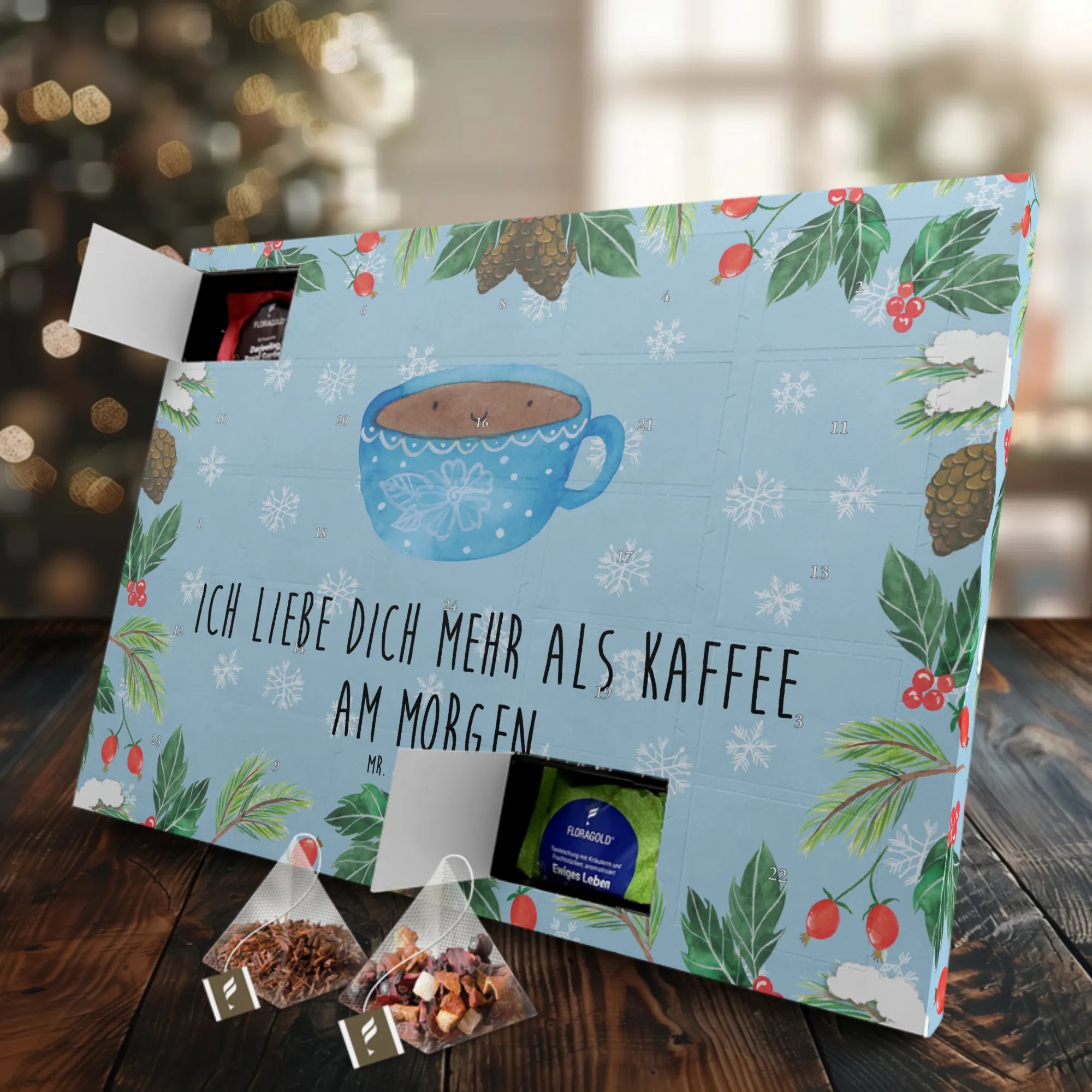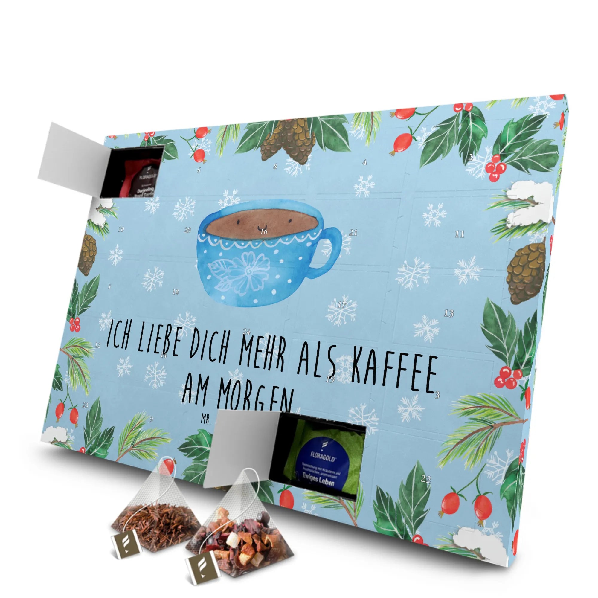 Der Tee Adventskalender Kaffee Tasse aus der Small World Kollektion von Mr. & Mrs. Panda ist das perfekte Geschenk für alle Teeliebhaber und Kaffeefans! Mit seinem liebevollen Motiv einer fröhlichen Kaffeetasse, die glücklich mit köstlichem Kaffee gefüllt ist, bringt dieser Adventskalender nicht nur Freude, sondern auch Genuss in die Vorweihnachtszeit.