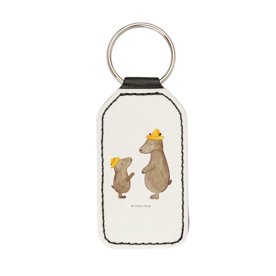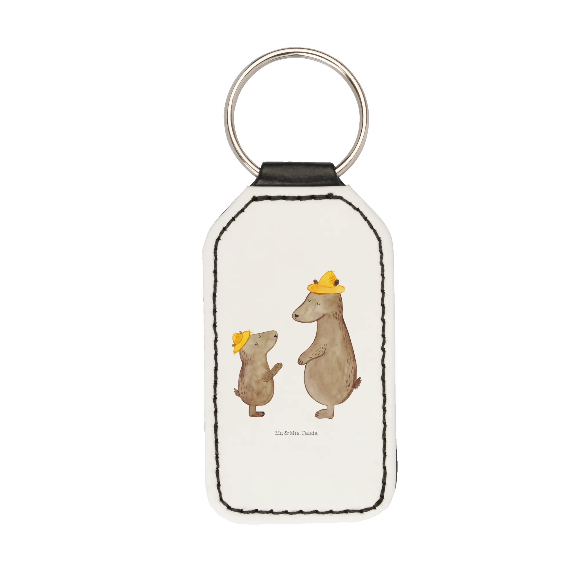 Rechteckig Schlüsselanhänger Bären mit Hut - Weiß