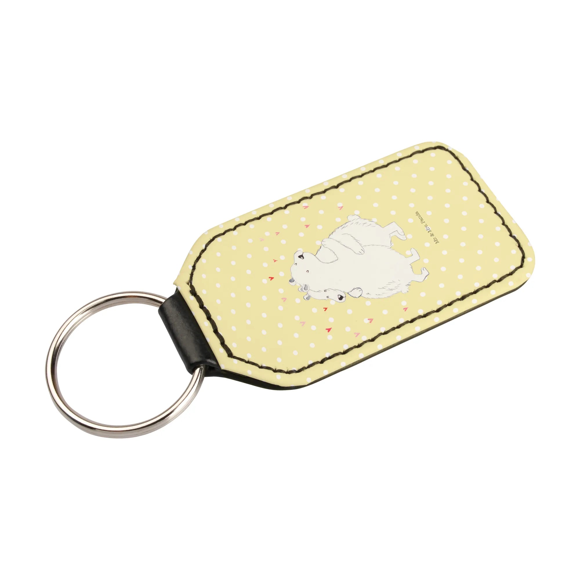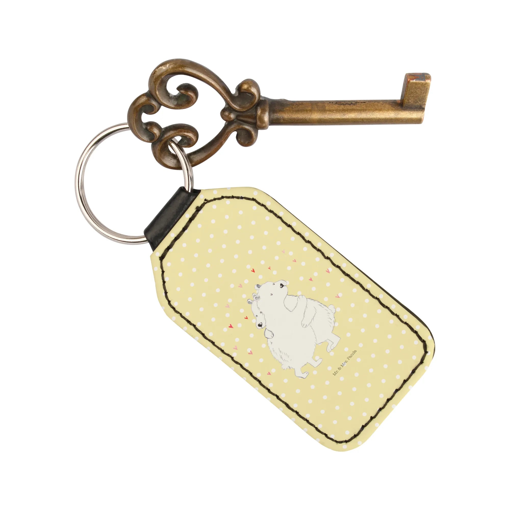 Rechteckig Schlüsselanhänger Eisbär Umarmen - Weiß