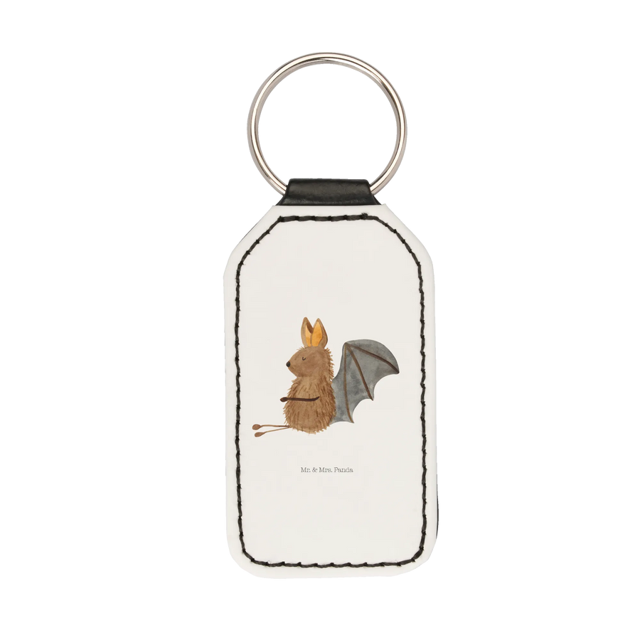 Rechteckig Schlüsselanhänger Fledermaus Sitzen - Weiß