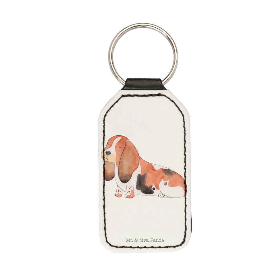 Rechteckig Schlüsselanhänger Hund Basset Hound - Weiß
