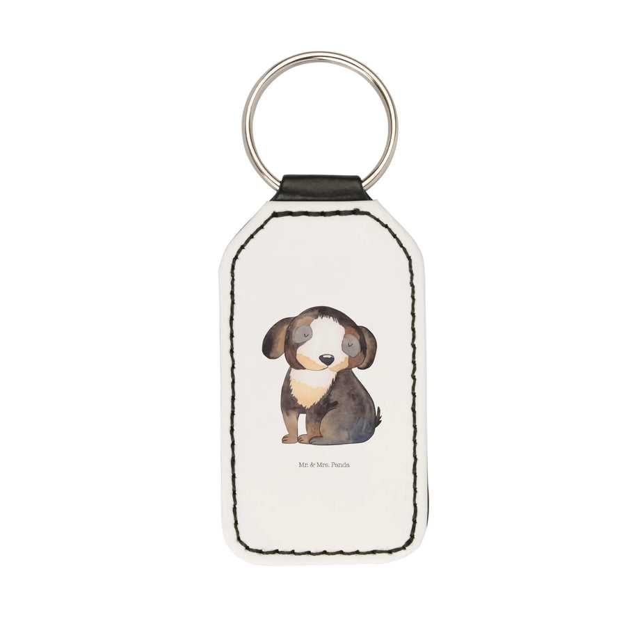 Rechteckig Schlüsselanhänger Hund Entspannen - Weiß