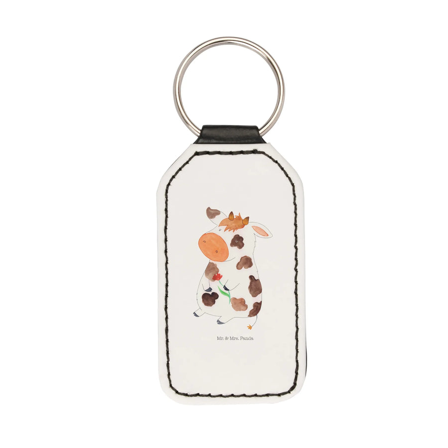 Der Rechteckig Schlüsselanhänger mit dem niedlichen Kuh-Motiv aus der Bauernhof-Kollektion von Mr. & Mrs. Panda ist das perfekte Geschenk für alle Tierfreunde und Landliebhaber. Diese tolle Tasche, gefertigt aus edlem Premium Kunstleder, bringt dir nicht nur Freude, sondern auch einen Hauch von Bauernhof-Magie in deinen Alltag. Mit einem liebevoll gestalteten Design einer verträumten Kuh, die stolz mit einer Blume in der Hand posiert, ist dieser Schlüsselanhänger ein echter Blickfang.