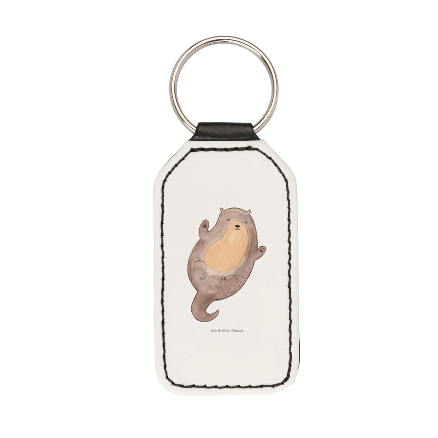 Rechteckig Schlüsselanhänger Otter Umarmen - ohne Spruch - Weiß