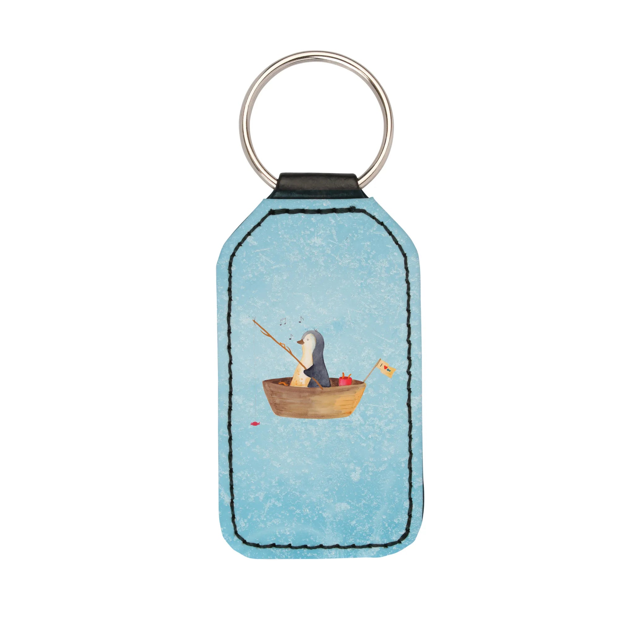 Rechteckig Schlüsselanhänger Pinguin Angelboot - Weiß