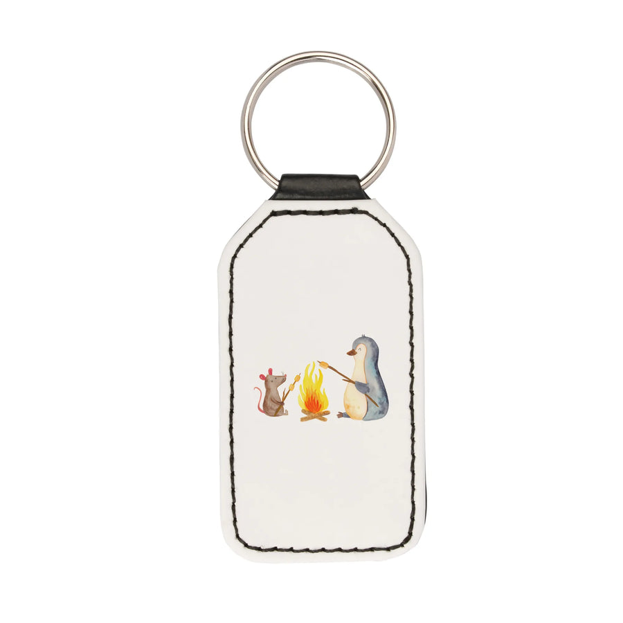 Rechteckig Schlüsselanhänger Pinguin Lagerfeuer - Weiß
