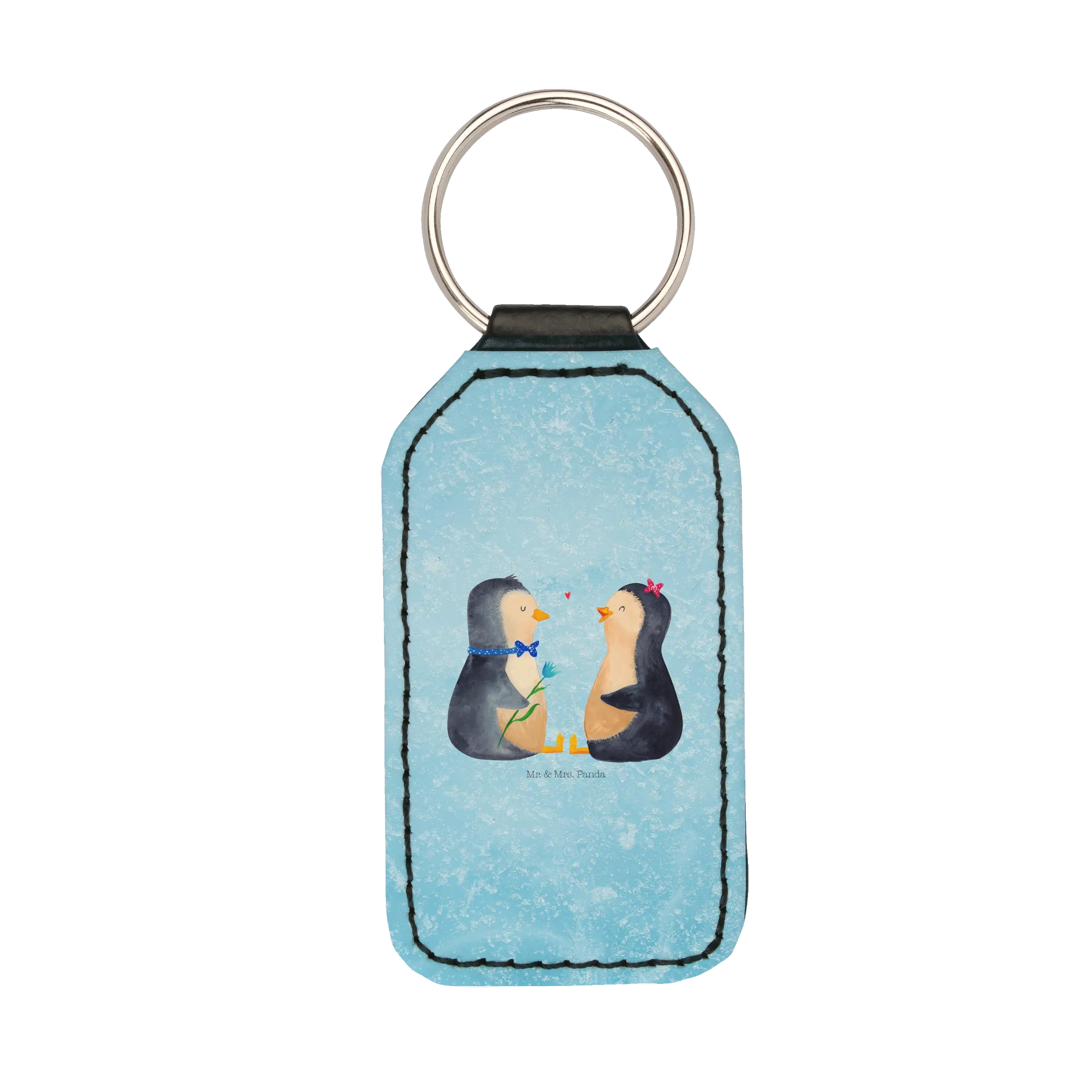 Rechteckig Schlüsselanhänger Pinguin Pärchen - Eisblau