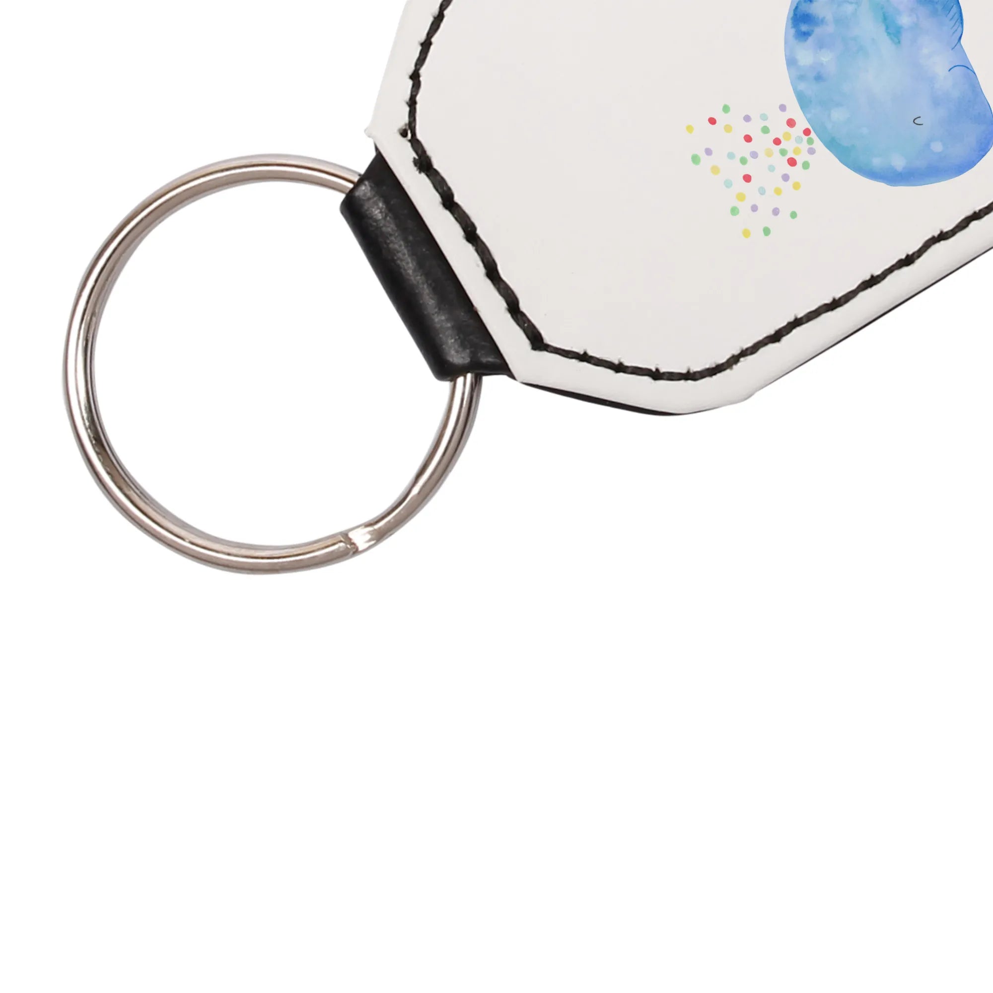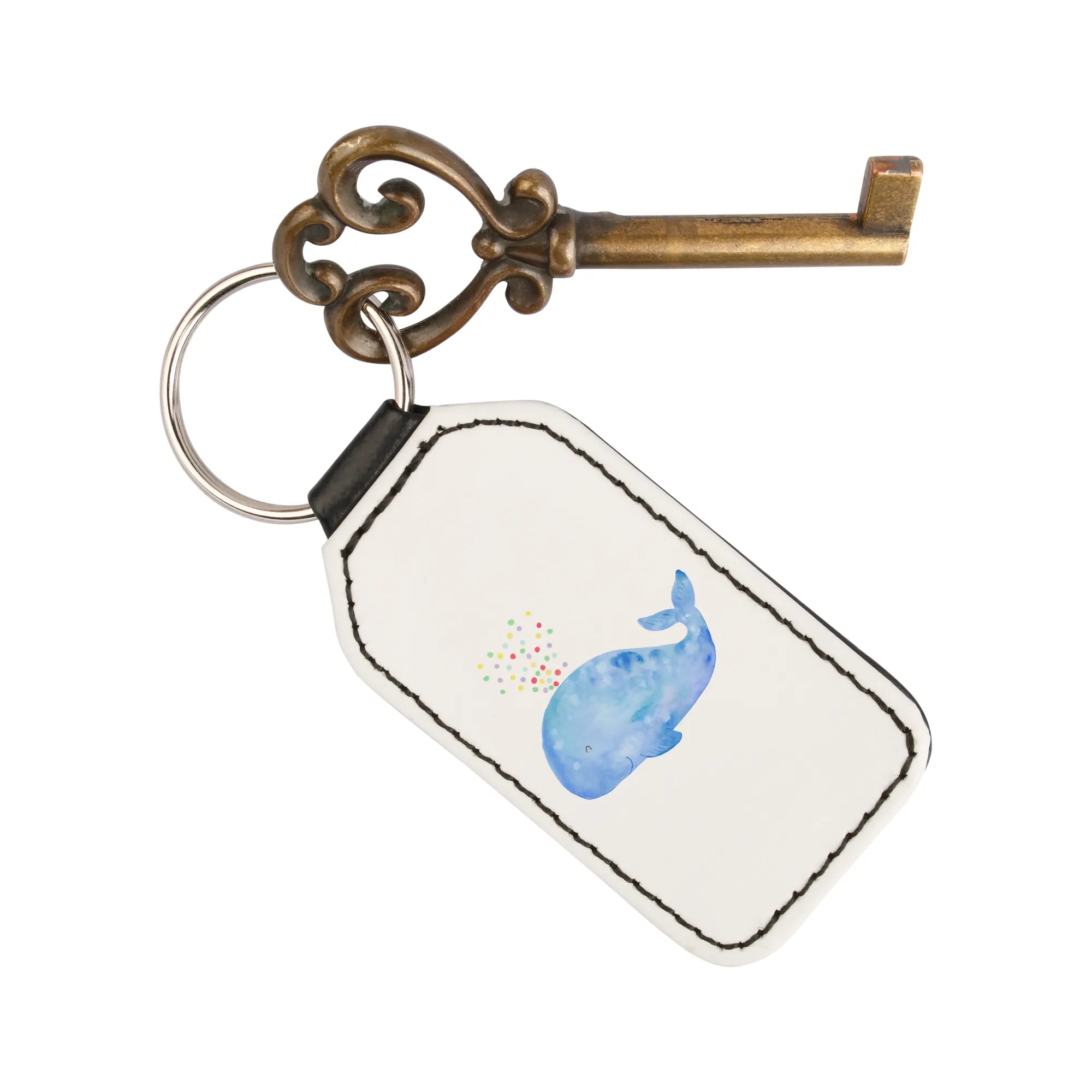 Bist du auf der Suche nach dem perfekten Geschenk, das Freude und Motivation vereint? Dann ist der rechteckige Schlüsselanhänger mit dem süßen Wal und dem Konfetti-Motiv aus der Meerestiere-Kollektion von Mr. & Mrs. Panda genau das Richtige für dich! Dieses charmante Accessoire ist nicht nur super praktisch, sondern auch ein echter Hingucker. Der Schlüsselanhänger ist aus hochwertigem Premium Kunstleder gefertigt und bietet in seiner Maße von 70 mm x 40 mm genügend Platz für deine Schlüssel oder als Taschenanhänger.