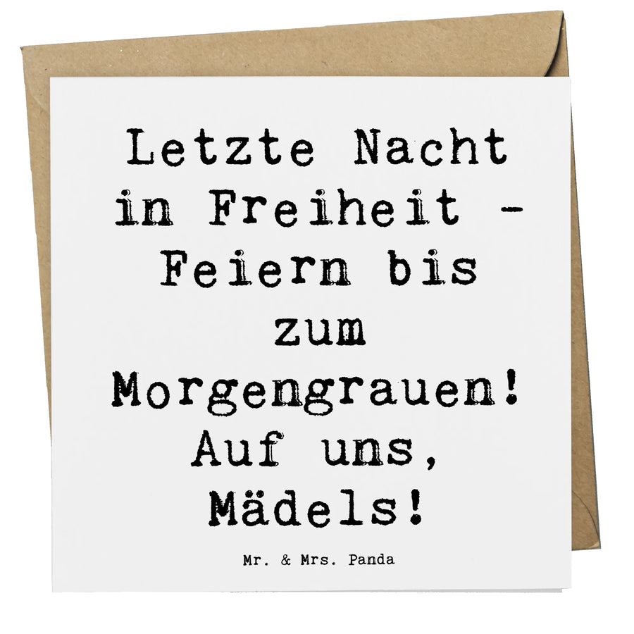 Finde weitere einzigartige Geschenke und Karten in unserer Hochzeit Kollektion bei Mr. & Mrs. Panda und entdecke, wie viele verschiedene Möglichkeiten es gibt, um Liebe und Freundschaft gebührend zu feiern! Diese Deluxe Karte ist nicht nur eine tolle Ergänzung für deinen eigenen Junggesellinnenabschied, sondern auch perfekt geeignet als kleines Geschenk für einen Abholer bei dem Junggesellinnenabend. Verschenke Emotionen und Freude - lass uns die Braut 'feiern bis zum Morgengrauen'!