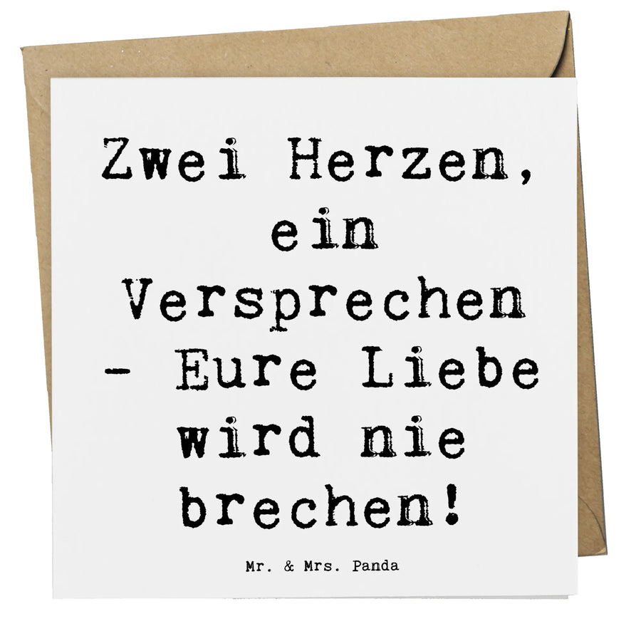 Wenn du auf der Suche nach der perfekten Karte zur standesamtlichen Trauung bist, dann ist die Deluxe Karte von Mr. & Mrs. Panda genau das Richtige für dich! Diese wunderschöne und besonders hochwertige quadratische Karte präsentiert sich in einem eleganten Design und strahlt Romantik und Liebe aus. Mit dem zauberhaften Spruch "Zwei Herzen, ein Versprechen - Eure Liebe wird nie brechen!" wird jeder Glückwunsch zur Hochzeit zu einem unvergesslichen Moment. Diese exquisite Karte ist nicht nur der perfekte Begleiter für deine Einladungen, sondern auch ein wunderbares Geschenk für frisch vermählte Paare.
