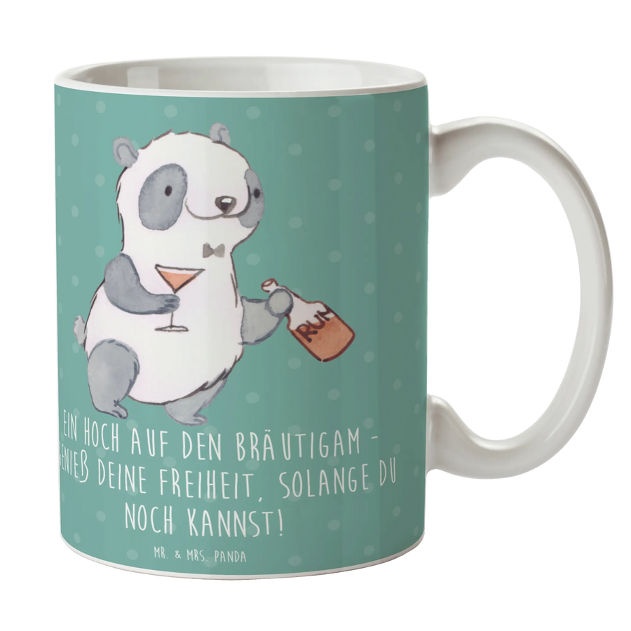 Die wunderschöne Tasse zum Junggesellenabschied von Mr. & Mrs. Panda ist das perfekte Geschenk für den Bräutigam und seine Freunde. Mit dem liebevollen Motiv und dem Spruch 'Ein Hoch auf den Bräutigam - genieß deine Freiheit, solange du noch kannst!' zaubert sie jedem ein Lächeln ins Gesicht. Egal ob bei einer letzten Sause vor der Hochzeit oder als Erinnerungsstück an den unvergesslichen Junggesellenabschied – diese Tasse wird zum absoluten Highlight!