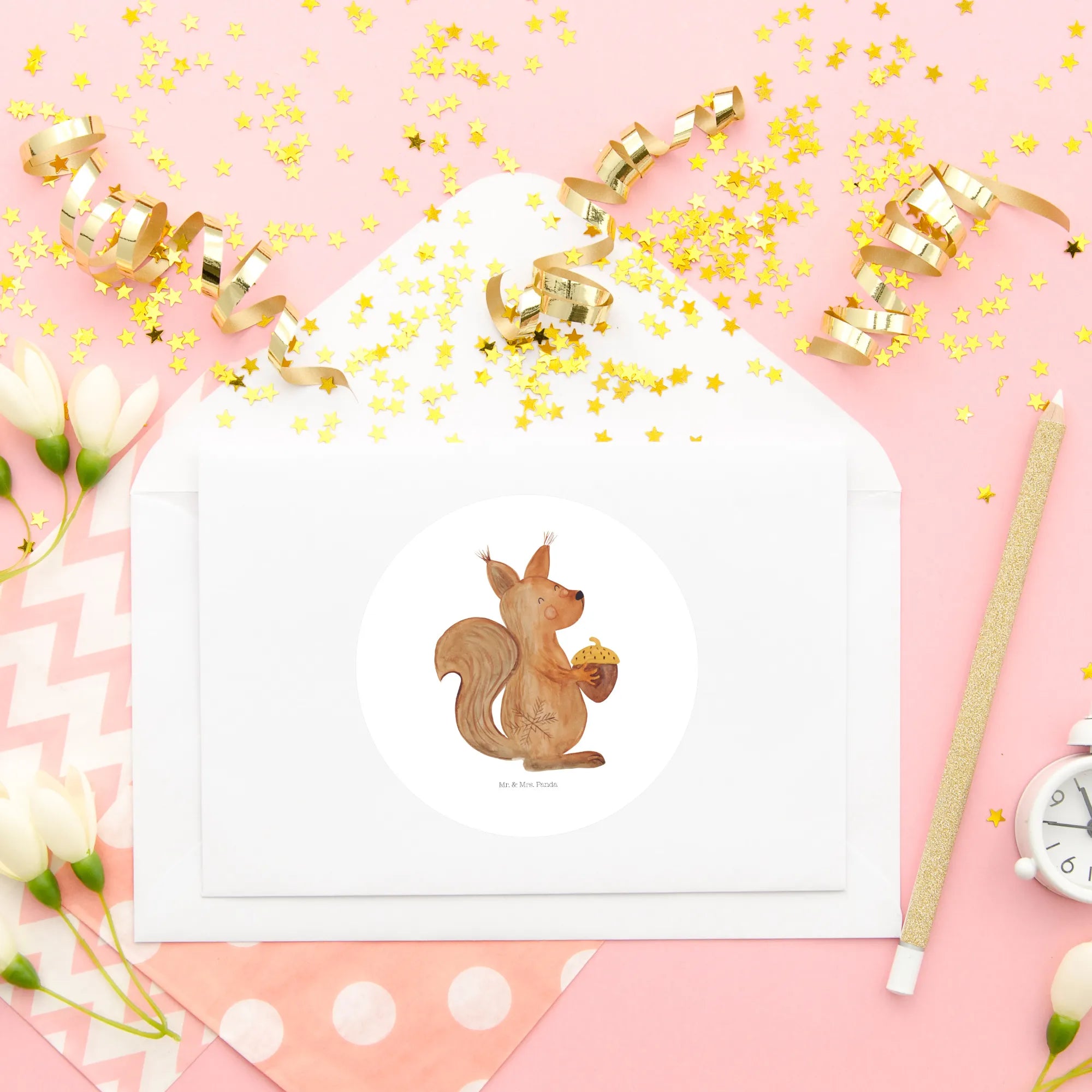 Sticker Eichhörnchen Weihnachtszeit - 80mm Rund Aufkleber - mit Spruch - Weiß