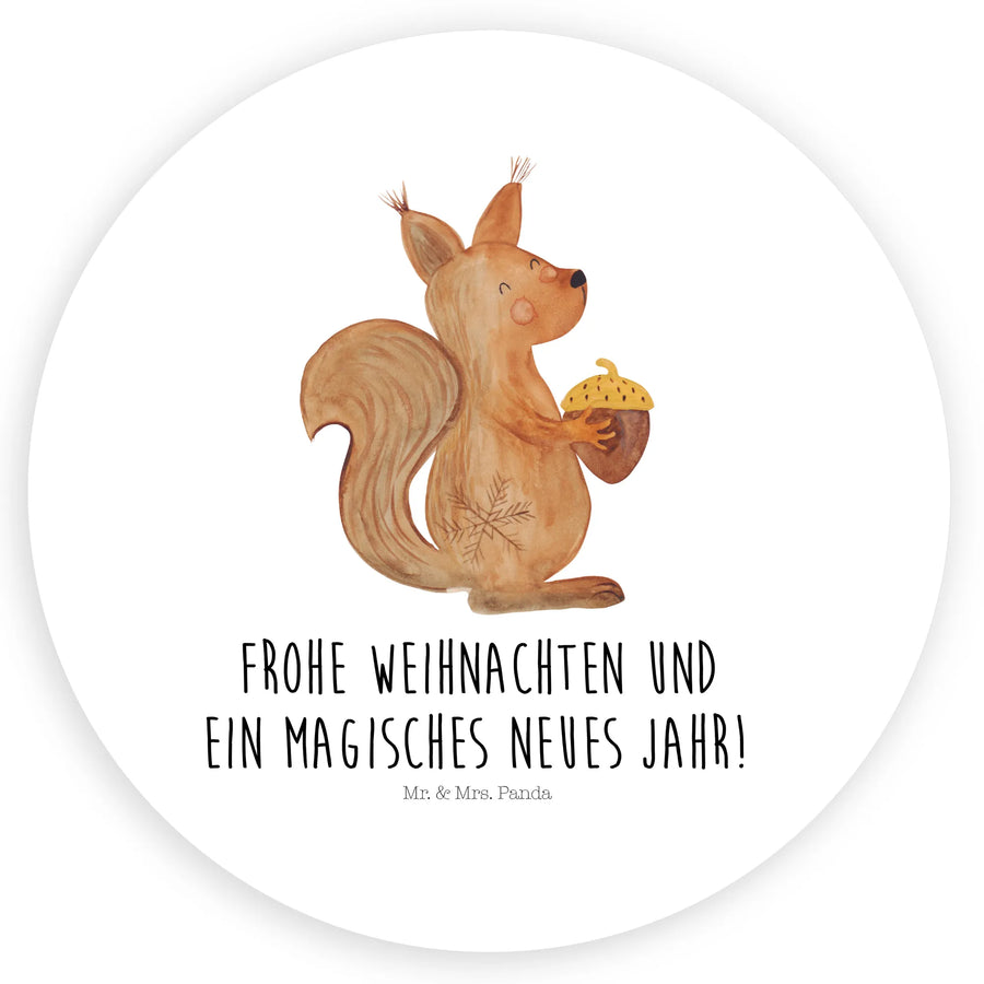 Rund Aufkleber Eichhörnchen Weihnachtszeit - 80mm Rund Aufkleber - mit Spruch - Weiß
