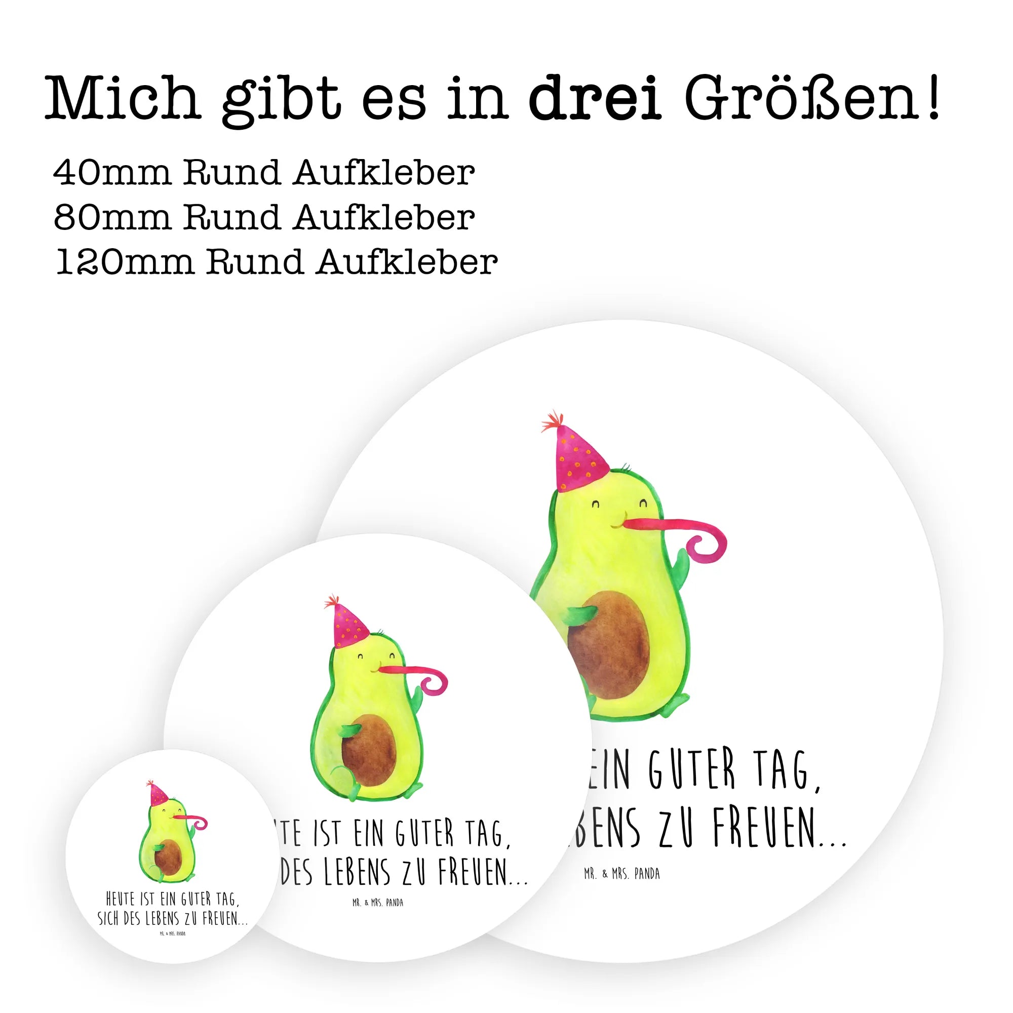 Unsere 80mm Rund Aufkleber Avocado Partyhupe sind der perfekte Begleiter für jede Feierlichkeit! Ob Geburtstag, Jubiläum oder einfach nur eine kleine Party mit Freunden – dieser Aufkleber bringt sofort gute Laune. Mit dem fröhlichen Motiv einer süßen Avocado, die in eine Partypfeife pustet und einem liebevollen Slogan "Heute ist ein guter Tag, sich des Lebens zu freuen..." zauberst du jedem ein Lächeln ins Gesicht.