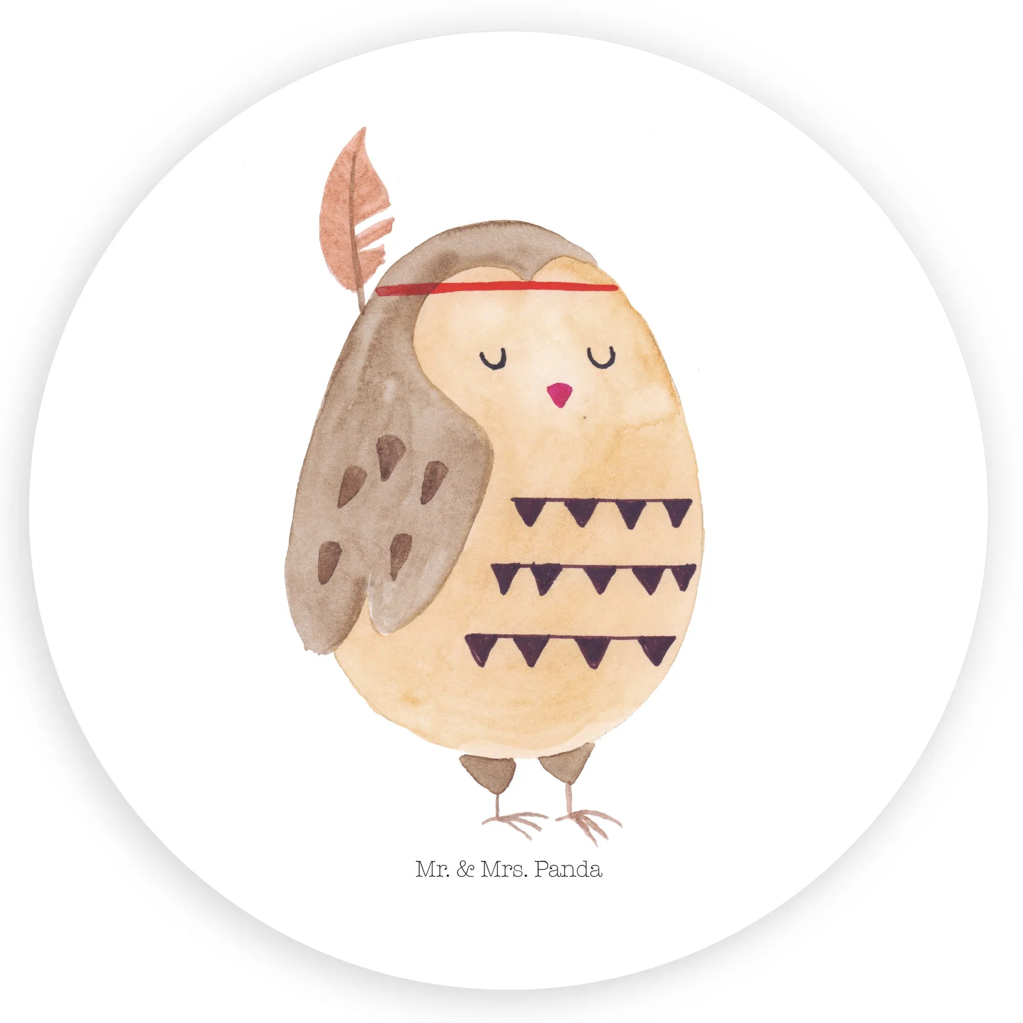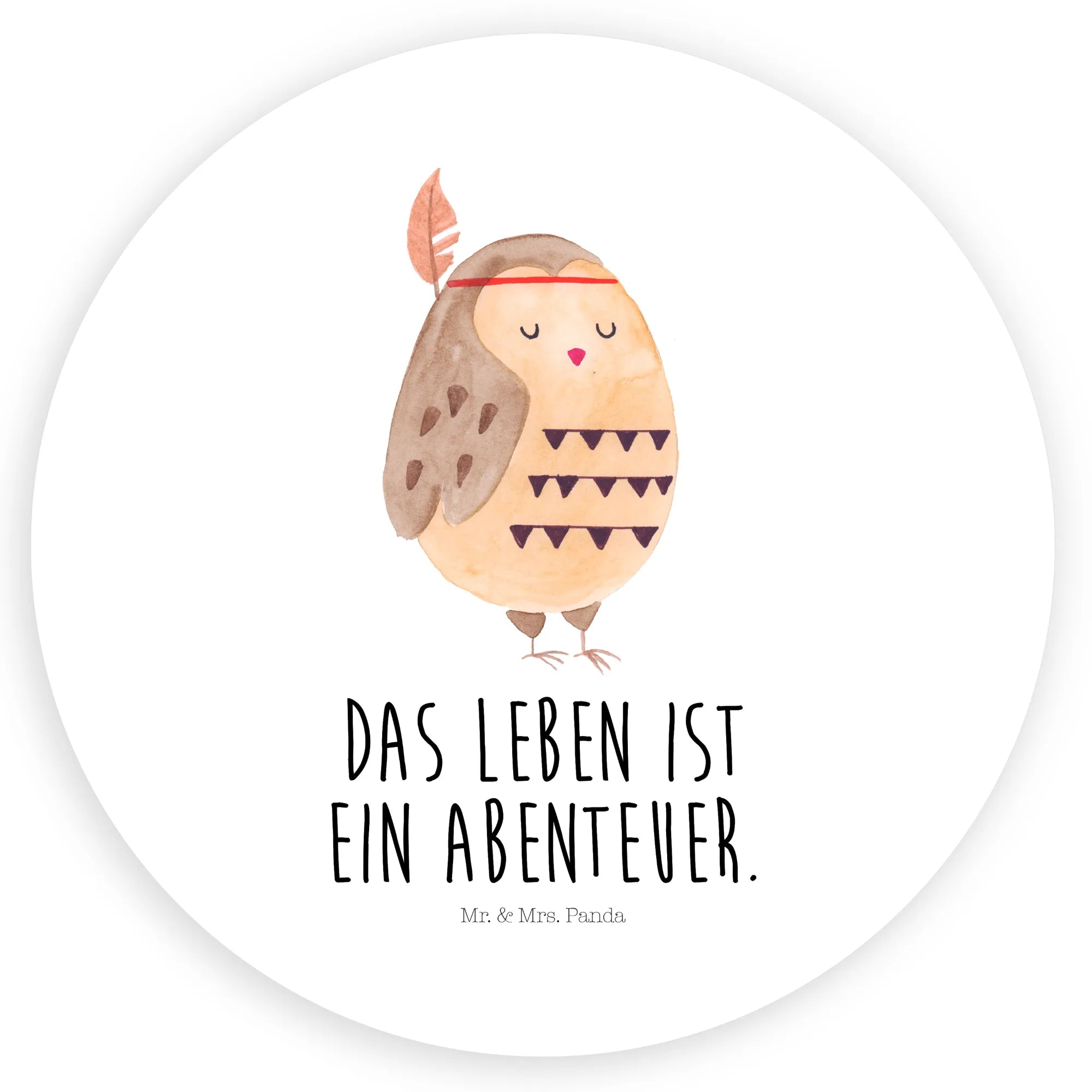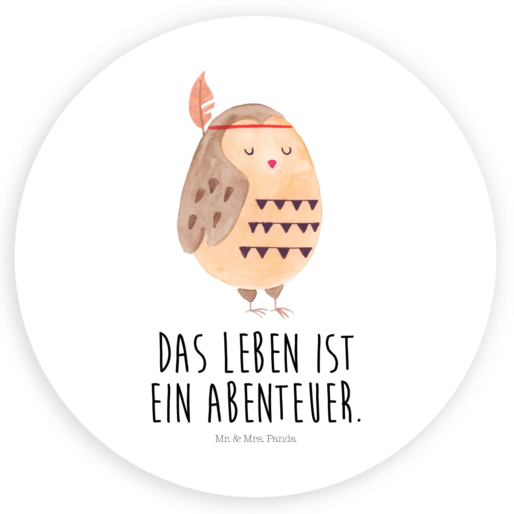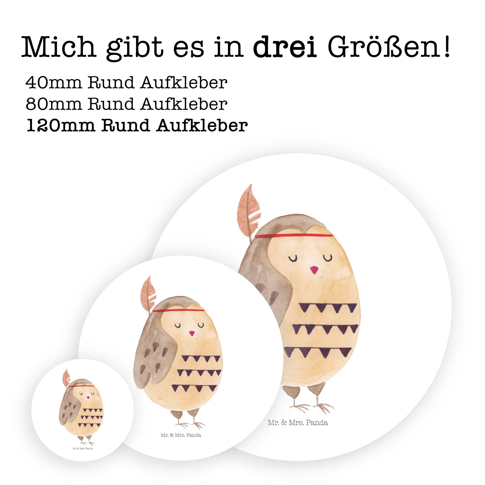 Rund Aufkleber Eule Federschmuck - 80mm Rund Aufkleber - mit Spruch - Weiß