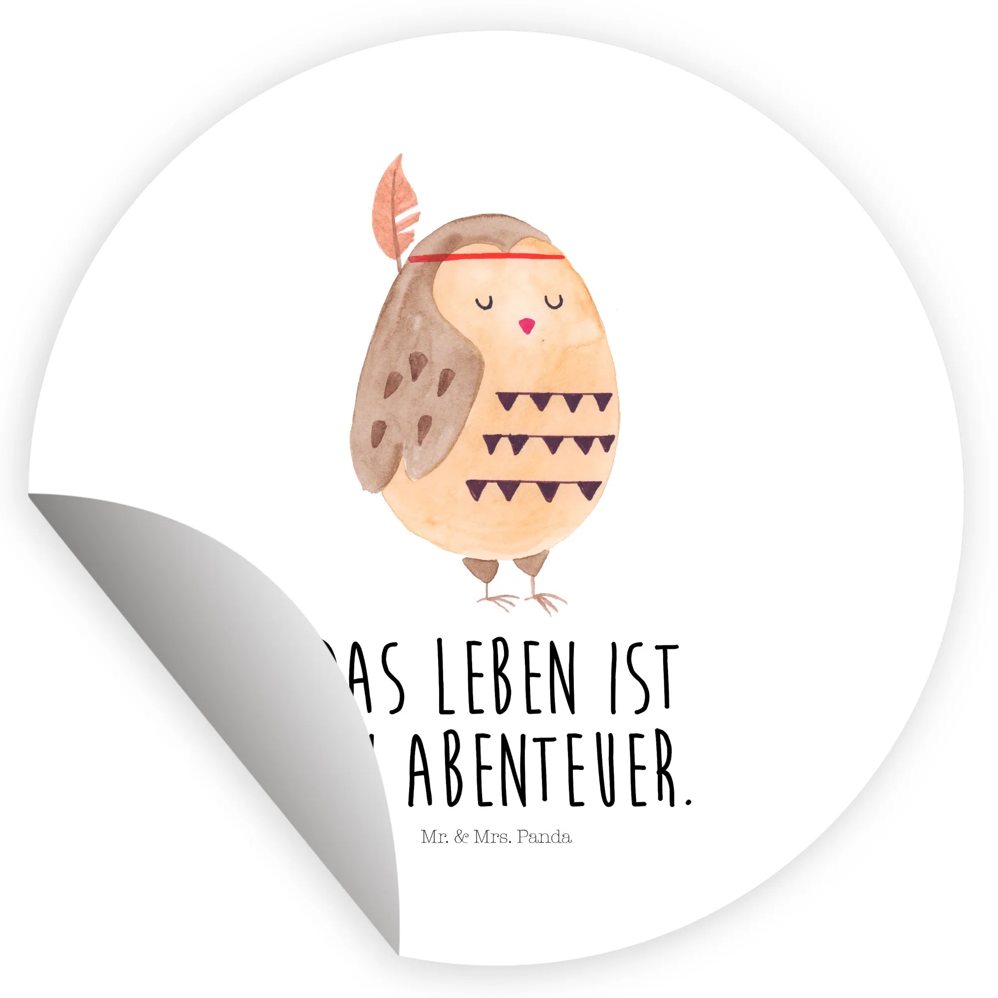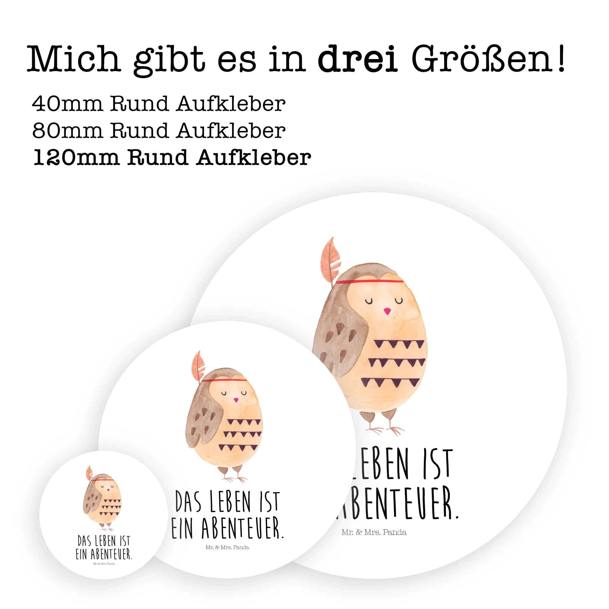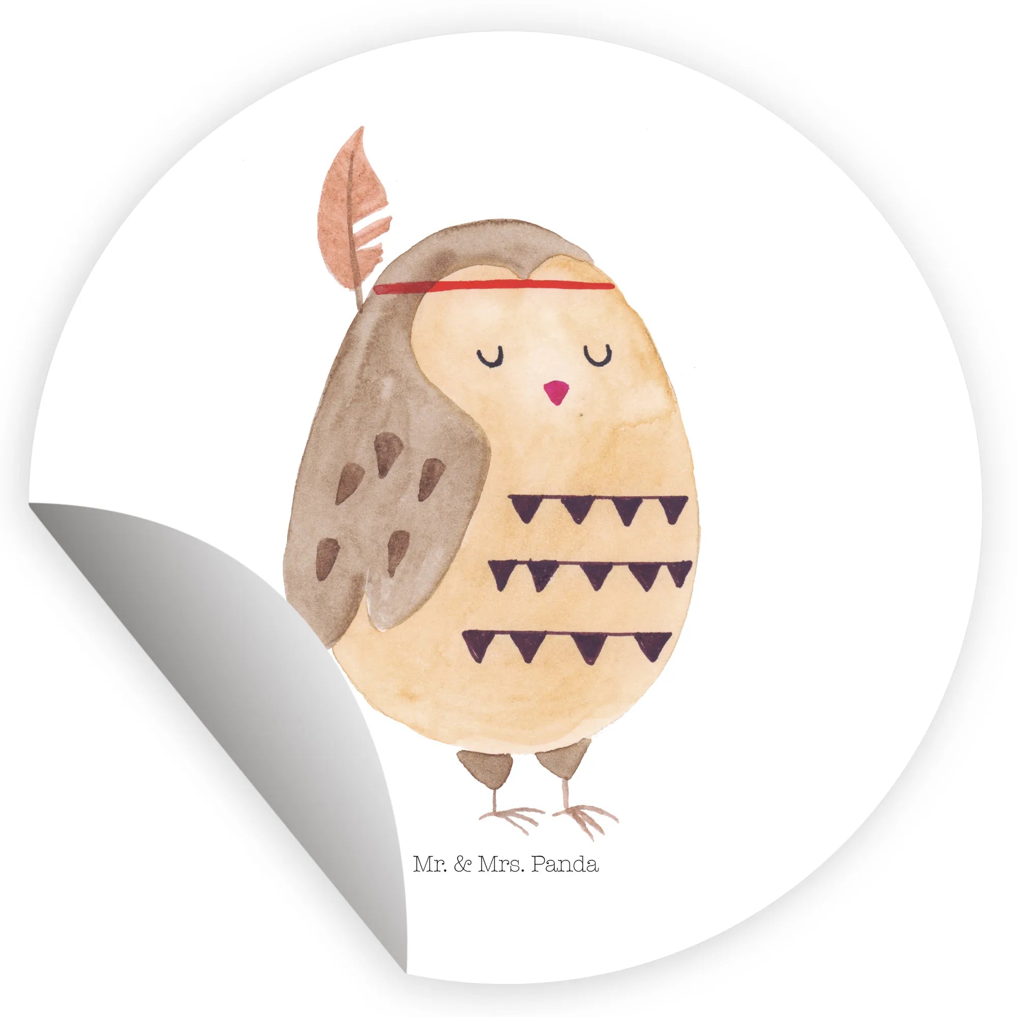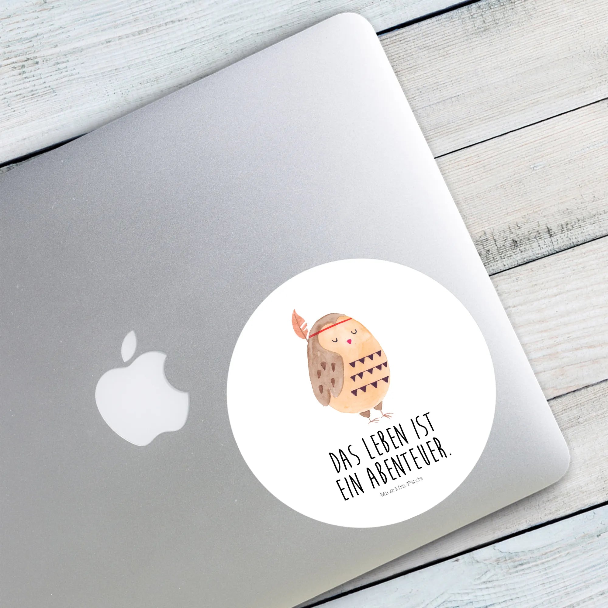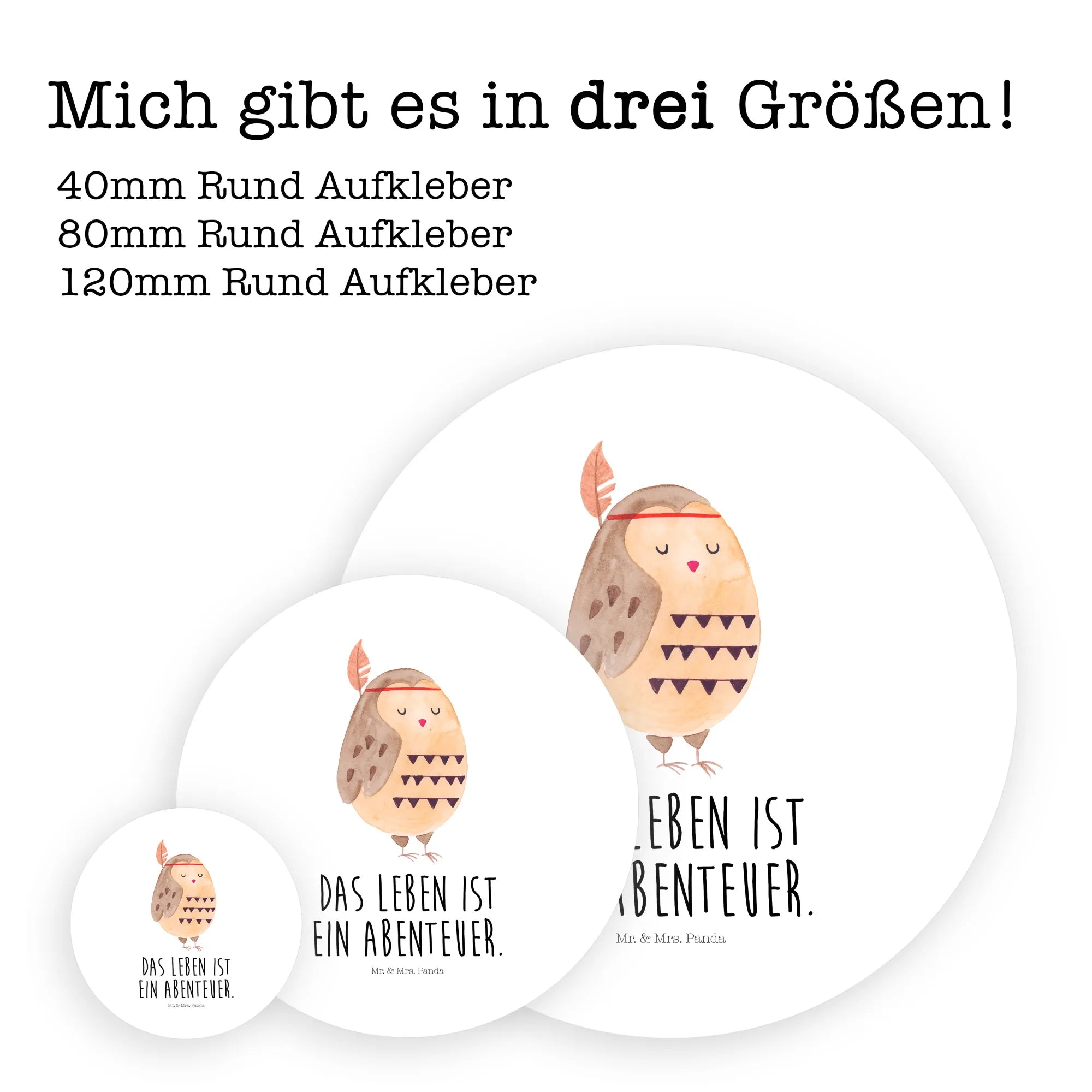 Rund Aufkleber Eule Federschmuck - 80mm Rund Aufkleber - mit Spruch - Weiß