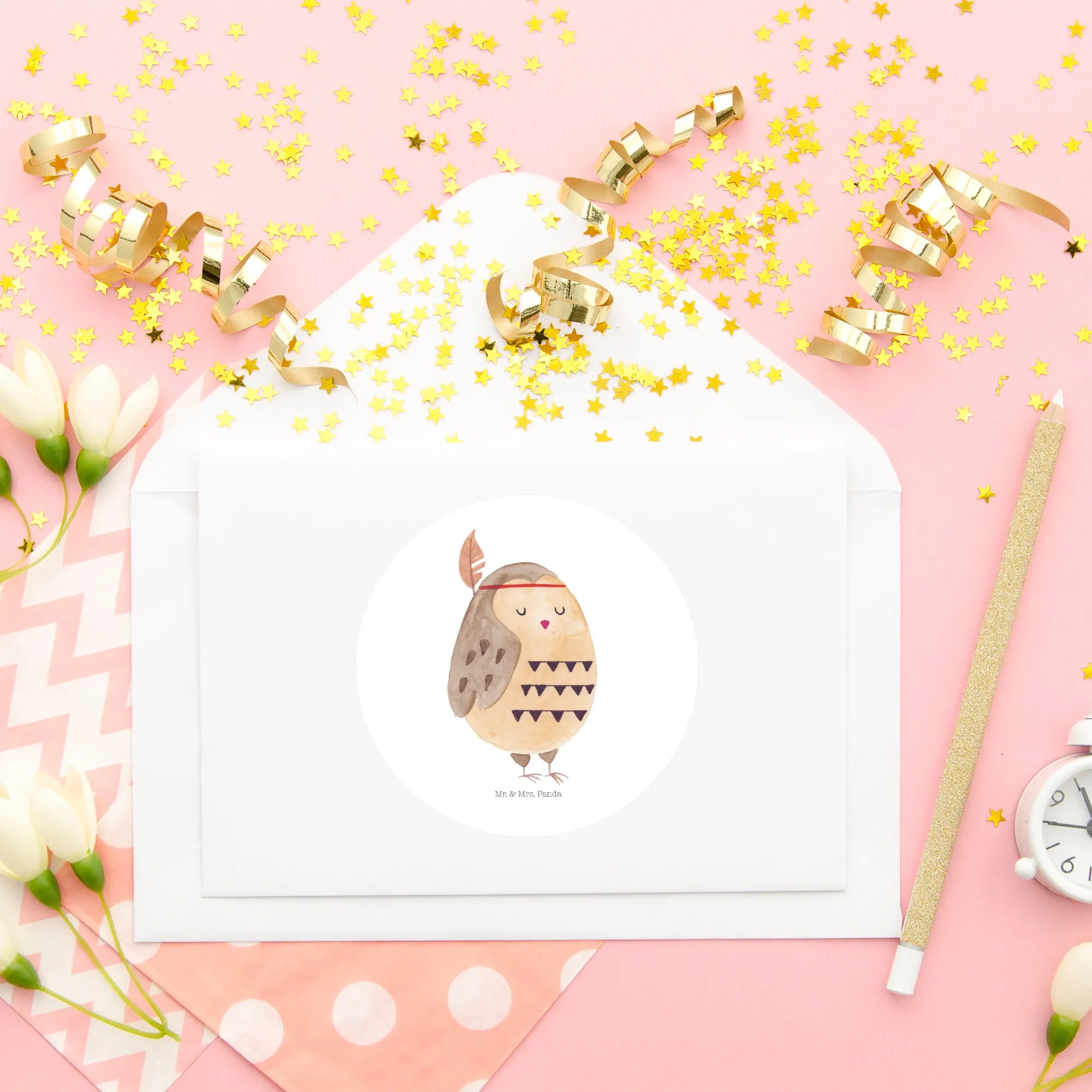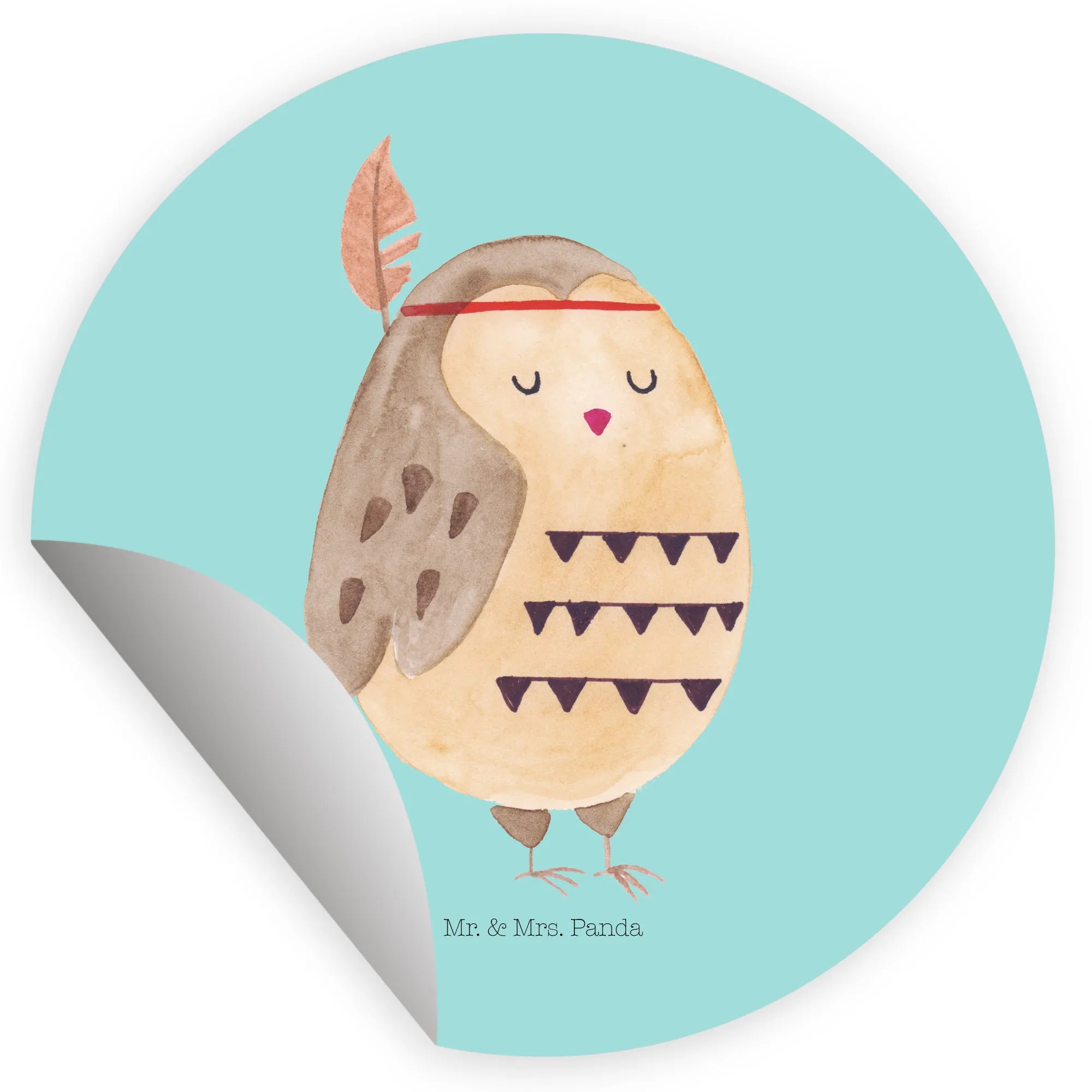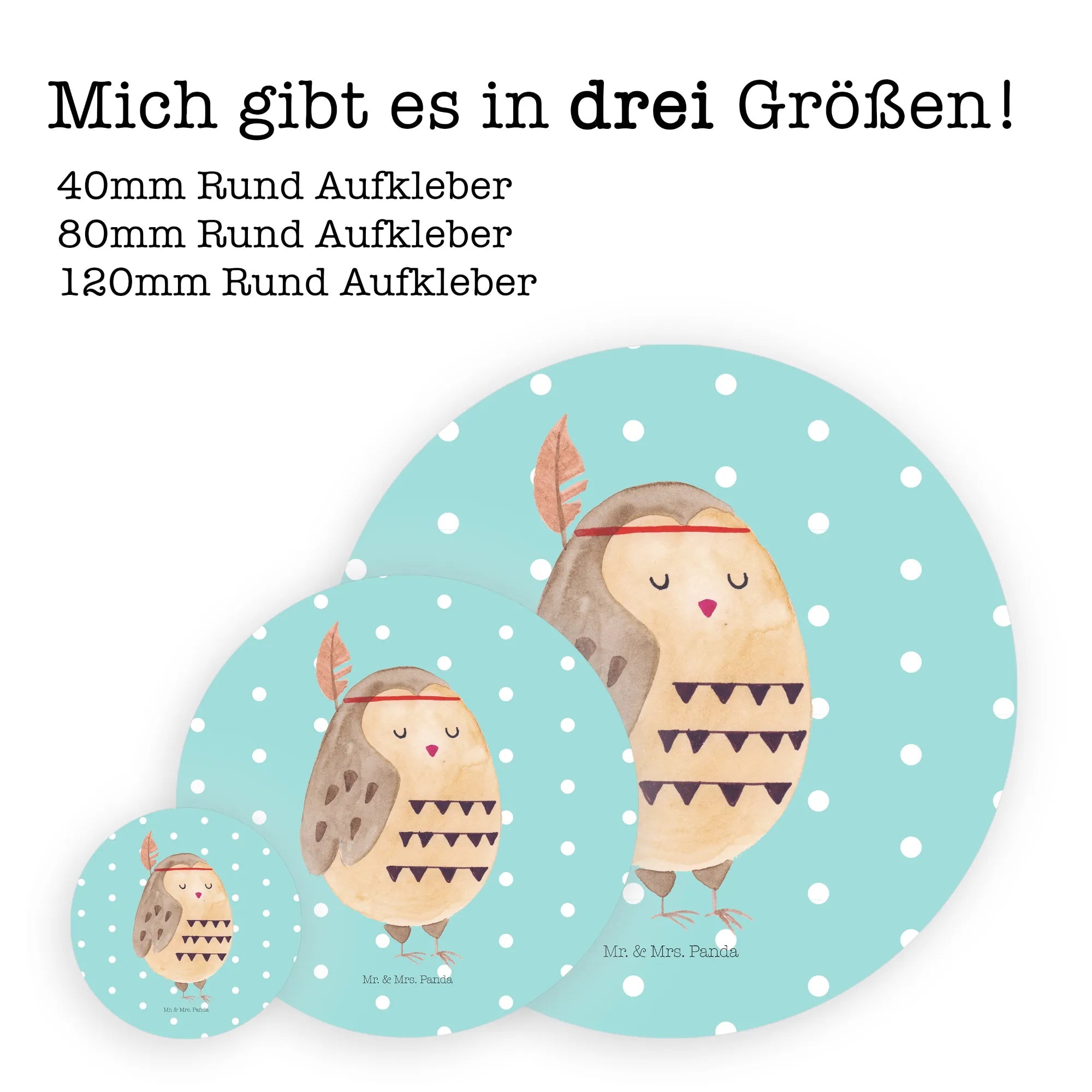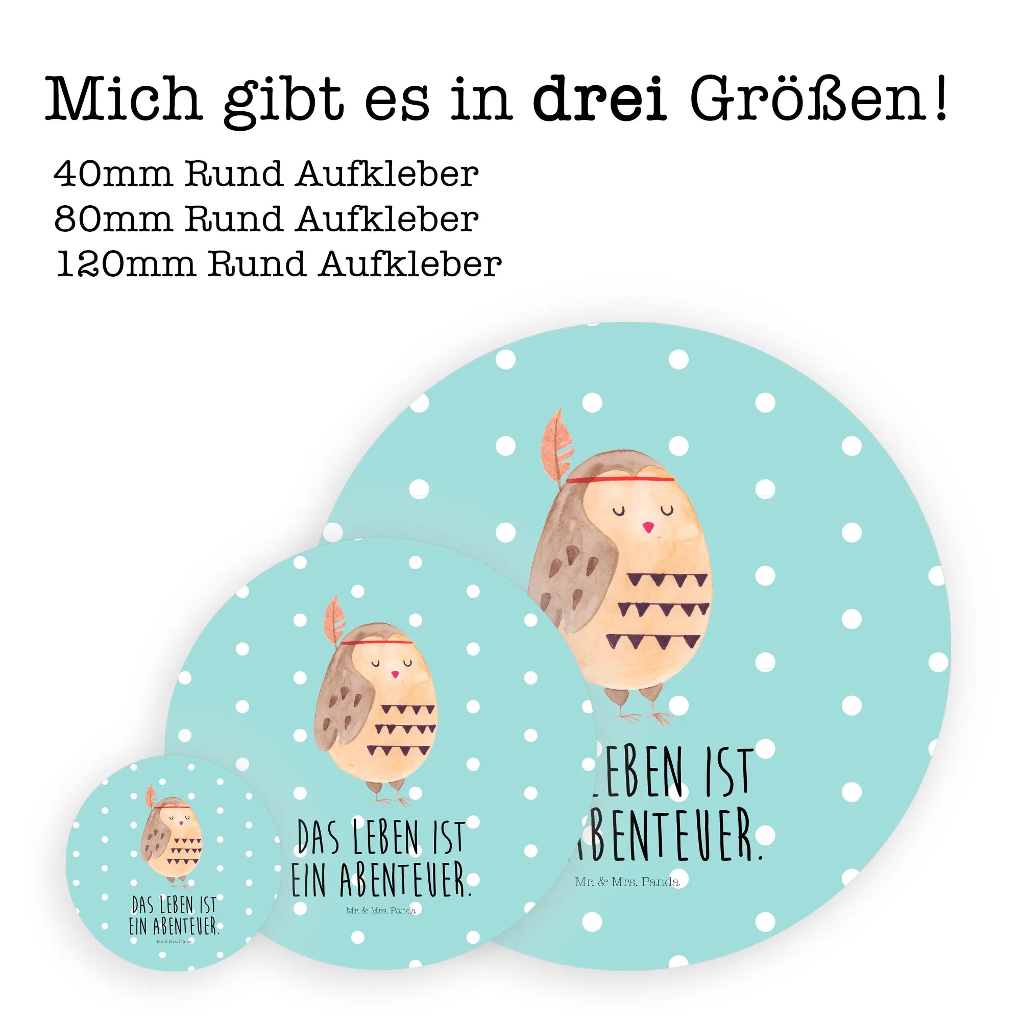 Rund Aufkleber Eule Federschmuck - 80mm Rund Aufkleber - mit Spruch - Weiß