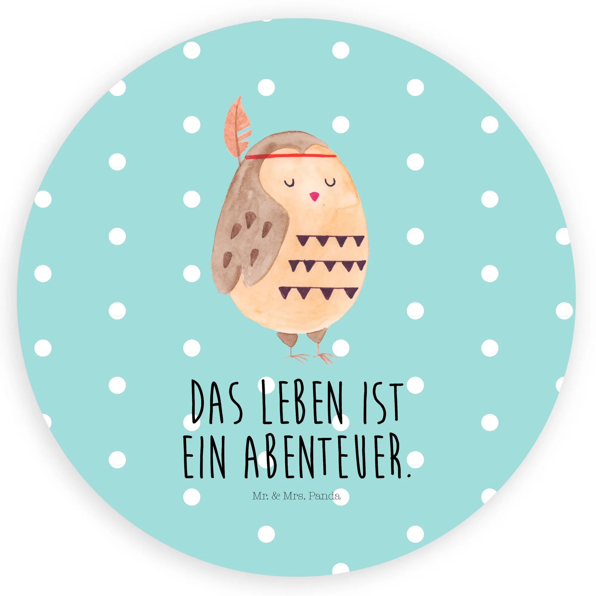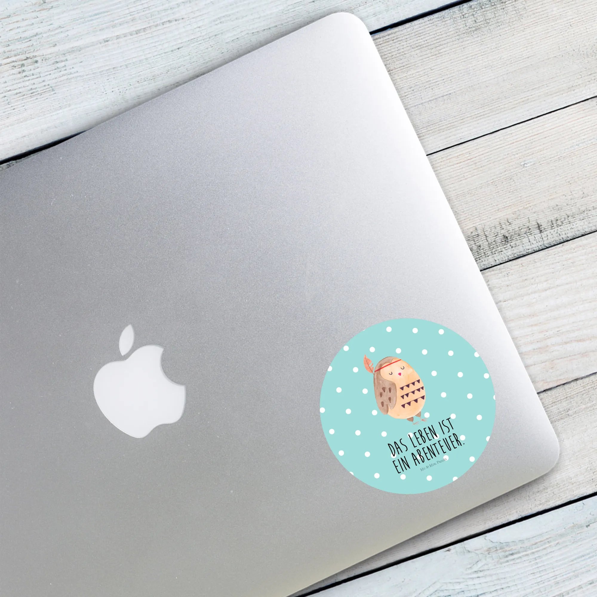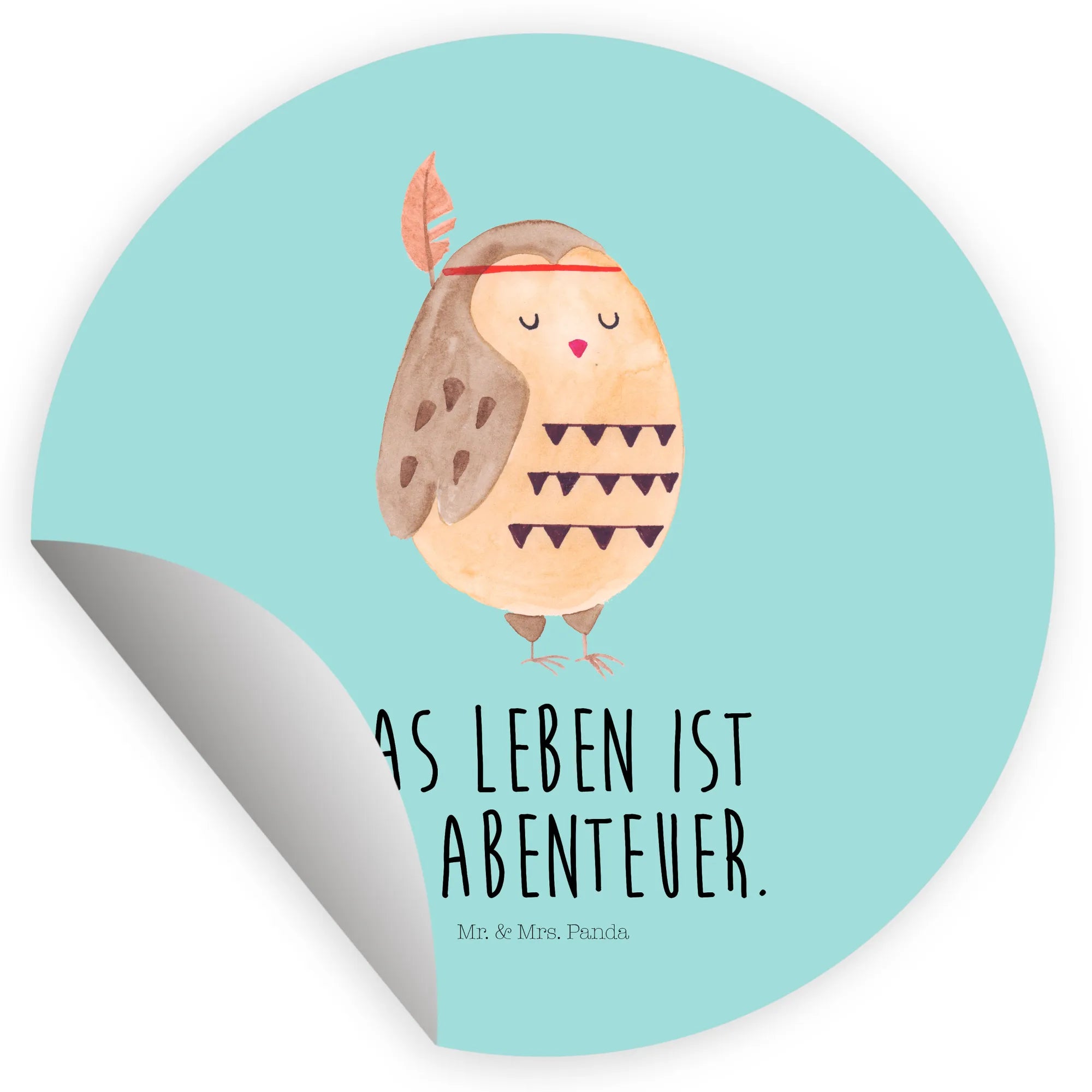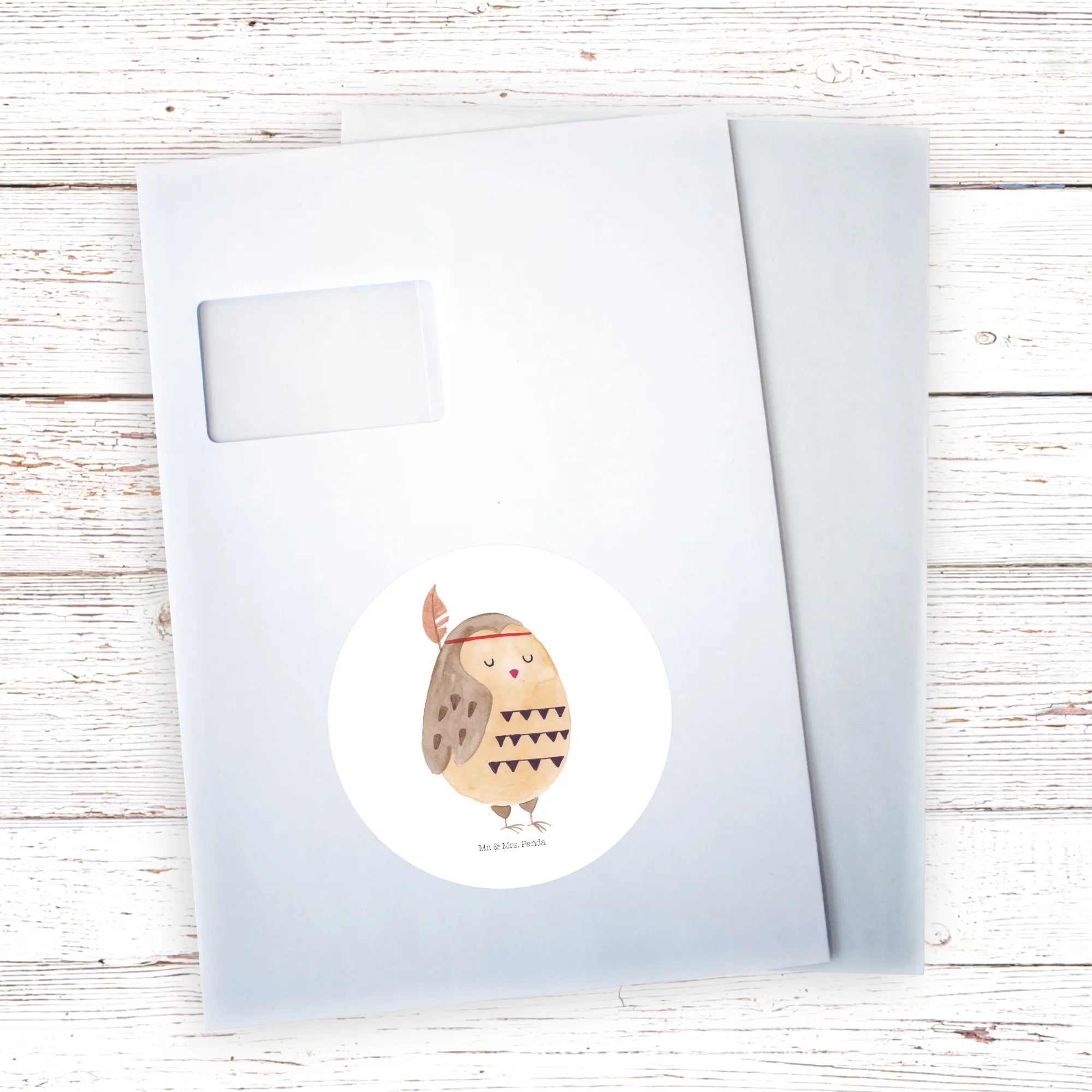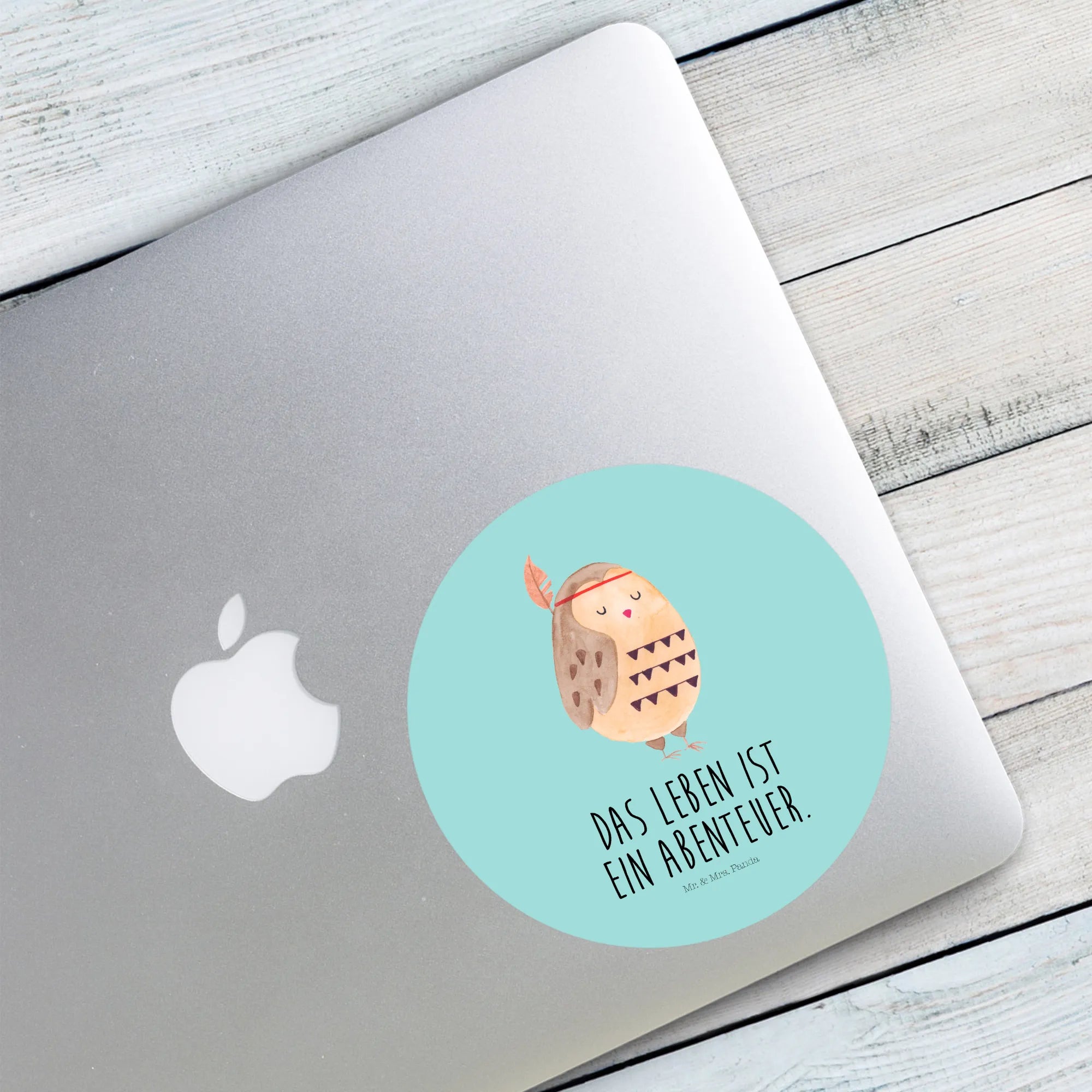 Rund Aufkleber Eule Federschmuck - 80mm Rund Aufkleber - mit Spruch - Weiß
