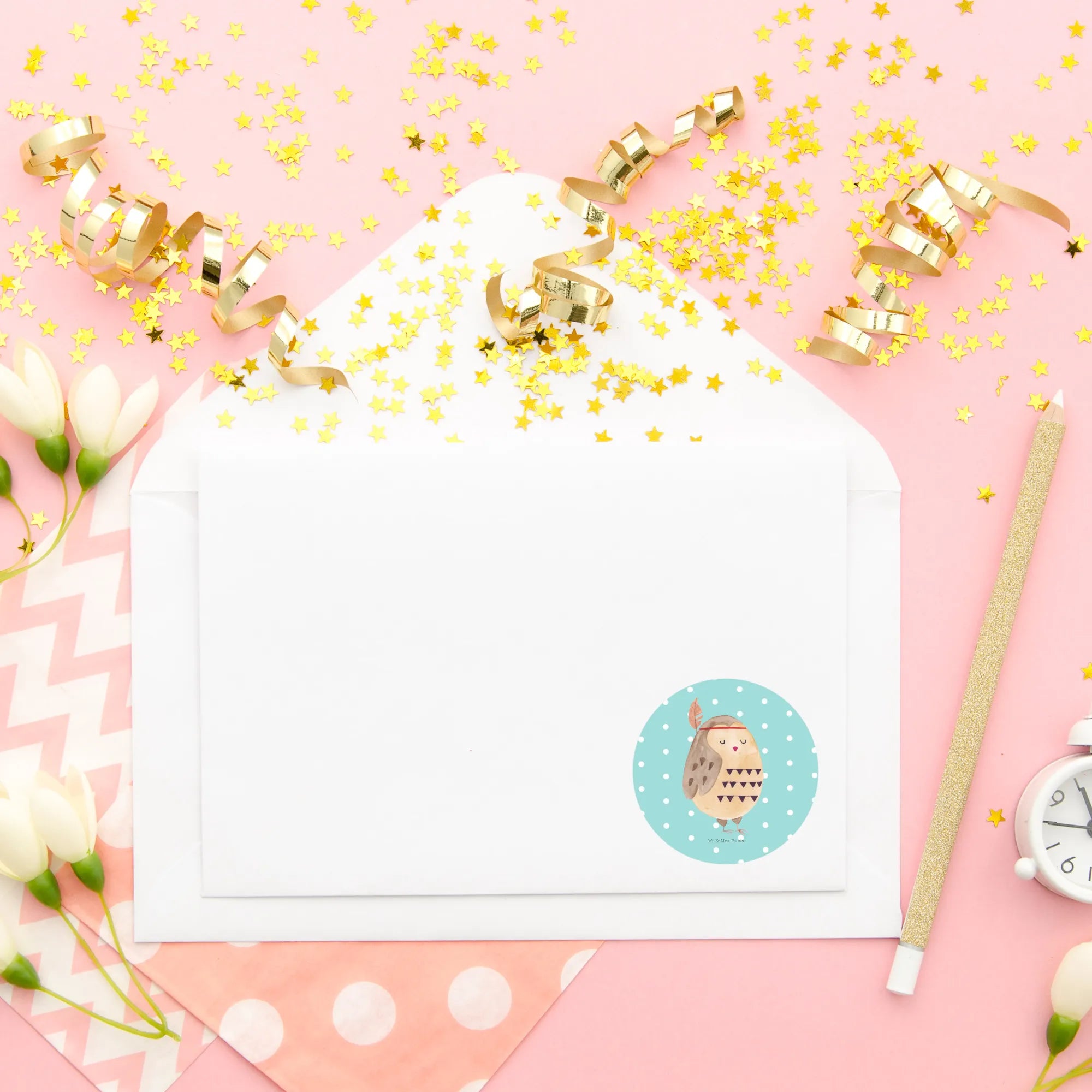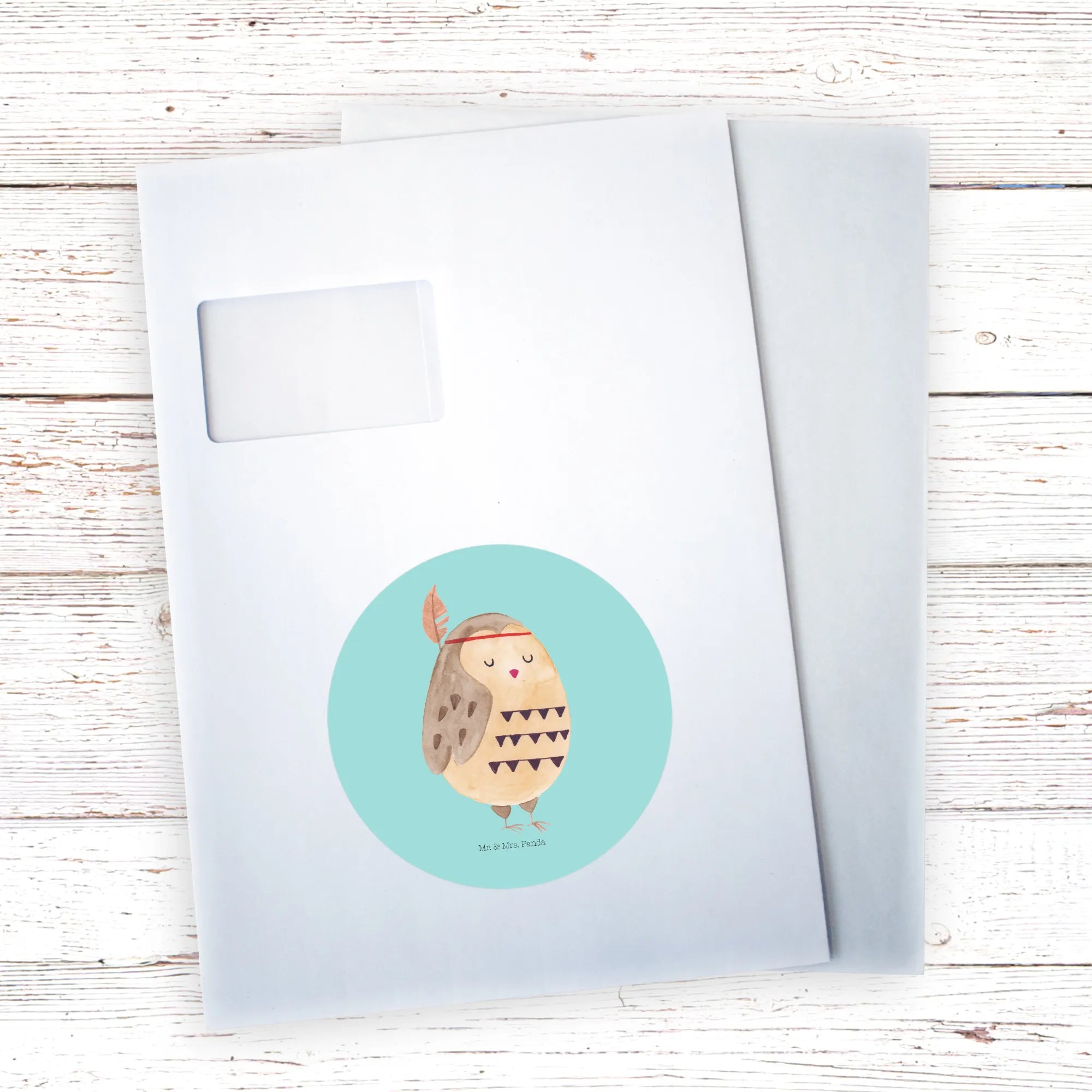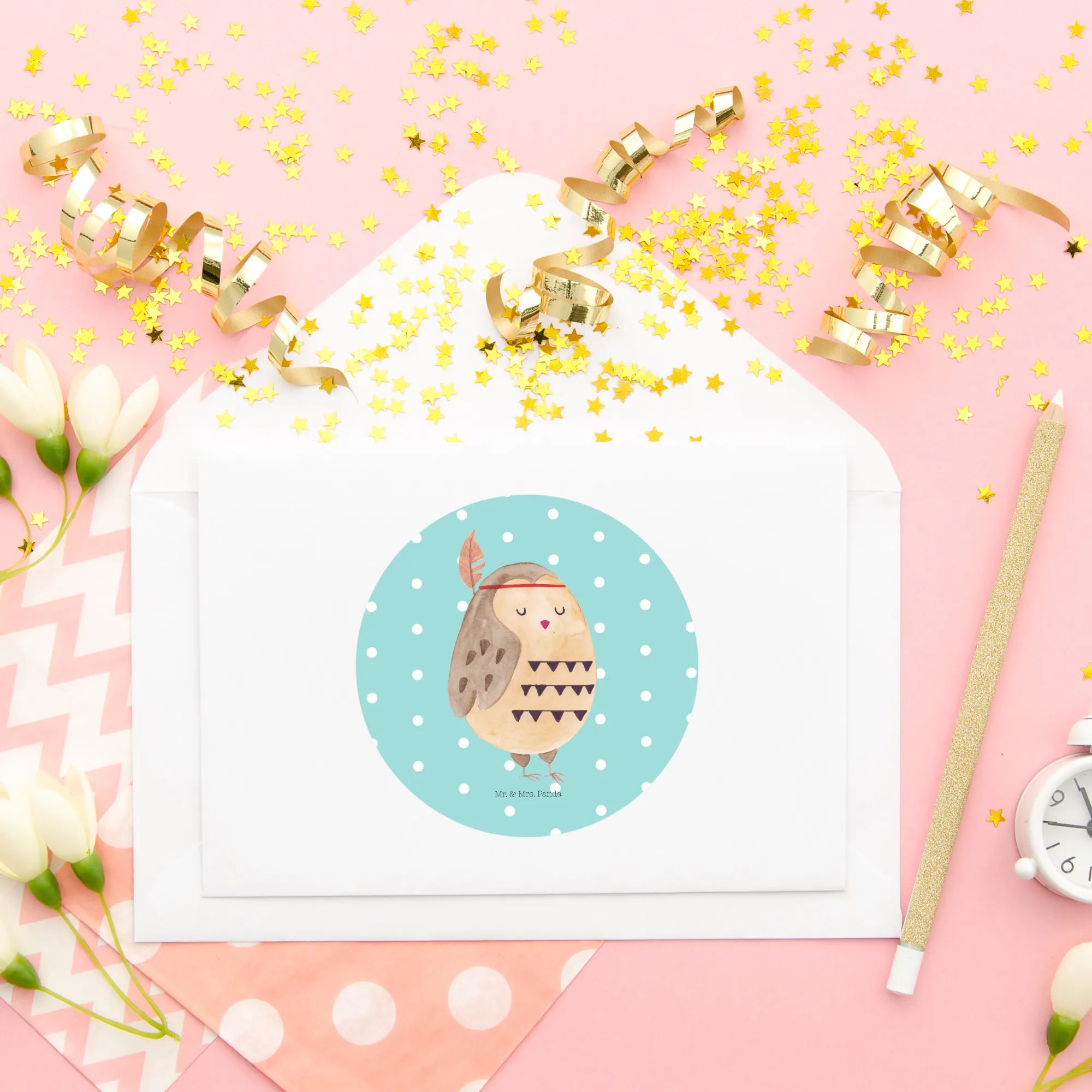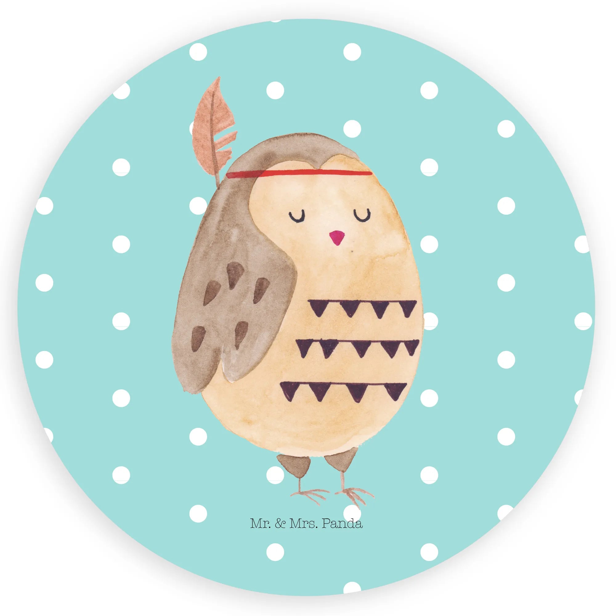 Rund Aufkleber Eule Federschmuck - 80mm Rund Aufkleber - mit Spruch - Weiß